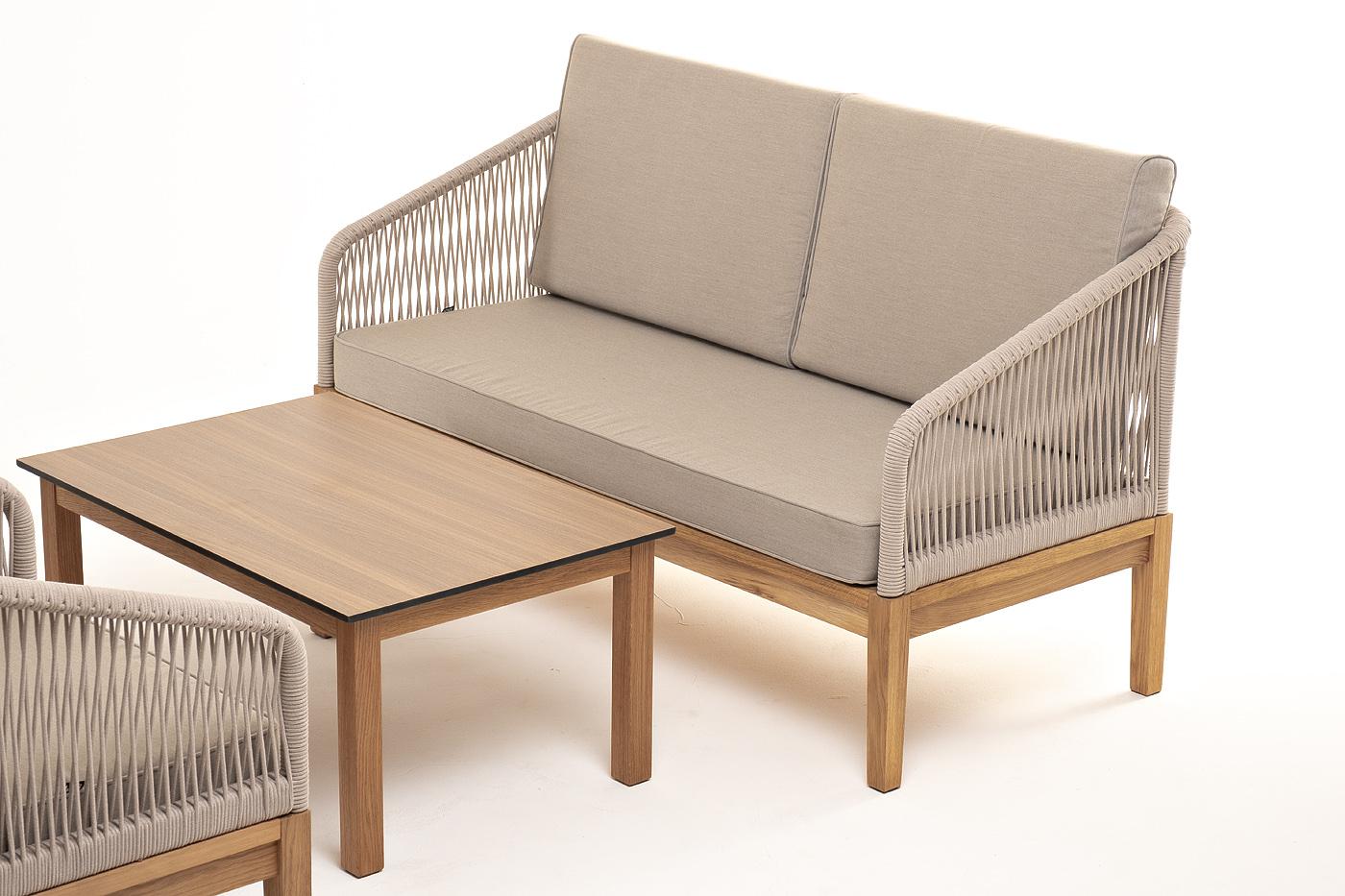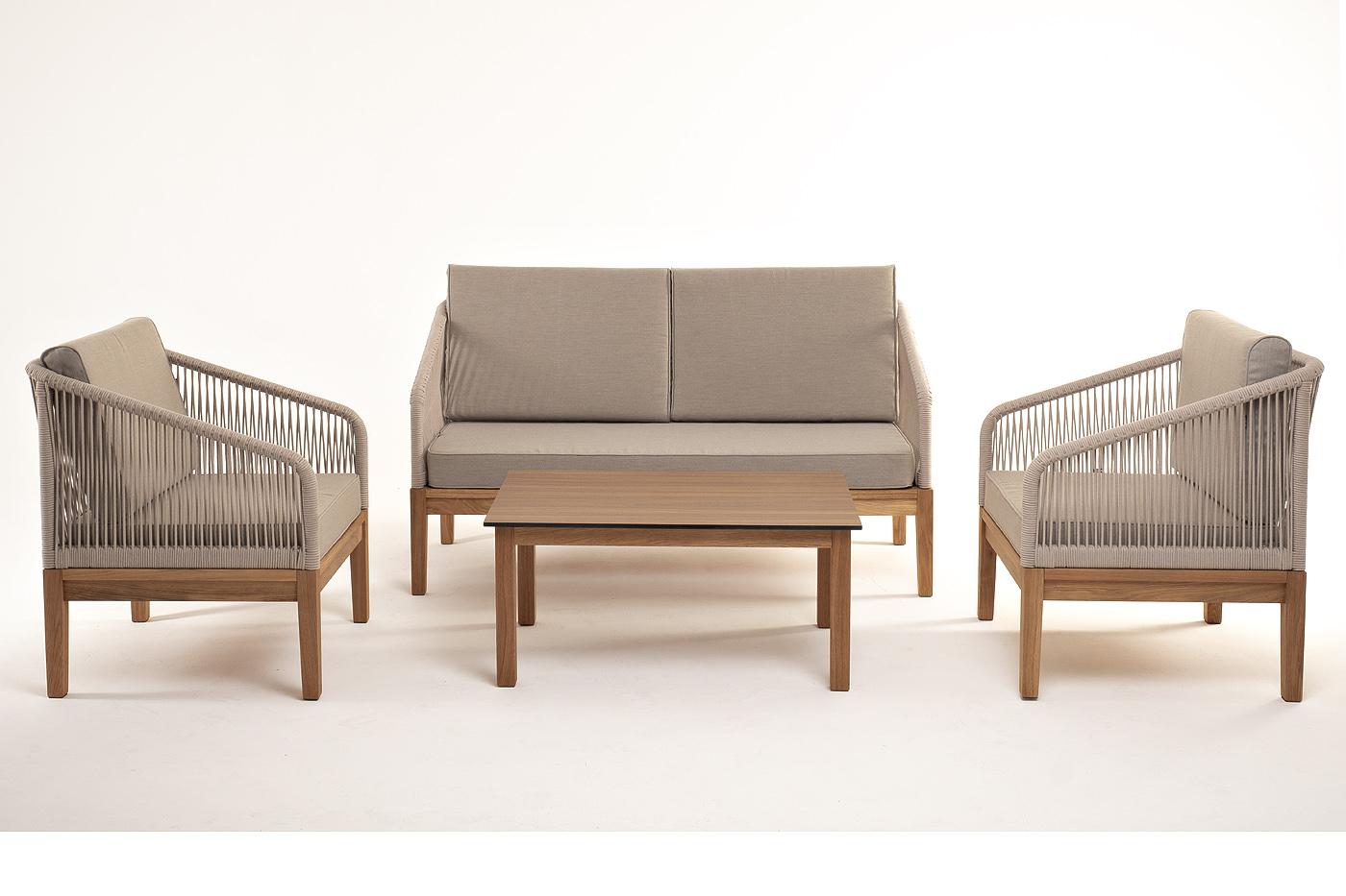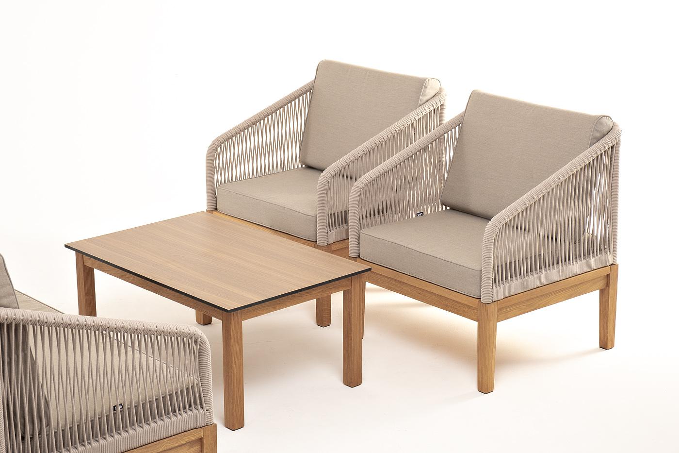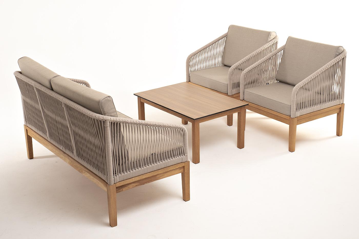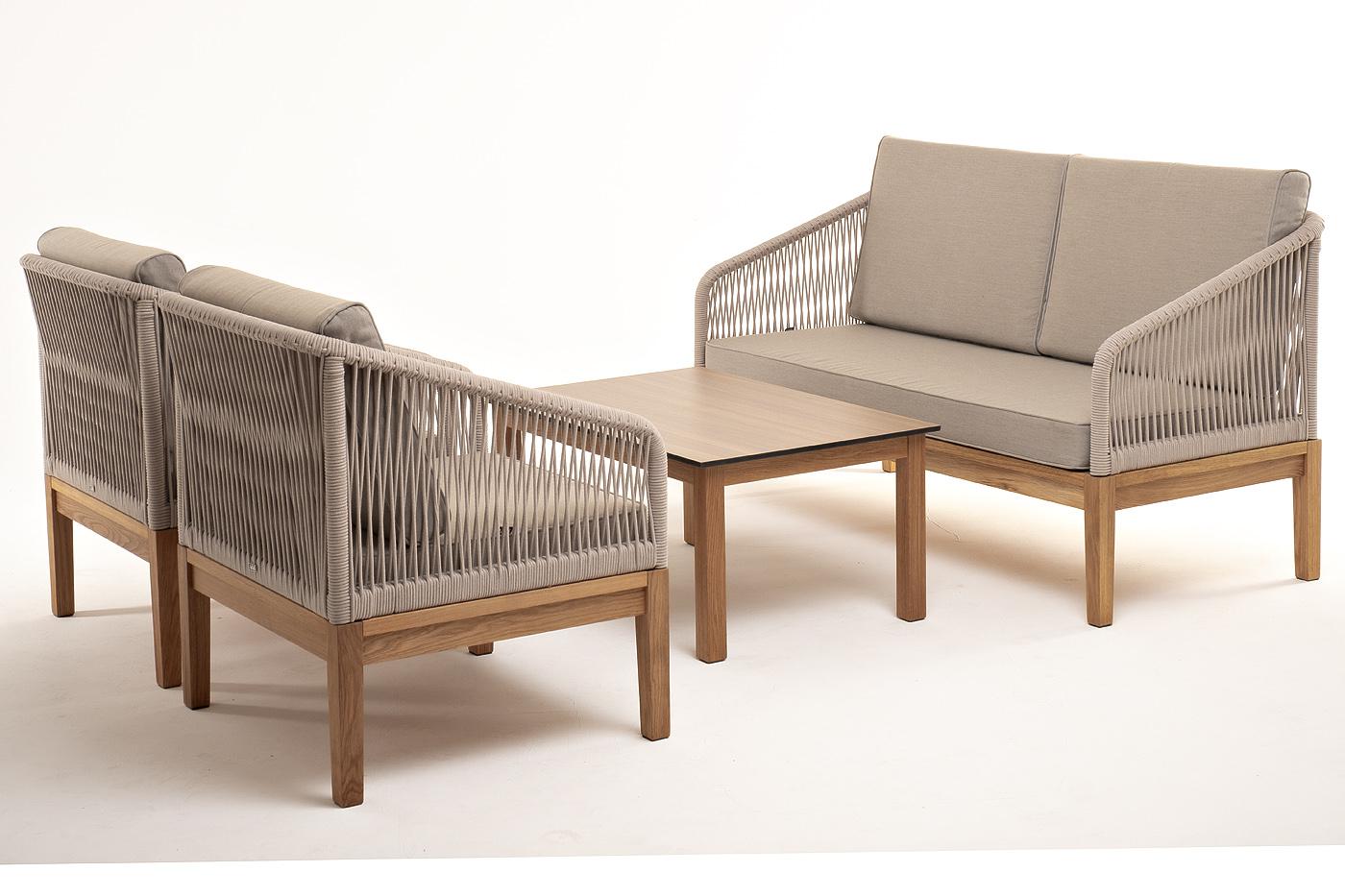 Лаунж зона 4SIS "Канны" лаунж-зона 4-местная из роупа со столиком "Канны" цвета "дуб", основание дуб, роуп бежевый арт. KANS2C2TJ-4-SET biege