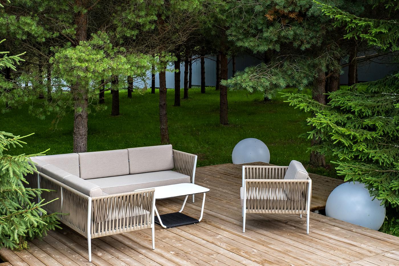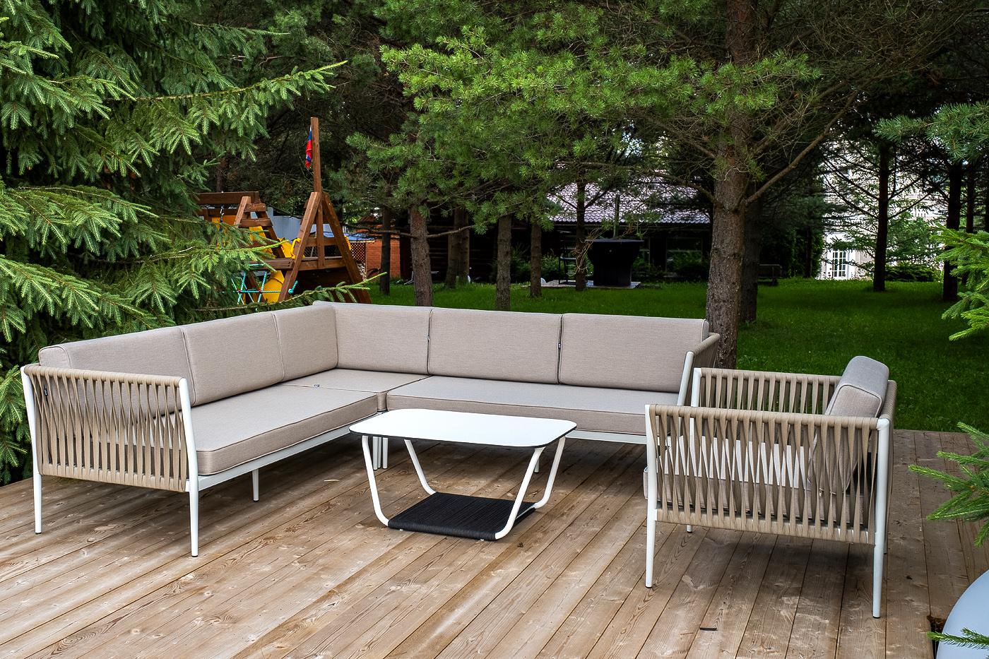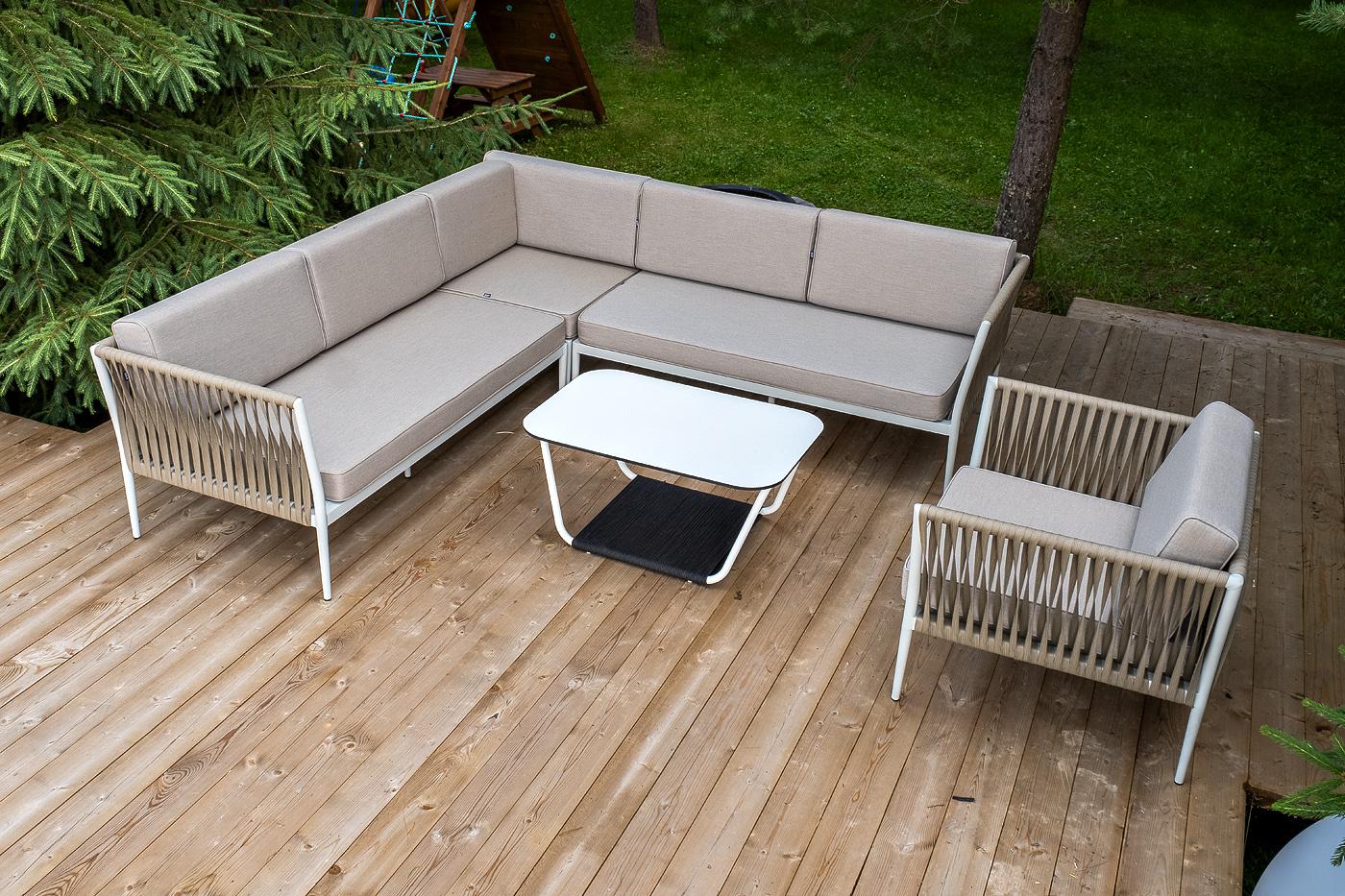 Лаунж зона 4SIS "Касабланка" модульная лаунж-зона из роупа (веревки), каркас из алюминия арт. KAS-S5C1T1-5-SET