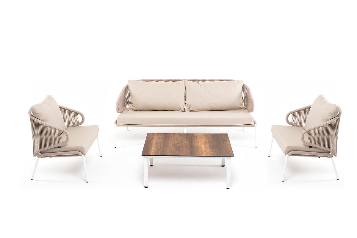 Лаунж зона 4SIS "Милан" лаунж-зона 5-местная плетеная из роупа (веревки), каркас алюминиевый белый, роуп бежевый арт. MILS3C2TJ-4-SET biege