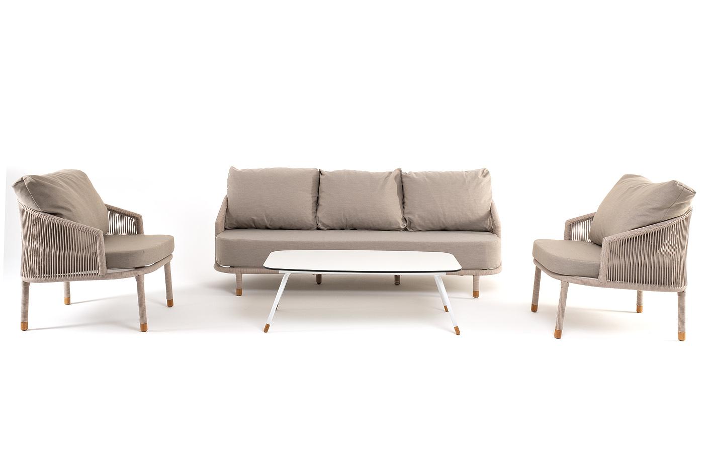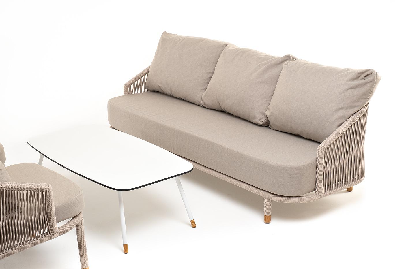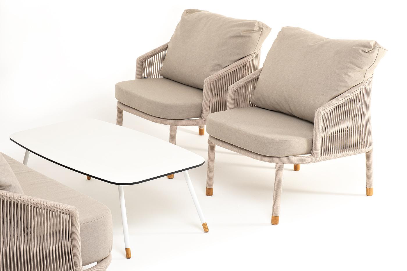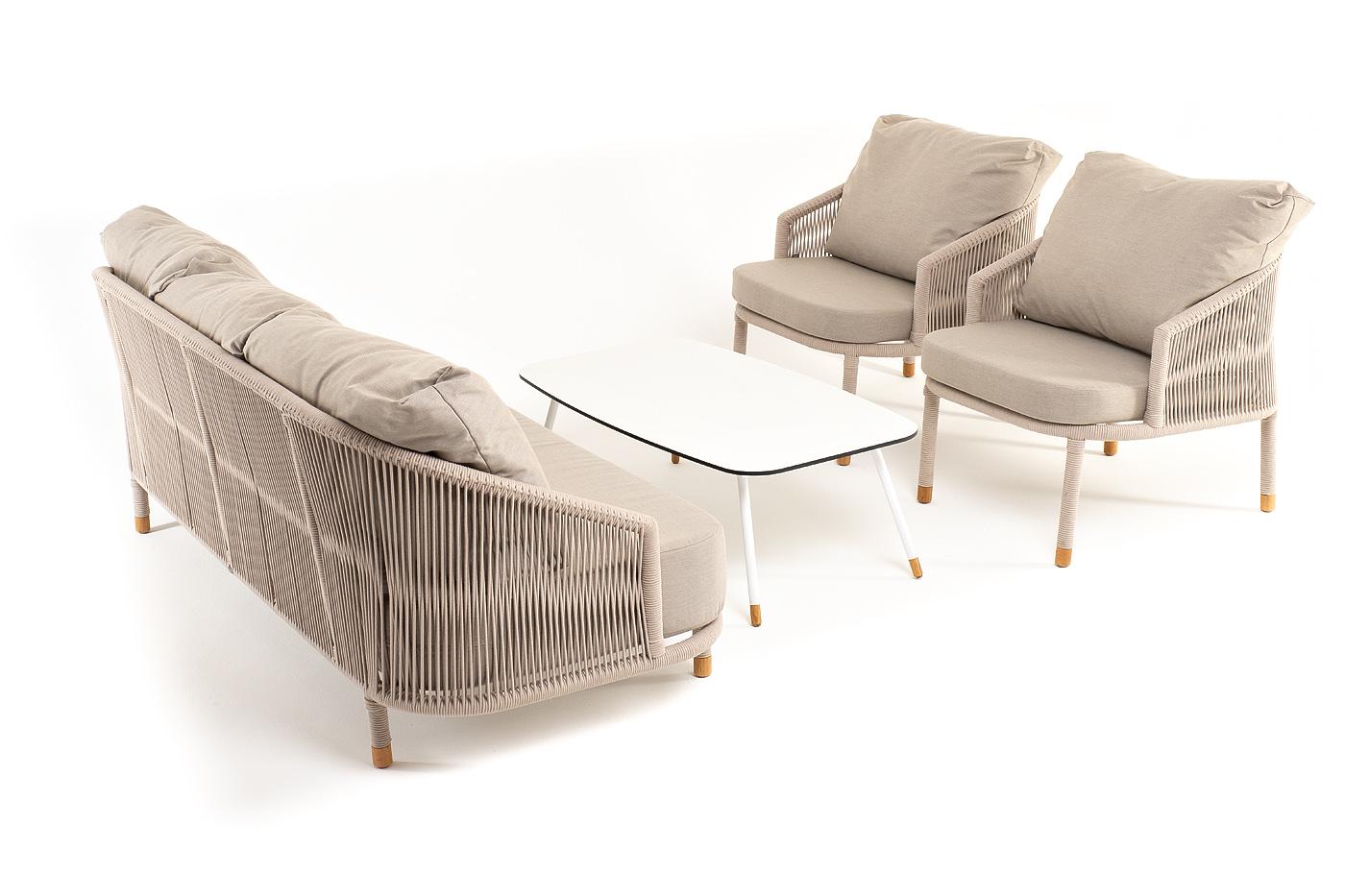 Лаунж зона 4SIS "Верона" лаунж-зона 5-местная плетеная из роупа (веревки), каркас алюминиевый белый, роуп бежевый арт. VERS3C2TJ-4-SET beige