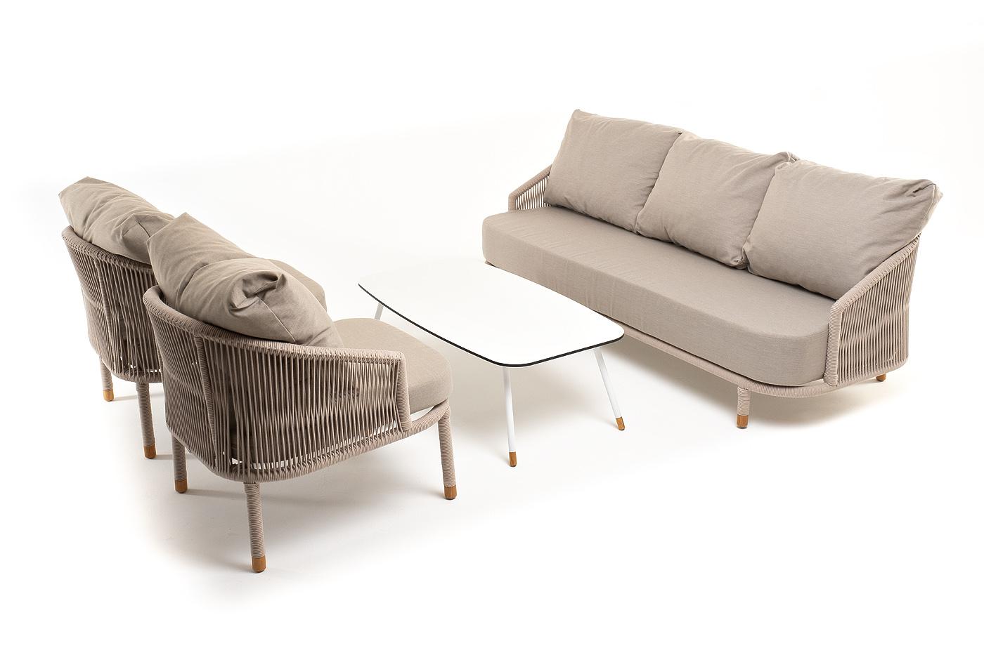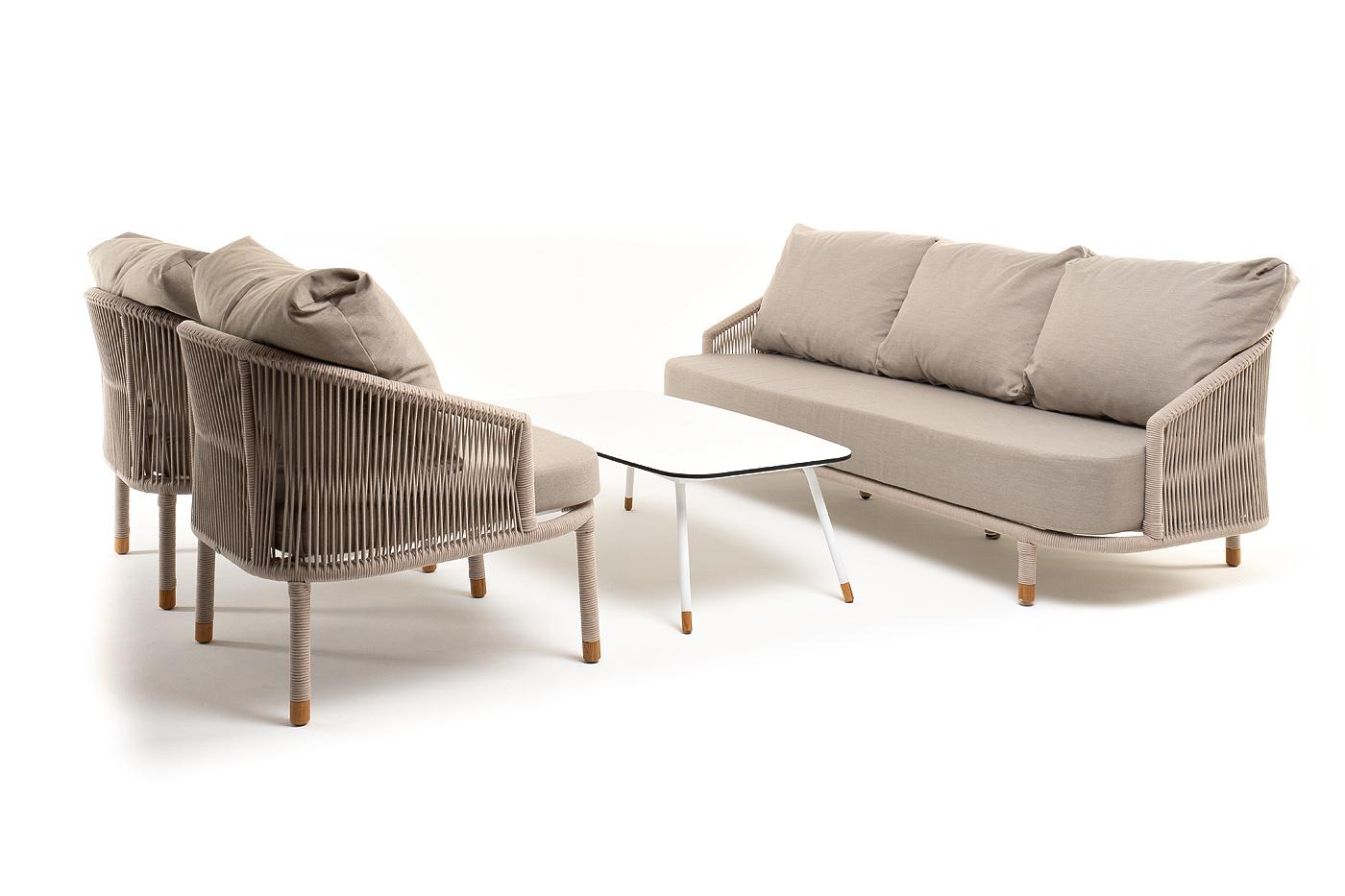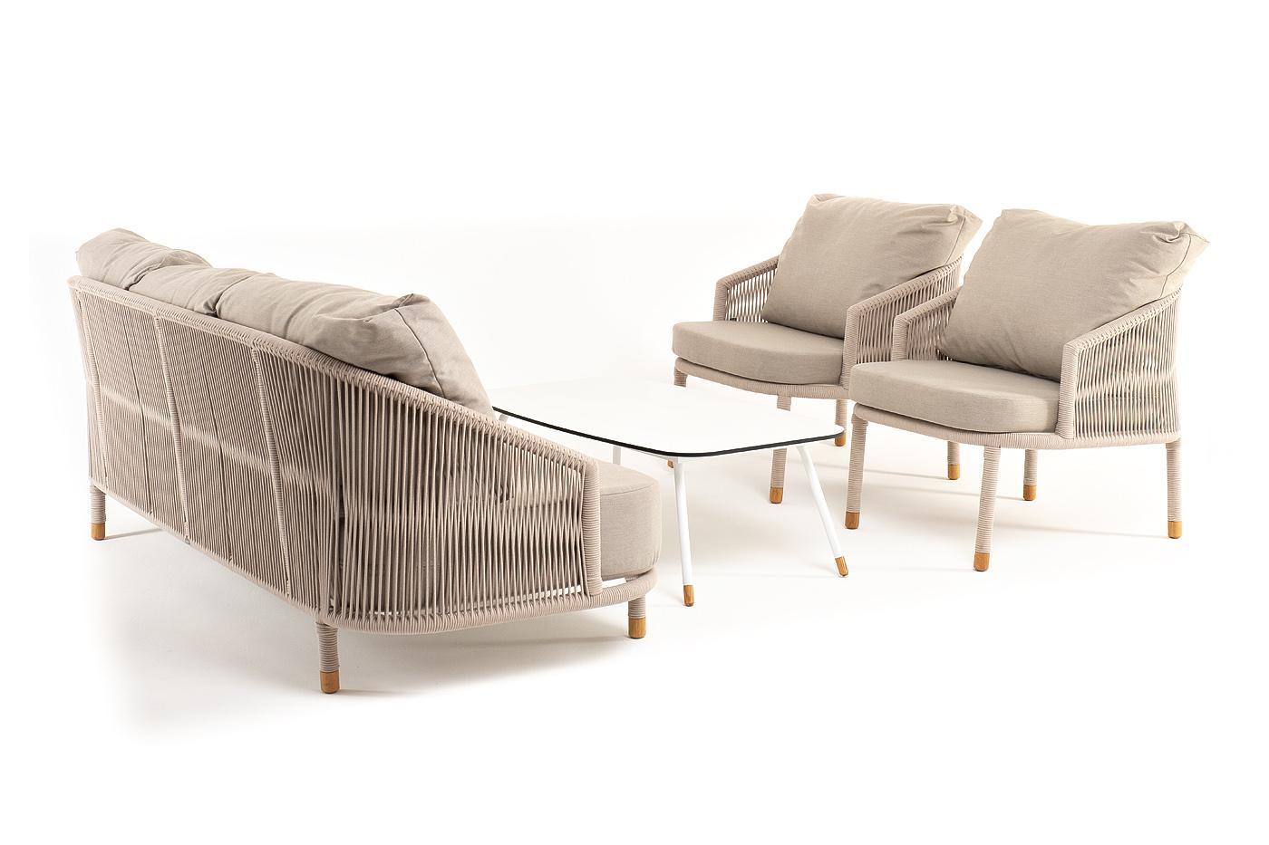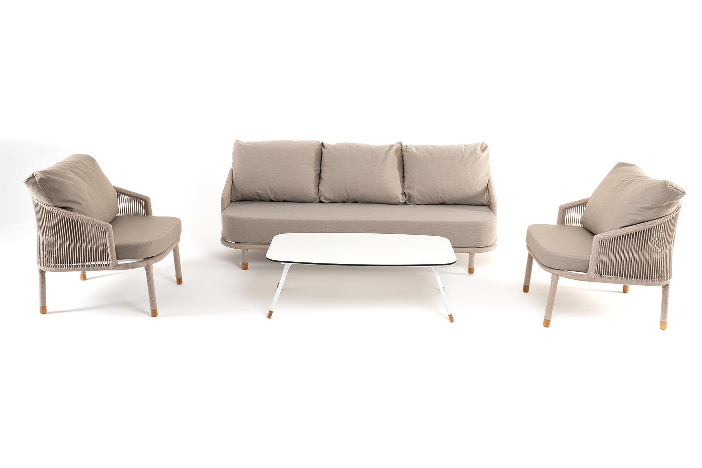 Лаунж зона 4SIS "Верона" лаунж-зона 5-местная плетеная из роупа (веревки), каркас алюминиевый белый, роуп бежевый арт. VERS3C2TJ-4-SET beige
