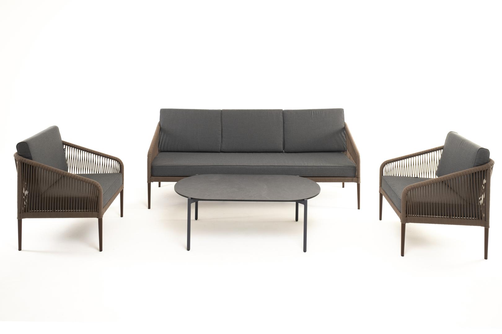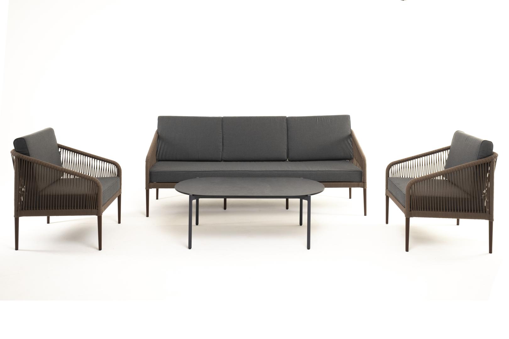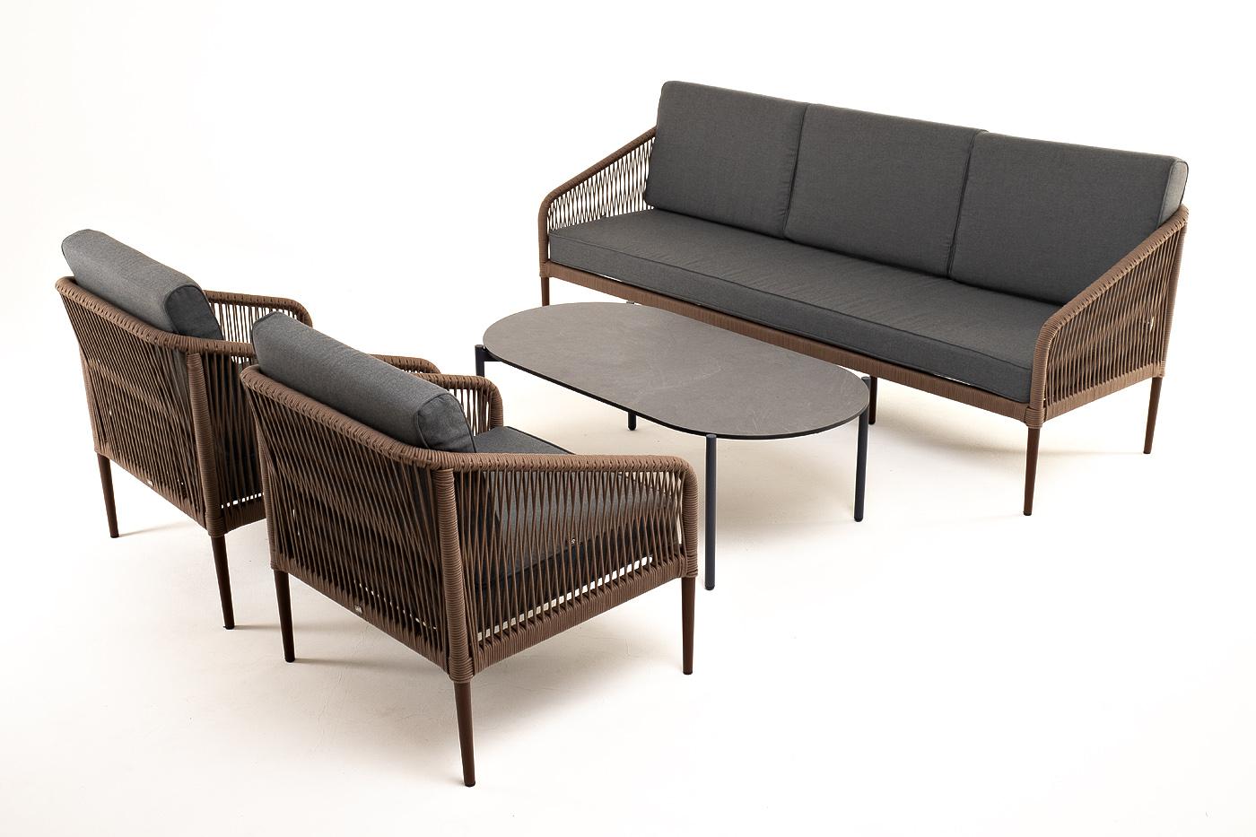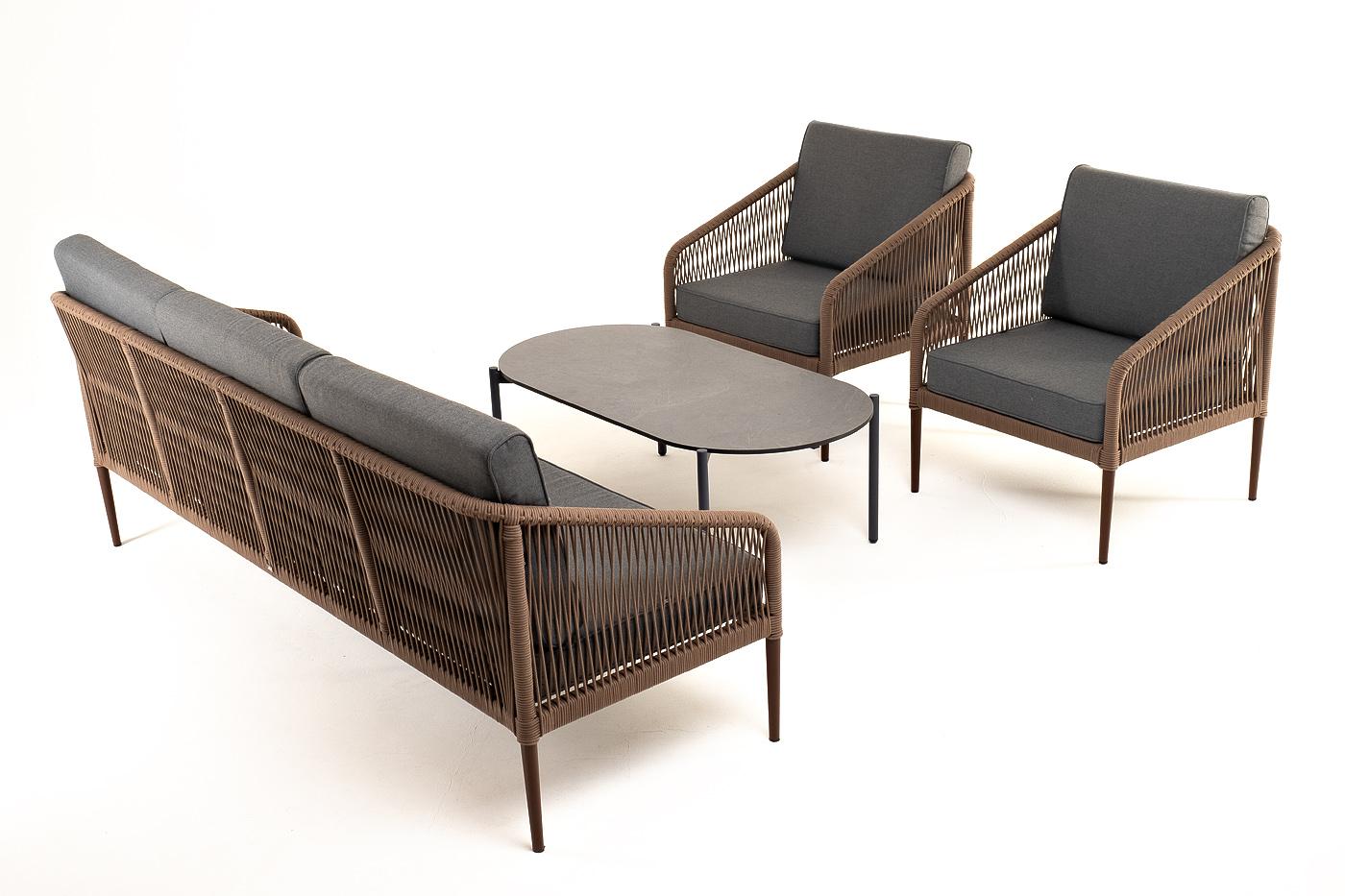 Лаунж зона 4SIS "Канны" лаунж-зона 5-местная плетеная из роупа (веревки), роуп коричневый арт. KANS3C2T-4-SET brown
