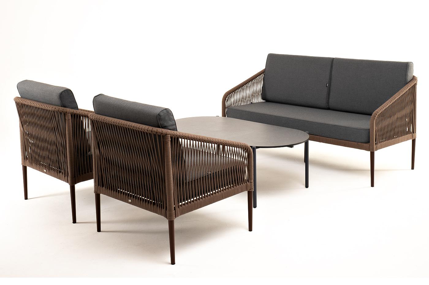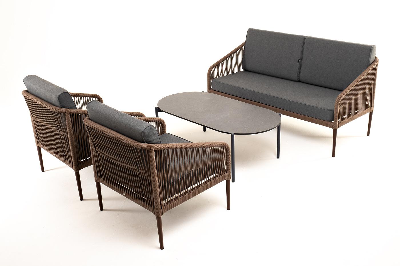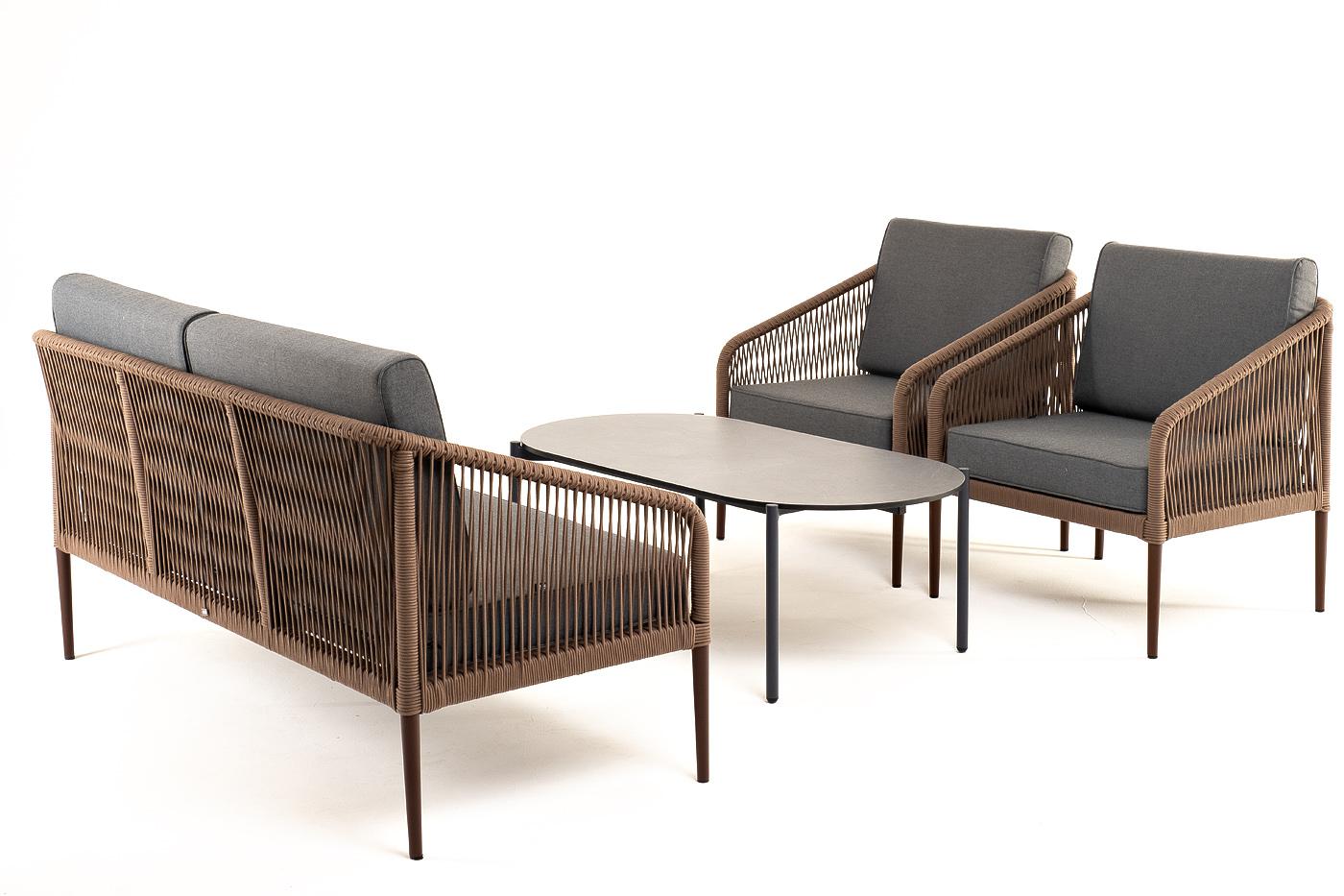 Лаунж зона 4SIS "Канны" лаунж-зона 4-местная из роупа со столом "Верона" (серый гранит), каркас алюминиевый коричневый, роуп коричневый арт. KANS2C2TJ-4-SET brown