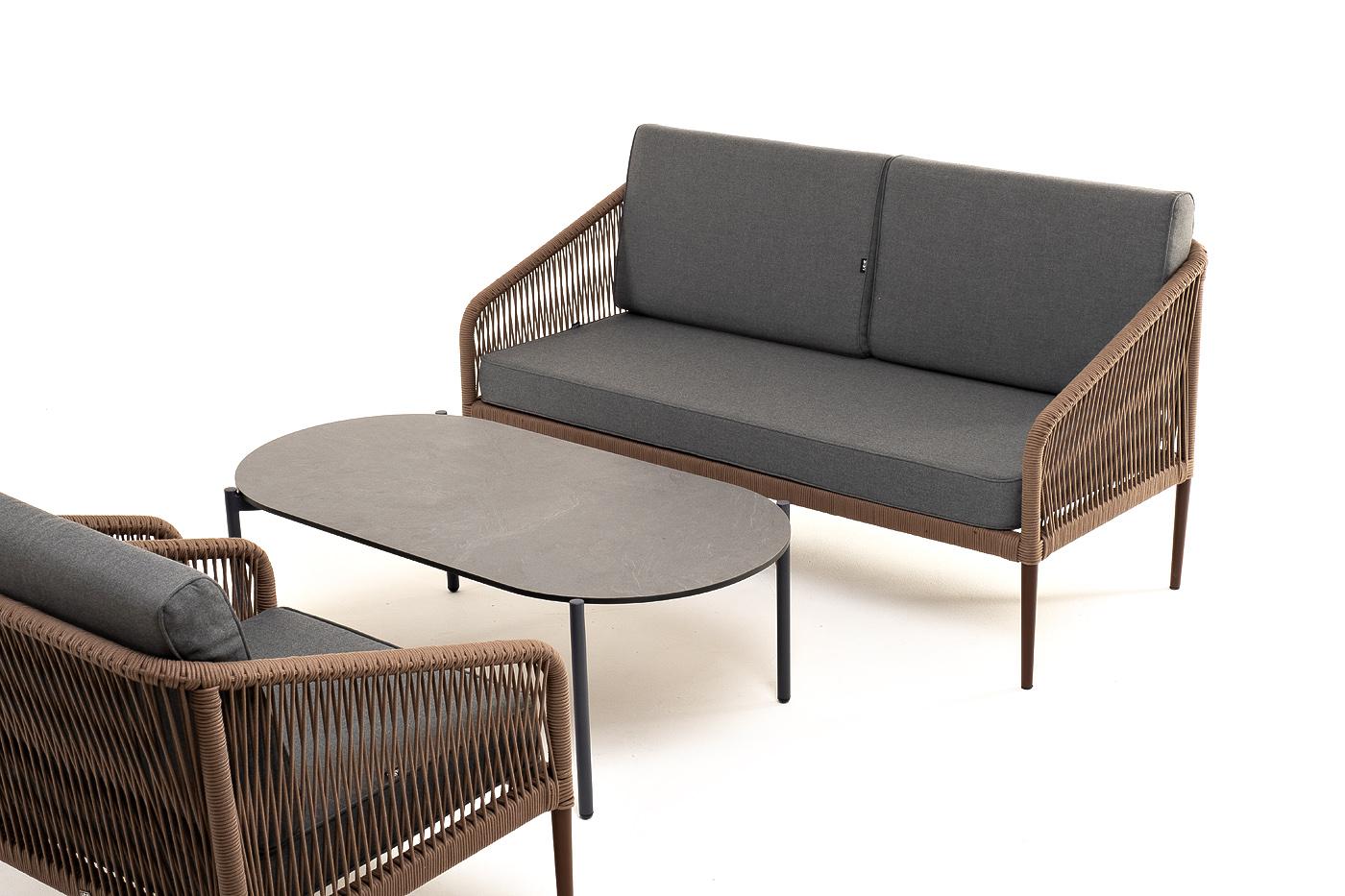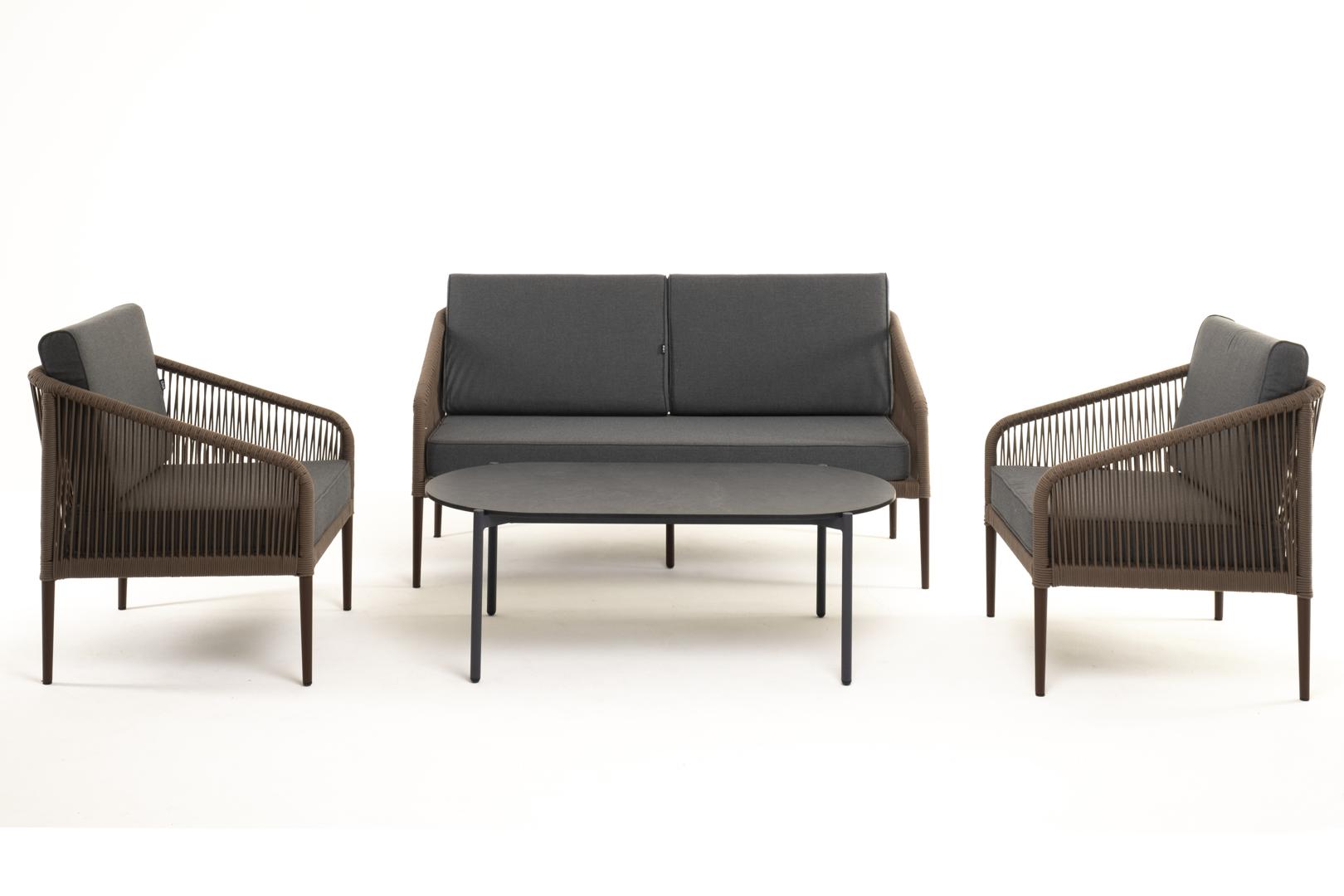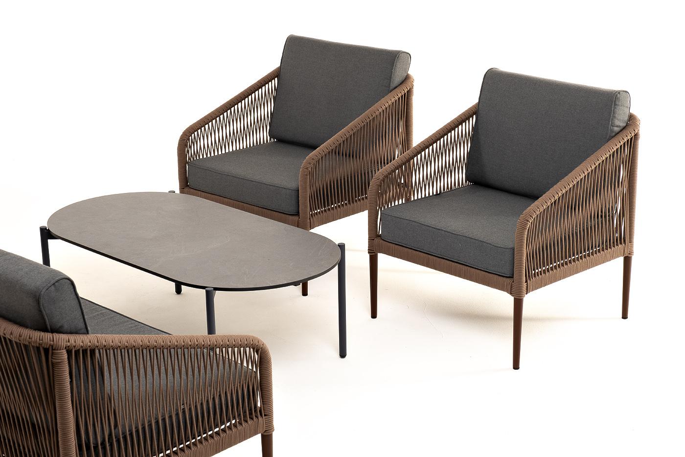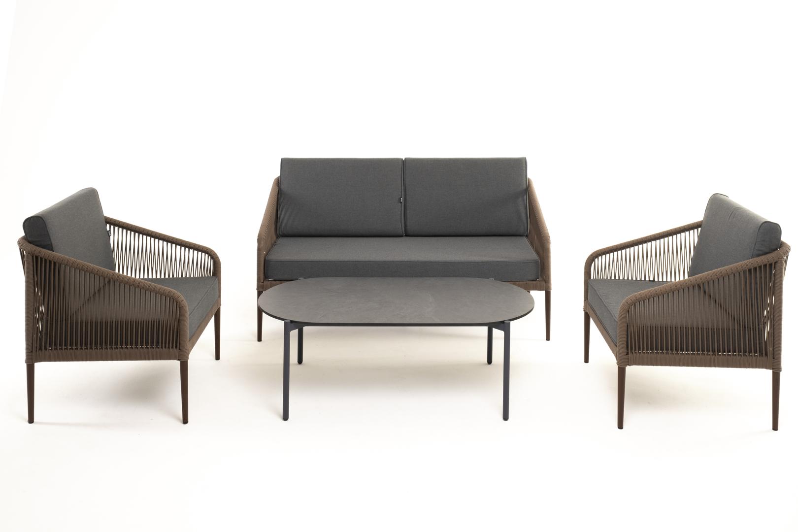 Лаунж зона 4SIS "Канны" лаунж-зона 4-местная из роупа со столом "Верона" (серый гранит), каркас алюминиевый коричневый, роуп коричневый арт. KANS2C2TJ-4-SET brown
