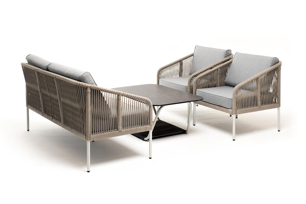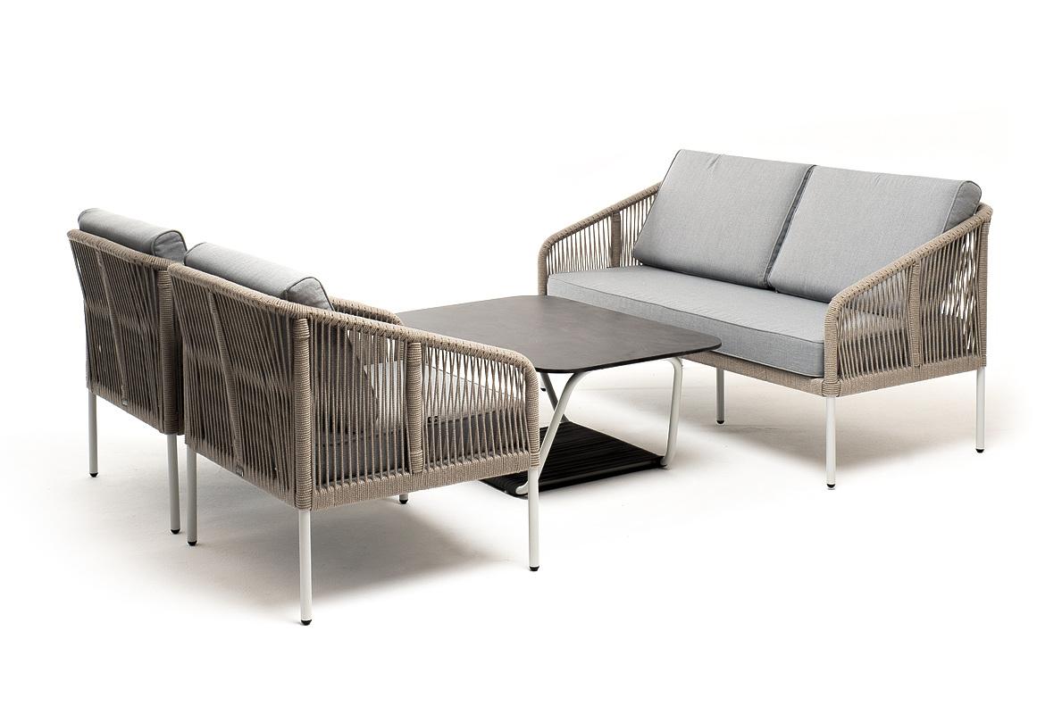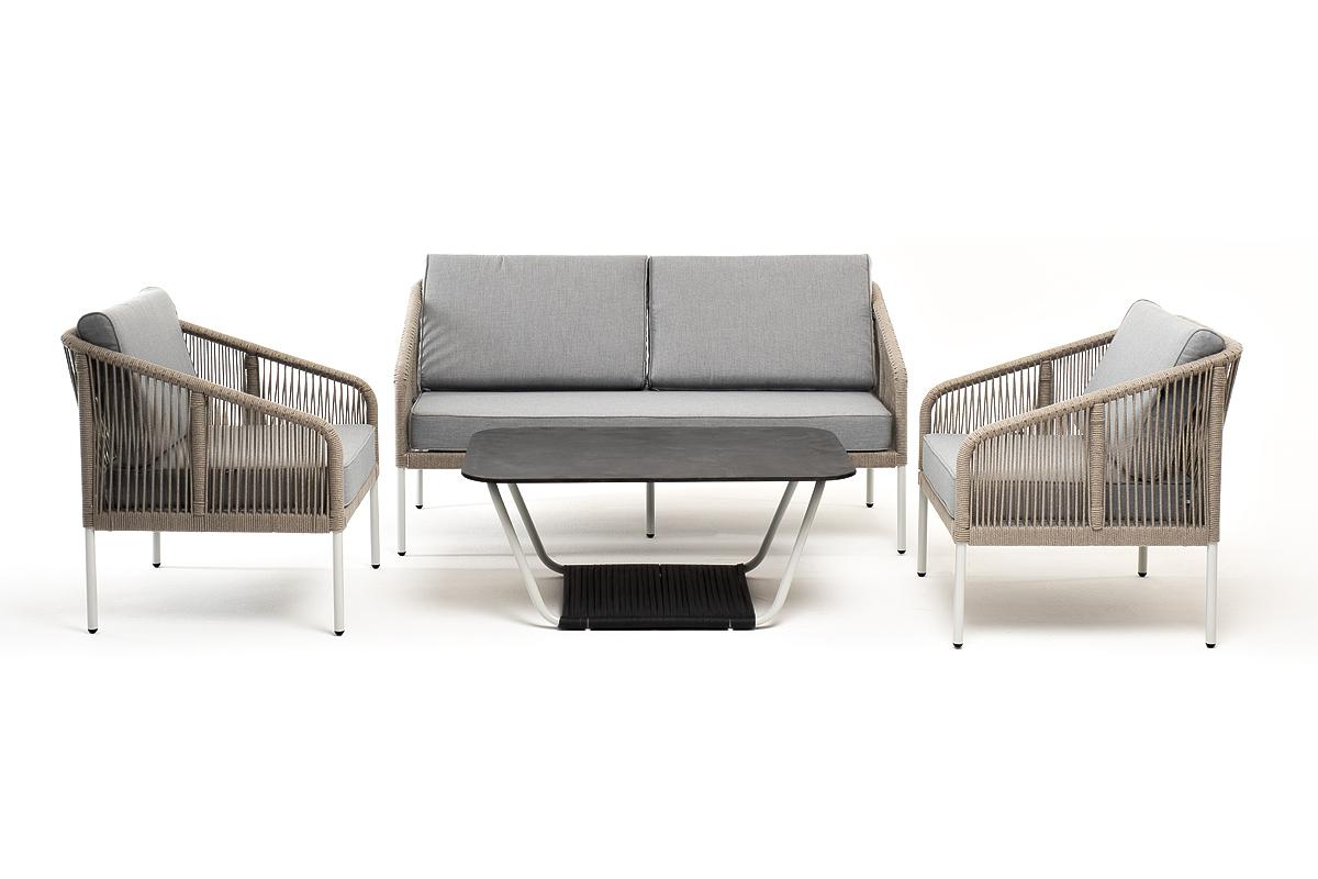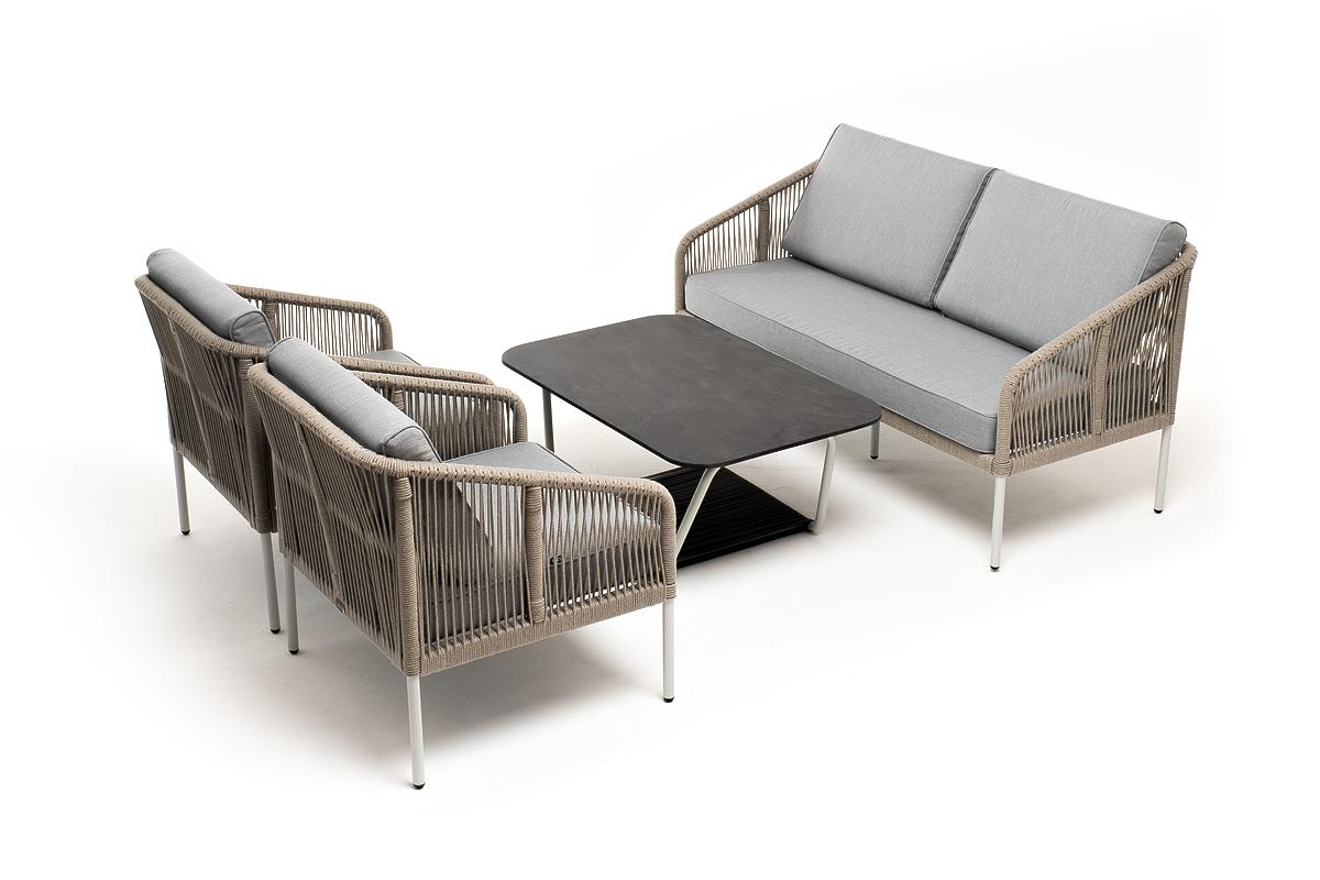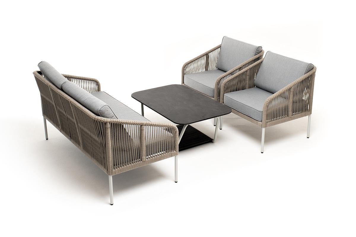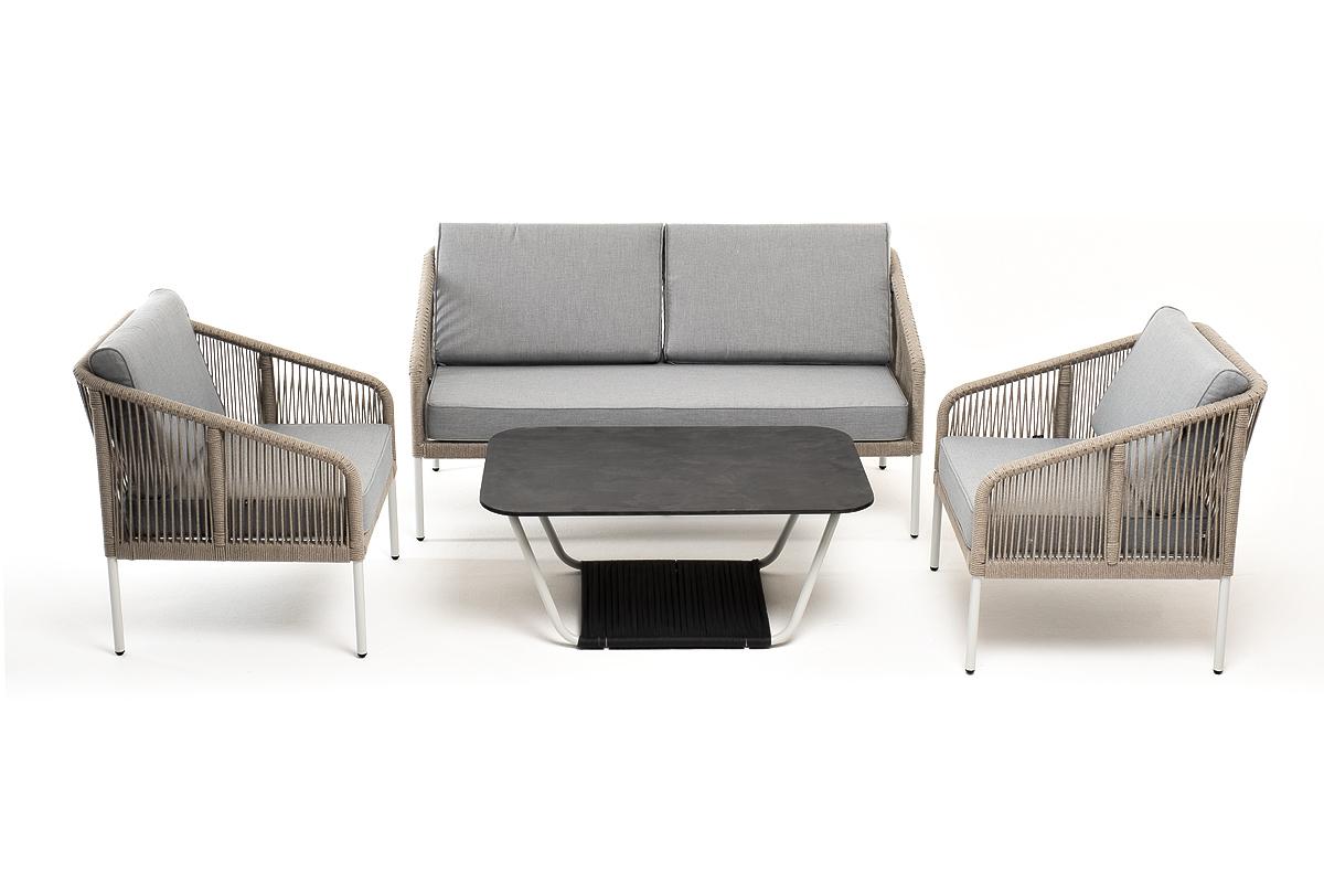 Лаунж зона 4SIS "Канны" лаунж-зона 4-местная из роупа со столом "Глория" (серый гранит), каркас алюминиевый светло-серый, роуп серый меланж арт. KANS2C2TJ-4-A232954-SET mel-grey