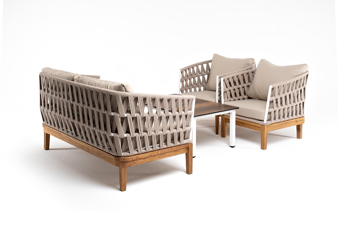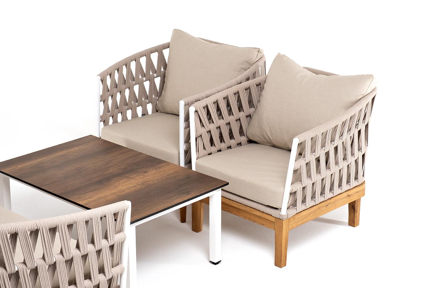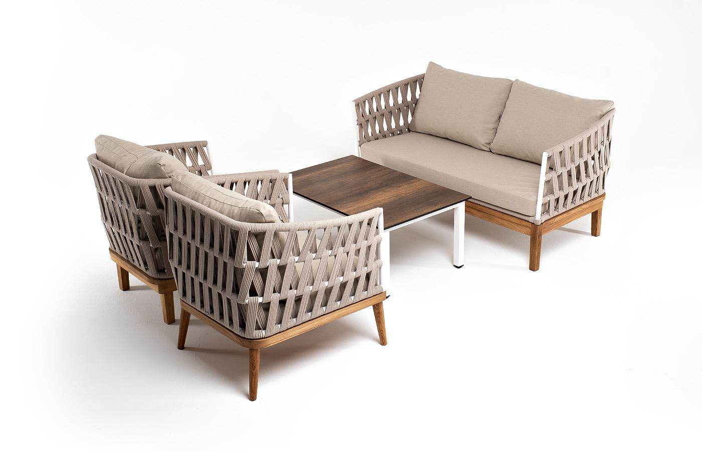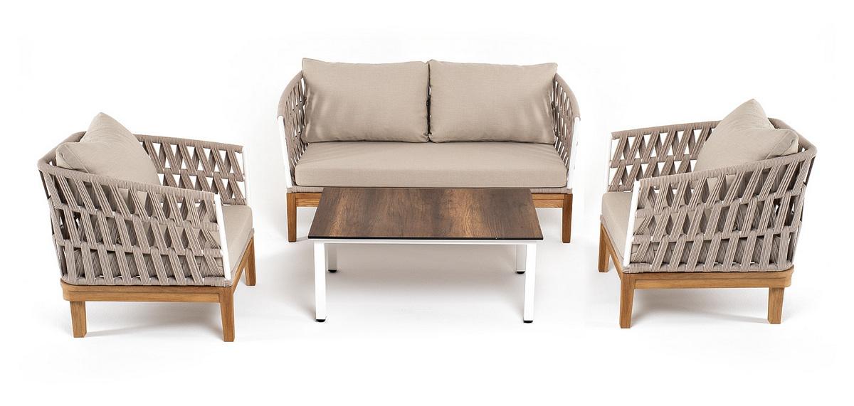 Лаунж зона 4SIS "Диего" лаунж-зона 4-местная плетеная из роупа со столиком "Канны" цвета "дуб", основание дуб, роуп бежевый арт. DIES2C2TJ-4-OAK-SET biege