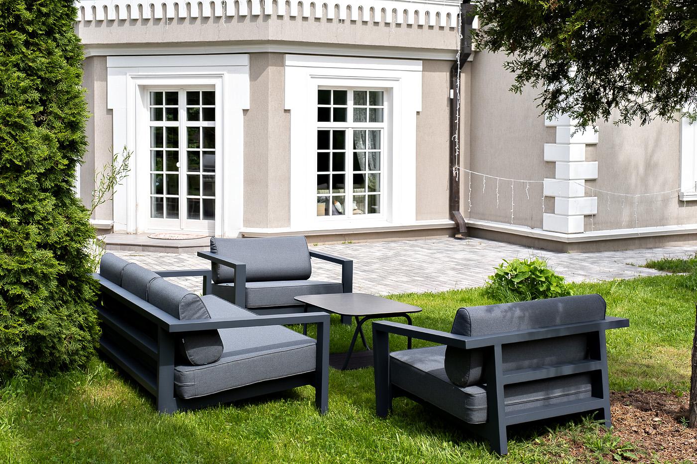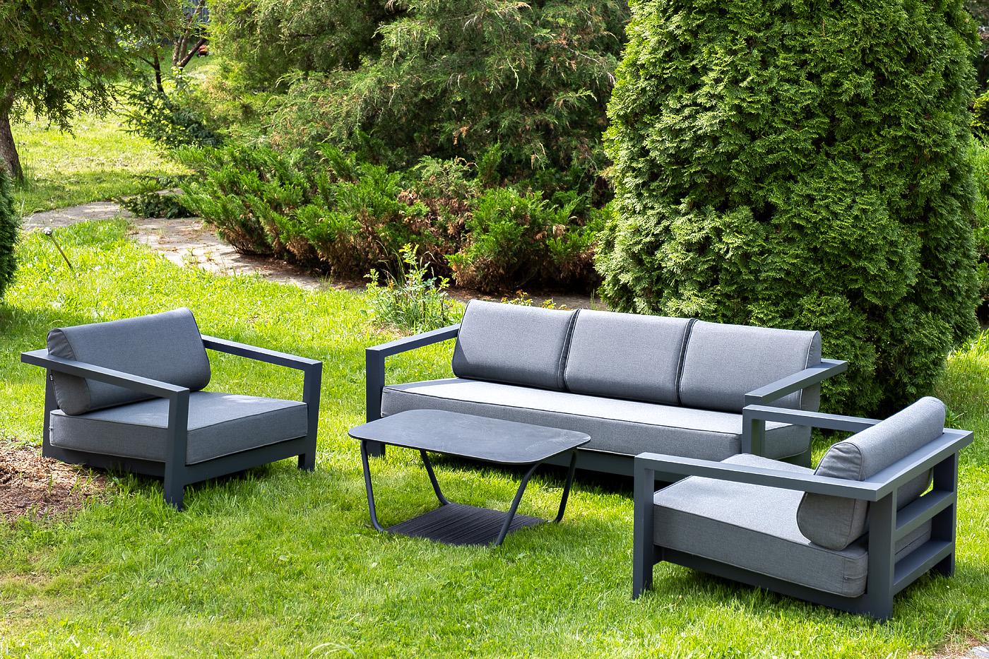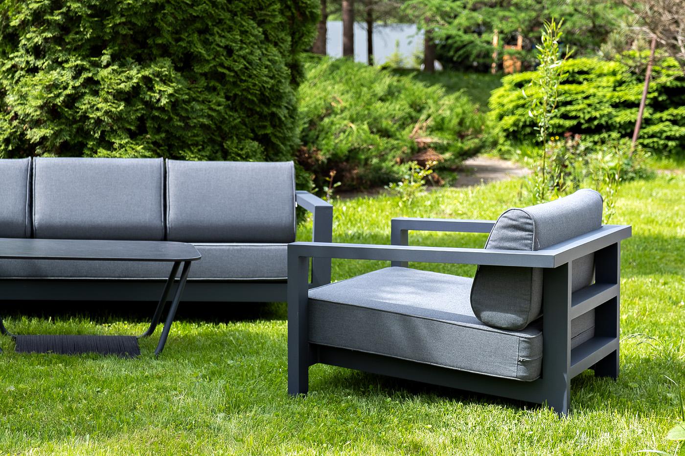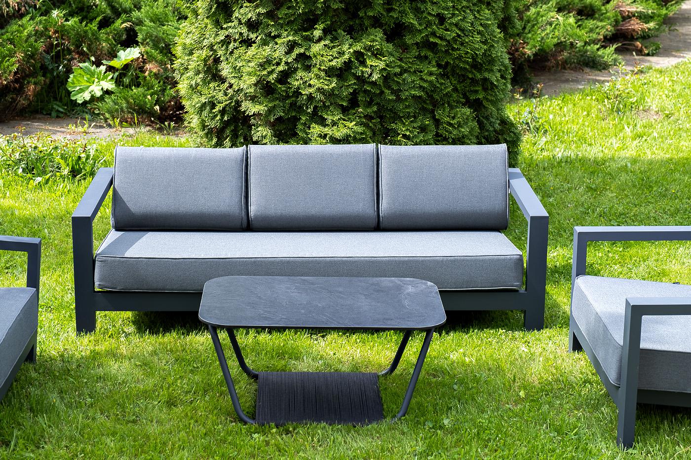 Лаунж-зона «Гранада» − функциональный комплект мебели, который может использоваться в качестве уютного уголка отдыха на открытом воздухе. Комплект состоит из: - трехместного дивана - 2000×900×550 мм. - двух кресел - 1000×900×550 мм. - журнального столика - 900×600×400 мм. Каркас мебели выполнен из алюминиевого профиля, окрашенного в темно-серый (RAL7024) цвет. Дополняют комплект подушки со съёмными чехлами. Журнальный столик со столешницей из высококачественного монолитного комакт "Гранада" диван 3-местный, каркас алюминий темно-серый (RAL7024) муар, ткань темно-серая 027 1шт. 2 000Х900Х550, "Гранада" кресло алюминиевое, цвет темно-серый (RAL7024) муар, ткань темно-серая 027 2шт. 1 000Х900Х550, "Гранада" журнальный стол 90х60см из HPL, цвет "серый гранит", каркас темно-серый (RAL7024) муар, роуп темно-серый круглый 1шт. 900Х600Х420,