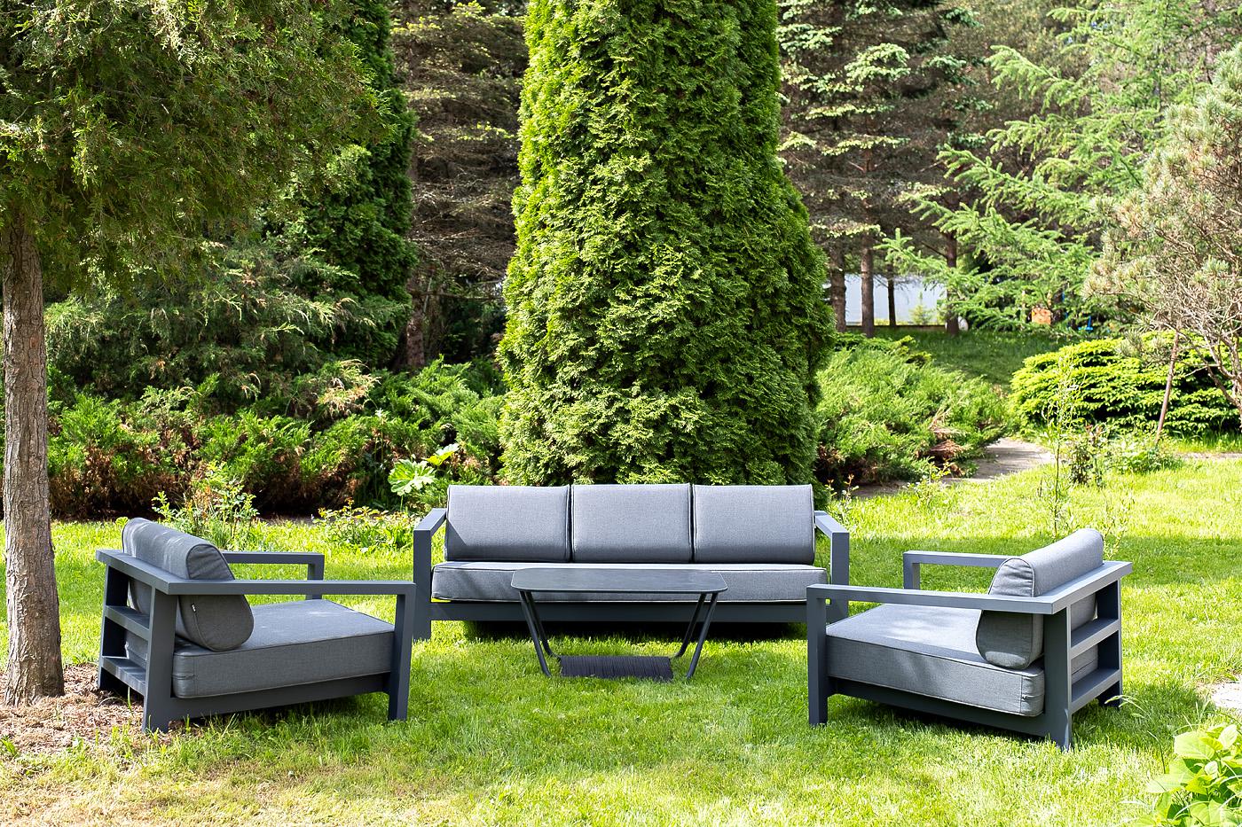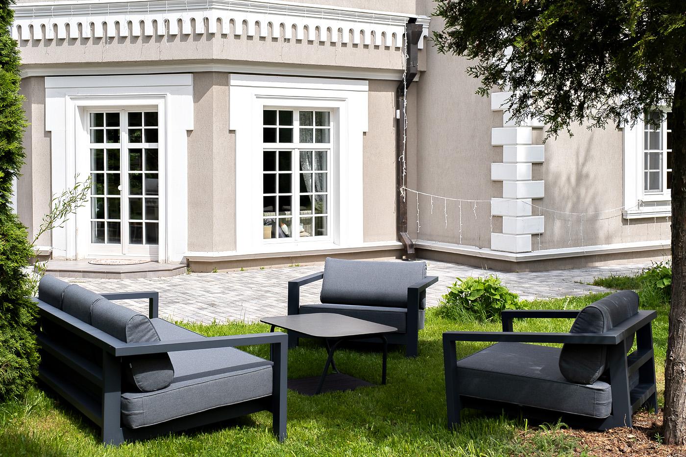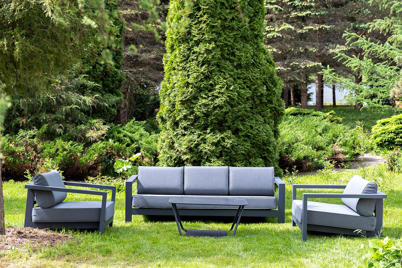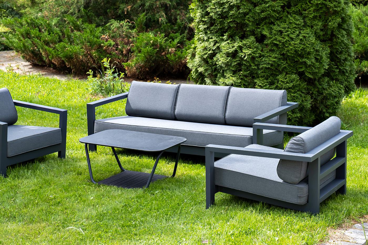 Лаунж-зона «Гранада» − функциональный комплект мебели, который может использоваться в качестве уютного уголка отдыха на открытом воздухе. Комплект состоит из: - трехместного дивана - 2000×900×550 мм. - двух кресел - 1000×900×550 мм. - журнального столика - 900×600×400 мм. Каркас мебели выполнен из алюминиевого профиля, окрашенного в темно-серый (RAL7024) цвет. Дополняют комплект подушки со съёмными чехлами. Журнальный столик со столешницей из высококачественного монолитного комакт "Гранада" диван 3-местный, каркас алюминий темно-серый (RAL7024) муар, ткань темно-серая 027 1шт. 2 000Х900Х550, "Гранада" кресло алюминиевое, цвет темно-серый (RAL7024) муар, ткань темно-серая 027 2шт. 1 000Х900Х550, "Гранада" журнальный стол 90х60см из HPL, цвет "серый гранит", каркас темно-серый (RAL7024) муар, роуп темно-серый круглый 1шт. 900Х600Х420,