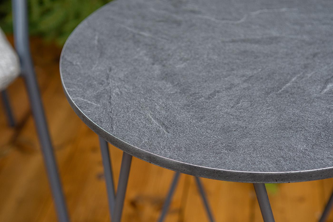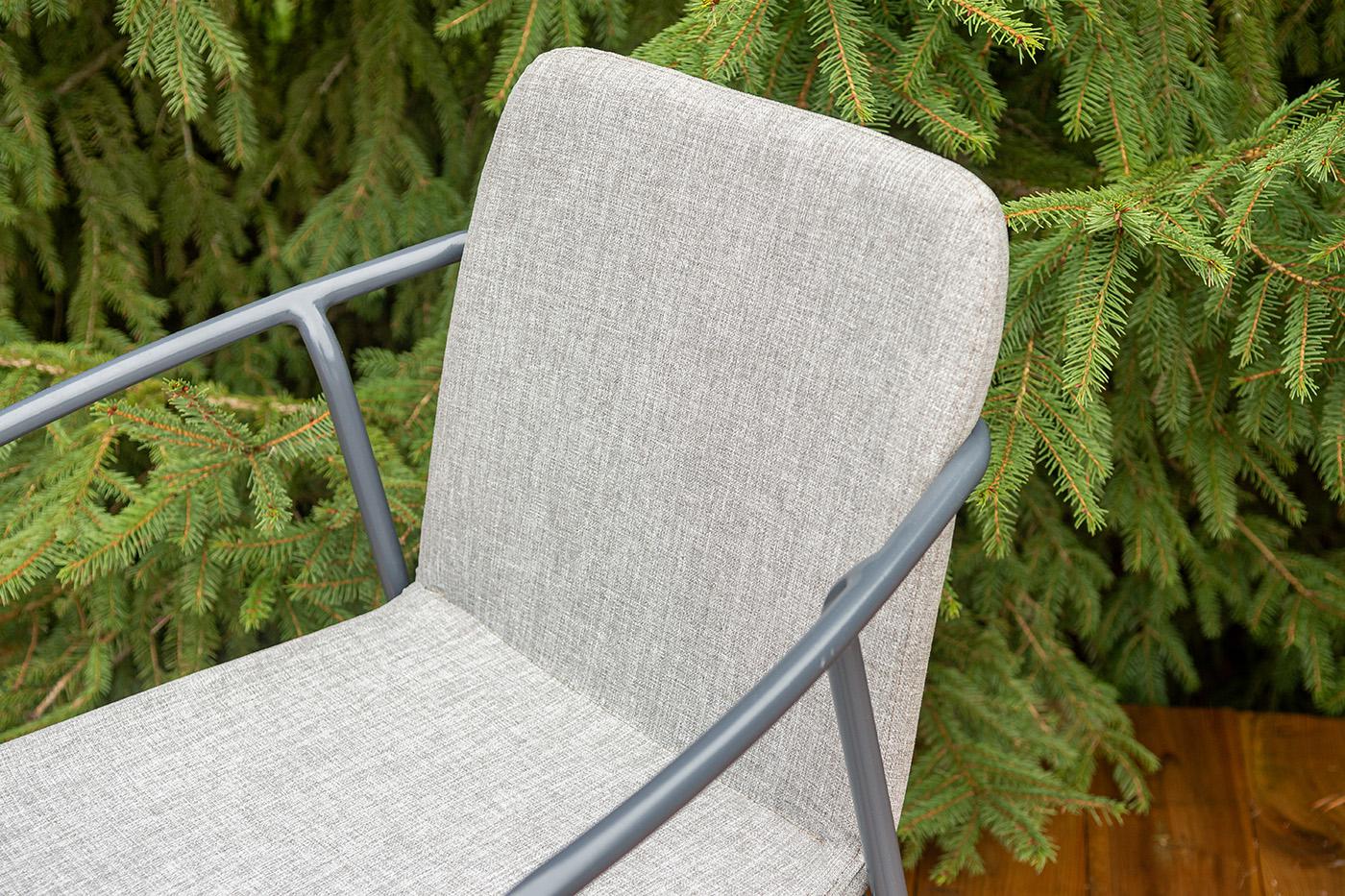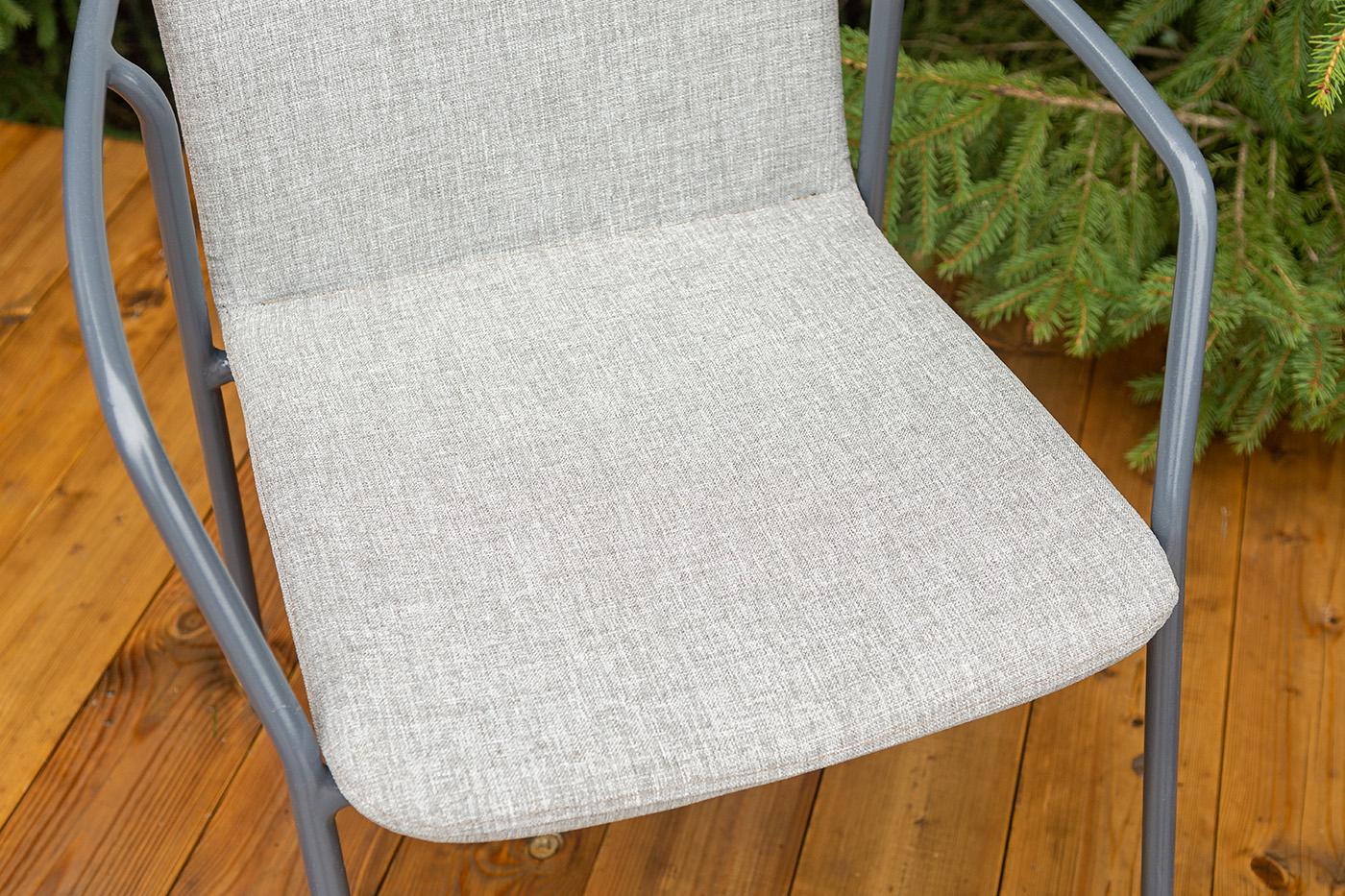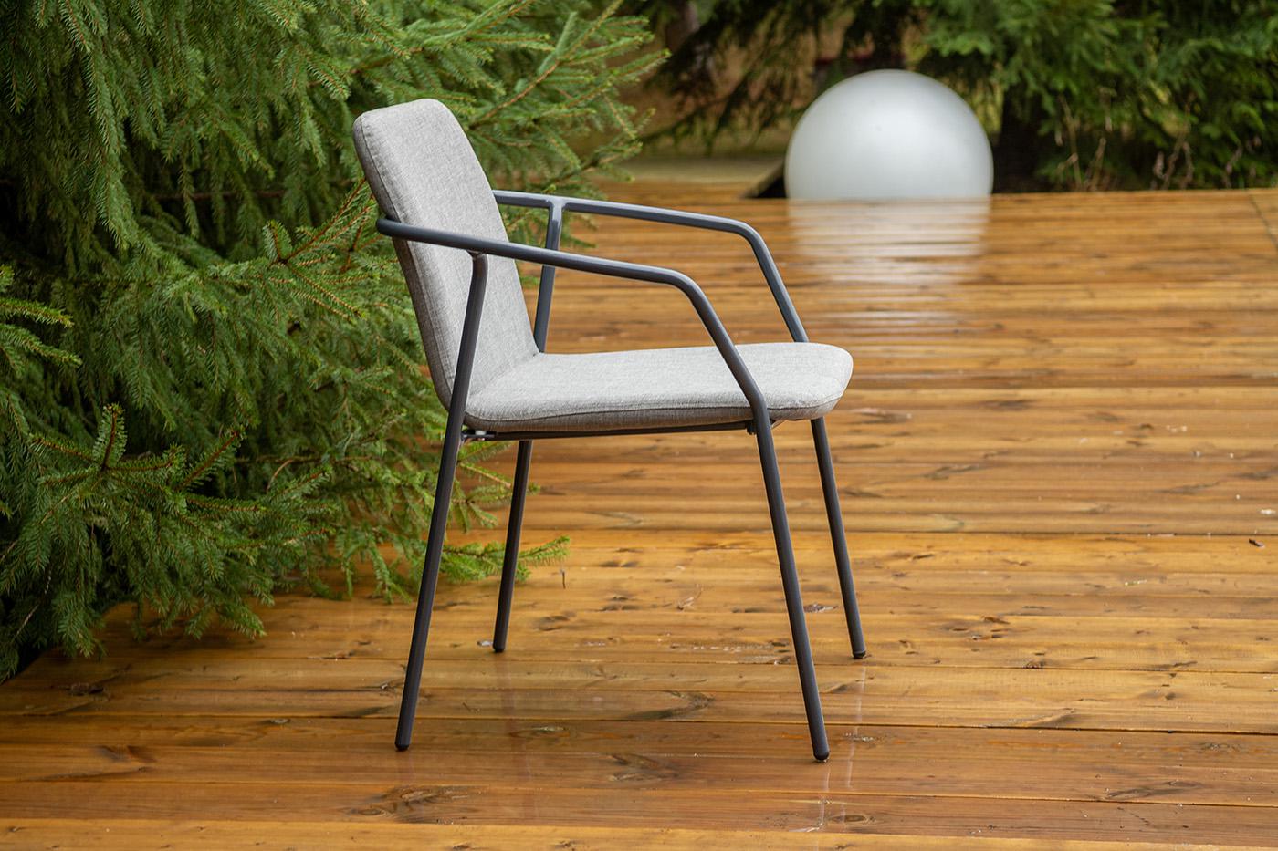 Кофейный комплект «Марокко» на две персоны — компактное и стильное решение для балкона, небольшой гостиной, террасы или другого пространства с ограниченной площадью. В комплект входят два стула «Марокко» (575×600×800 мм) из текстилена Nanotex с алюминиевым каркасом в темно‑сером цвете (RAL7024) и круглый журнальный столик «Колумбия» (400×400×550 мм) с алюминиевым каркасом и столешницей из монолитного компакт‑пластика HPL (12 мм) в оттенке «серый гранит». Мебель отличается прочностью, легкост "Марокко" стул из текстилена nanotex, каркас алюминий темно-серый (RAL7024), цвет серый 2шт. 575Х600Х800, "Колумбия" журнальный стол из HPL круглый Ø40 H55, каркас из алюминия темно-серый (RAL 7024), цвет столешницы "серый гранит" 1шт. 400Х400Х550,