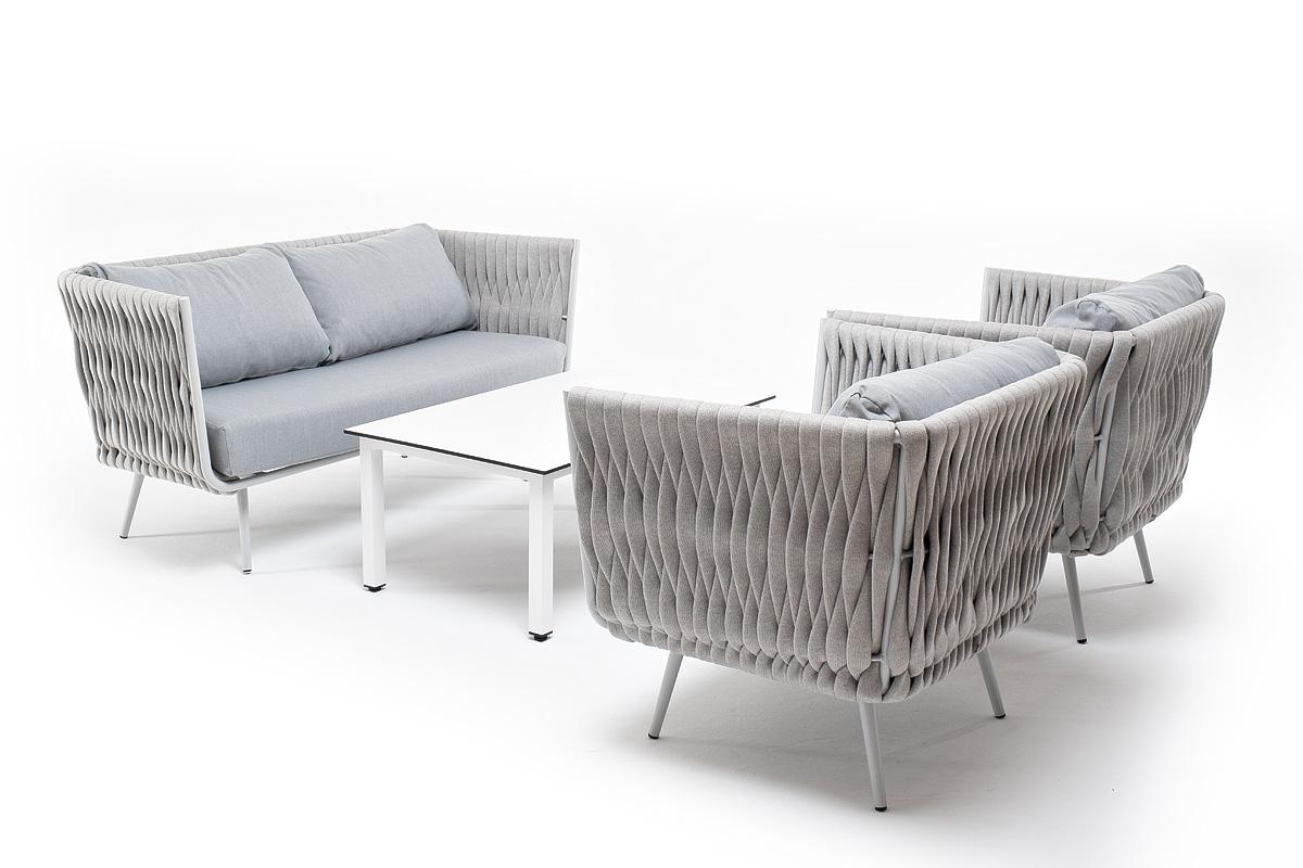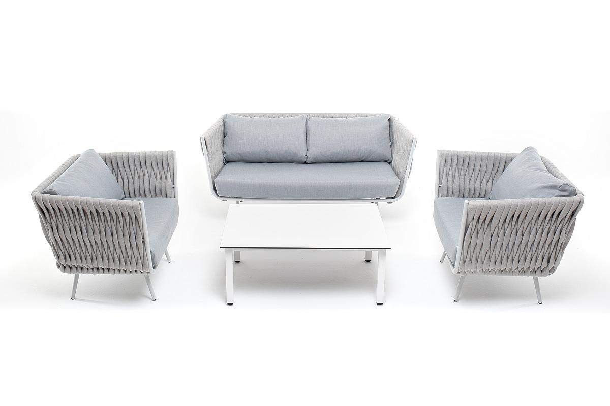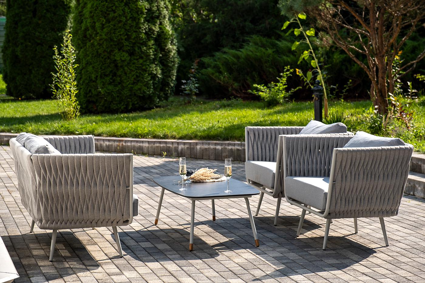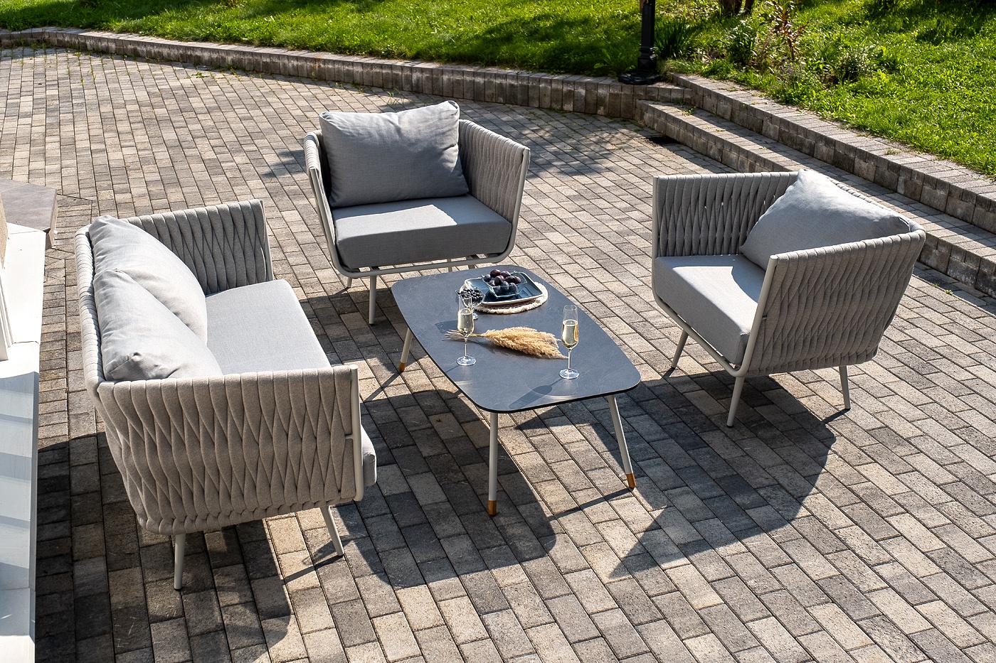 Лаунж зона 4SIS "Монако" лаунж-зона 4-местная из роупа со столом "Верона" (серый гранит), каркас светло-серый, роуп светло-серый арт. MONS2C2TJ-4-SET H-gray