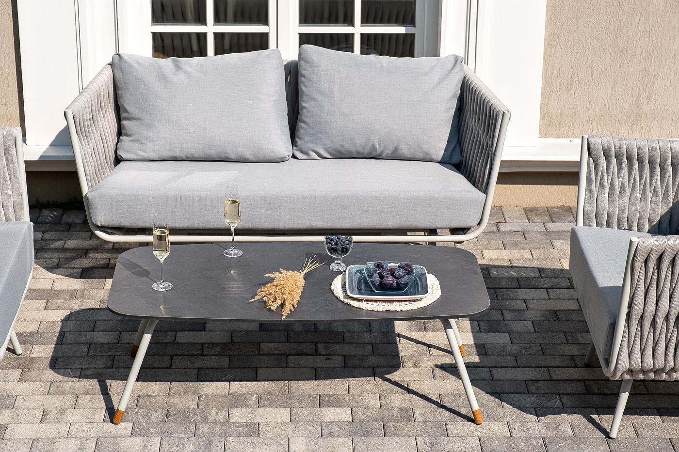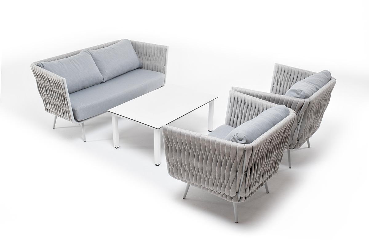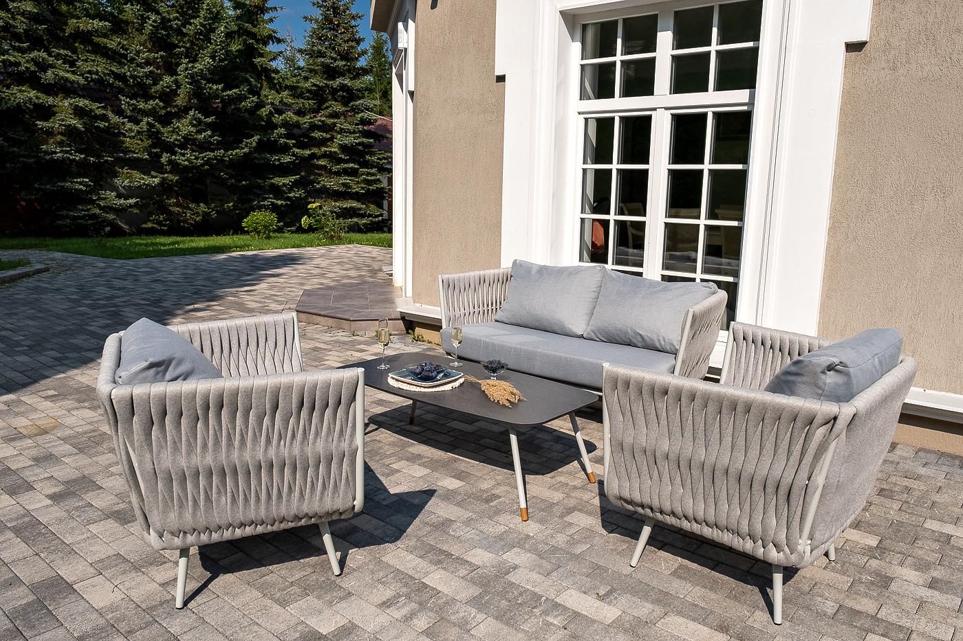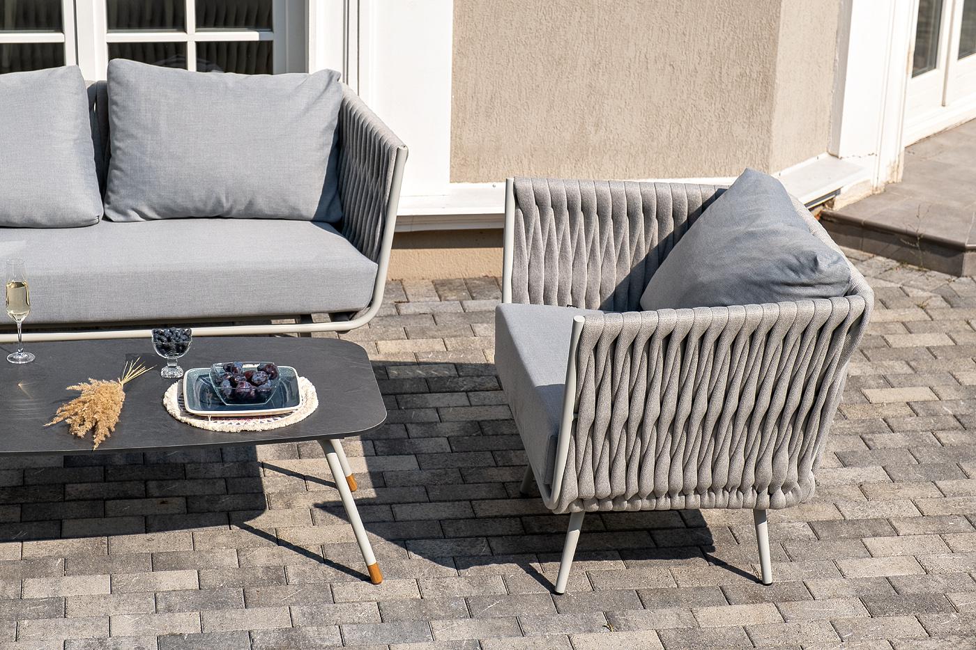 Лаунж зона 4SIS "Монако" лаунж-зона 4-местная из роупа со столом "Верона" (серый гранит), каркас светло-серый, роуп светло-серый арт. MONS2C2TJ-4-SET H-gray