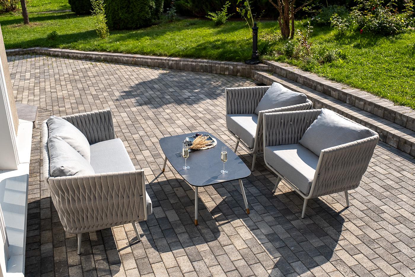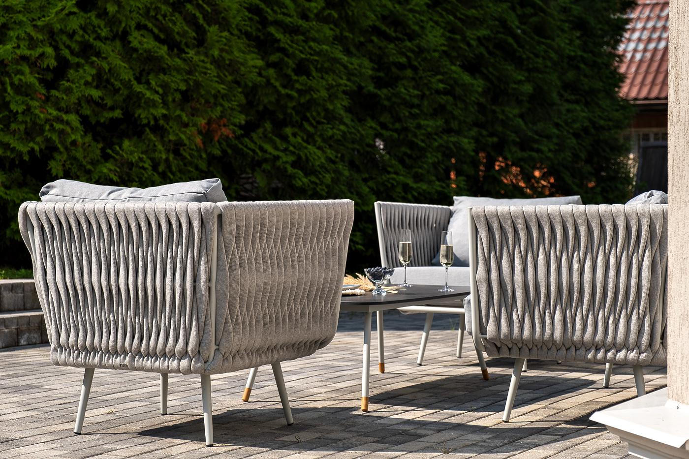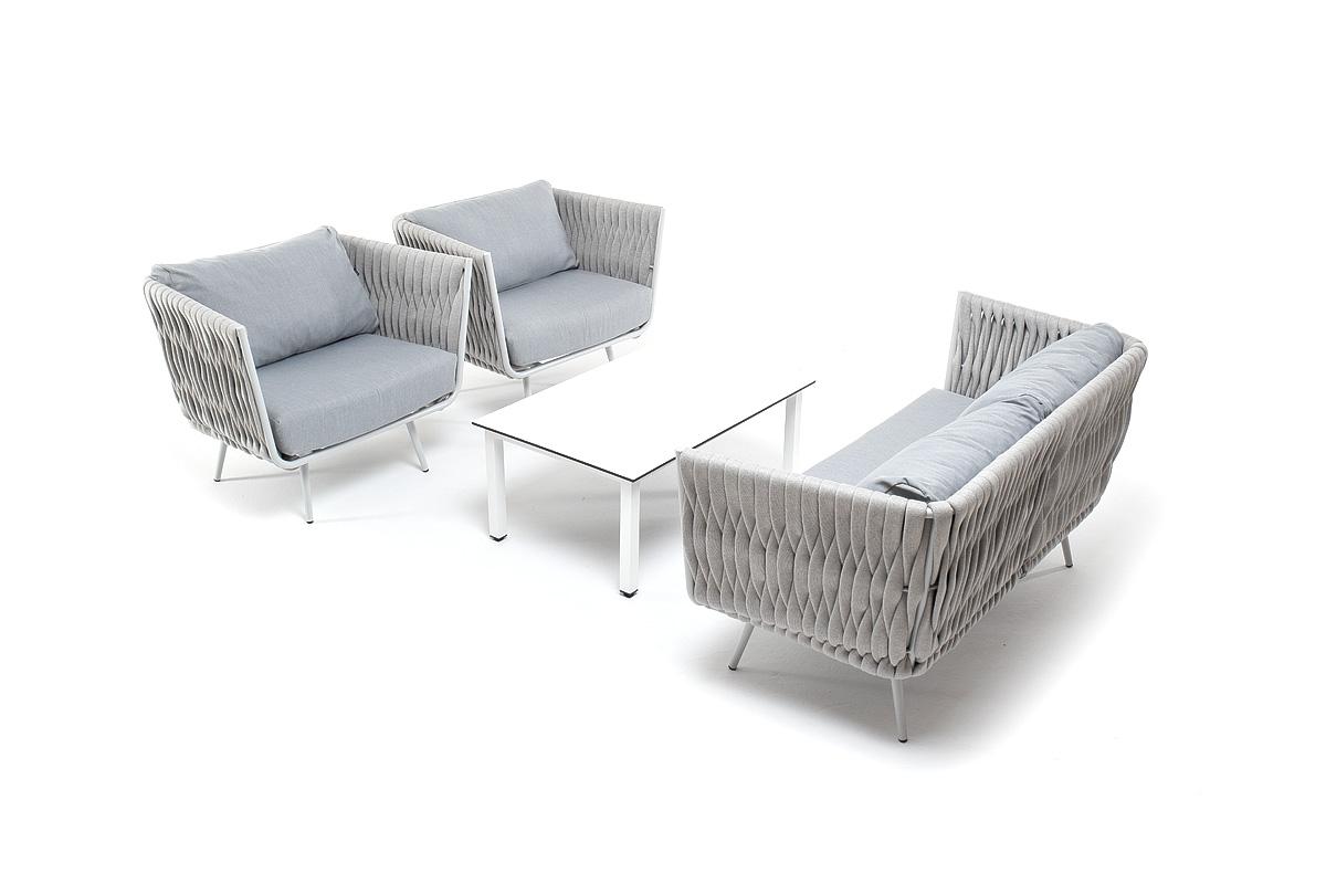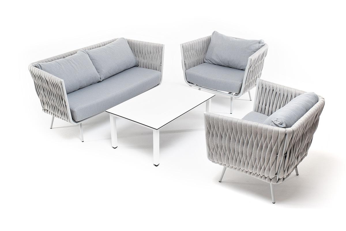 Лаунж зона 4SIS "Монако" лаунж-зона 4-местная из роупа со столом "Верона" (серый гранит), каркас светло-серый, роуп светло-серый арт. MONS2C2TJ-4-SET H-gray