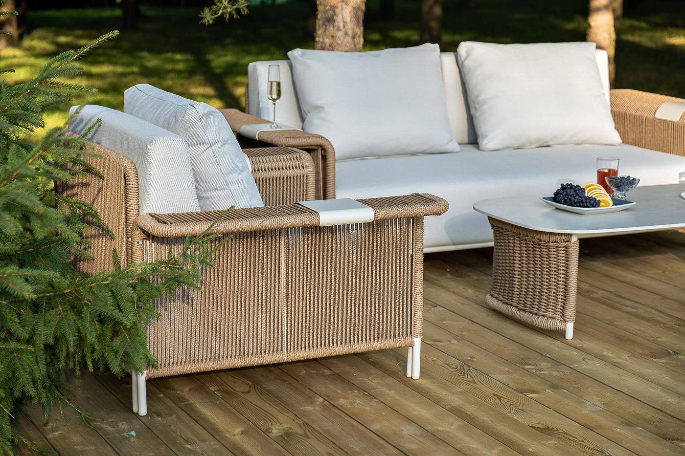 Комплект для лаунж-зоны «Мальдивы» рассчитан на 4 персоны. В состав входят: - 2 кресла - 1220×935×730 мм. - двухместный диван - 2200×940×750 мм. - журнальный столик - 1300×700×430 мм. Комплект выполнен из алюминиевого каркаса, окрашенного порошковой износостойкой краской. Оттенок - «слоновая кость». Искусственный ротанг соломенного цвета украшает мебель в качестве круглого ручного плетения - 7 мм. Укомплектовано плетеное кресло удобными мягкими подушками, одна из которых располагается в обла "Мальдивы" диван двухместный из искусственного ротанга, цвет соломенный 1шт. 2 200Х940Х750, "Мальдивы" кресло из искусственного ротанга, цвет соломенный 2шт. 1 225Х935Х730, "Мальдивы" столик журнальный из искусственного ротанга, цвет соломенный 1шт. 1 300Х770Х430,