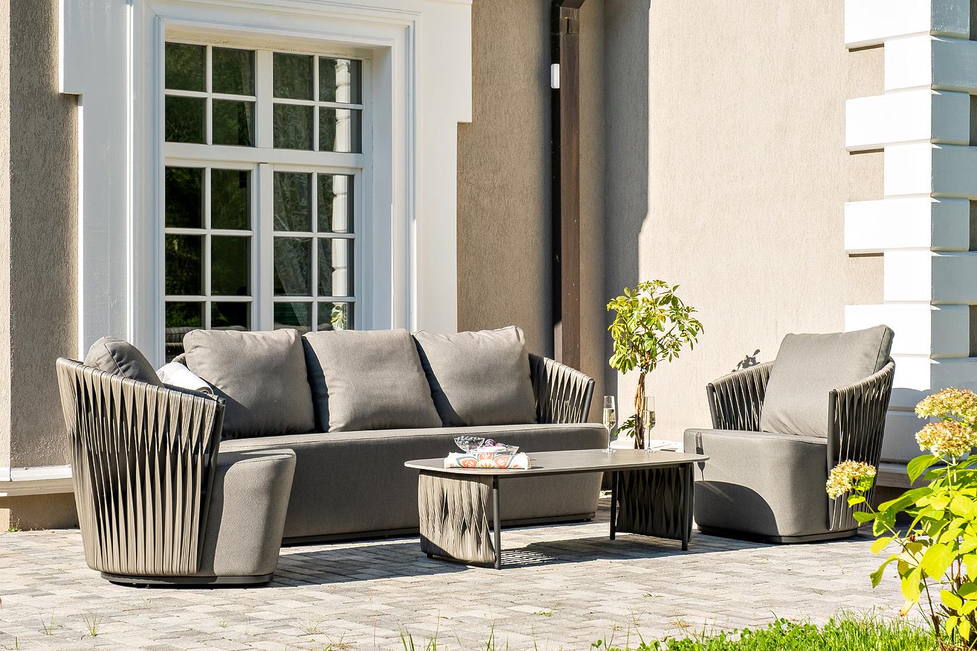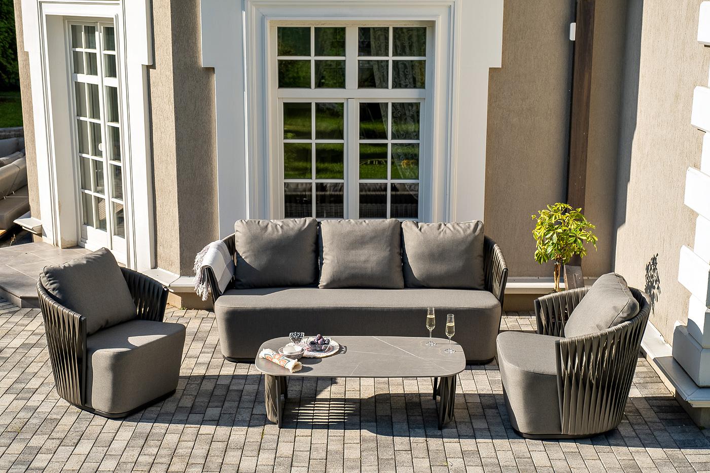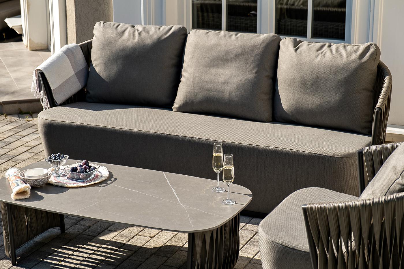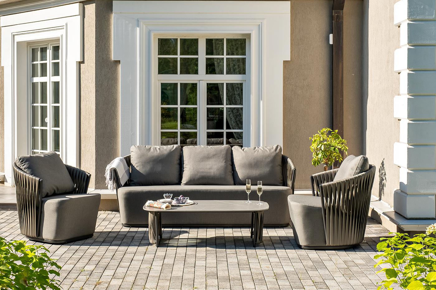 Вместительная лаунж-зона «Флоренция» состоит из: - трехместного дивана – 2210×870×815 мм. - двух кресел – 850×870×815 мм. - журнального столика – 1300×770×430 мм. Из алюминия сделан устойчивый каркас мебели. Ее поверхность дополнена искусственным ротангом, из которого сделано ручное плетение - 50×3 мм, цвет графит. Журнальный столик выполнен из алюминия, окрашенного износостойкой краской графитового цвета. Столешница - овальная, выполнена из искусственного камня графитового цвета. Плете "Флоренция" диван из искусственного ротанга трехместный, цвет графит 1шт. 2 210Х870Х815, "Флоренция" кресло из искусственного ротанга, цвет графит 2шт. 850Х870Х815, "Флоренция" столик журнальный из искусственного ротанга, цвет графит 1шт. 1 300Х770Х430,