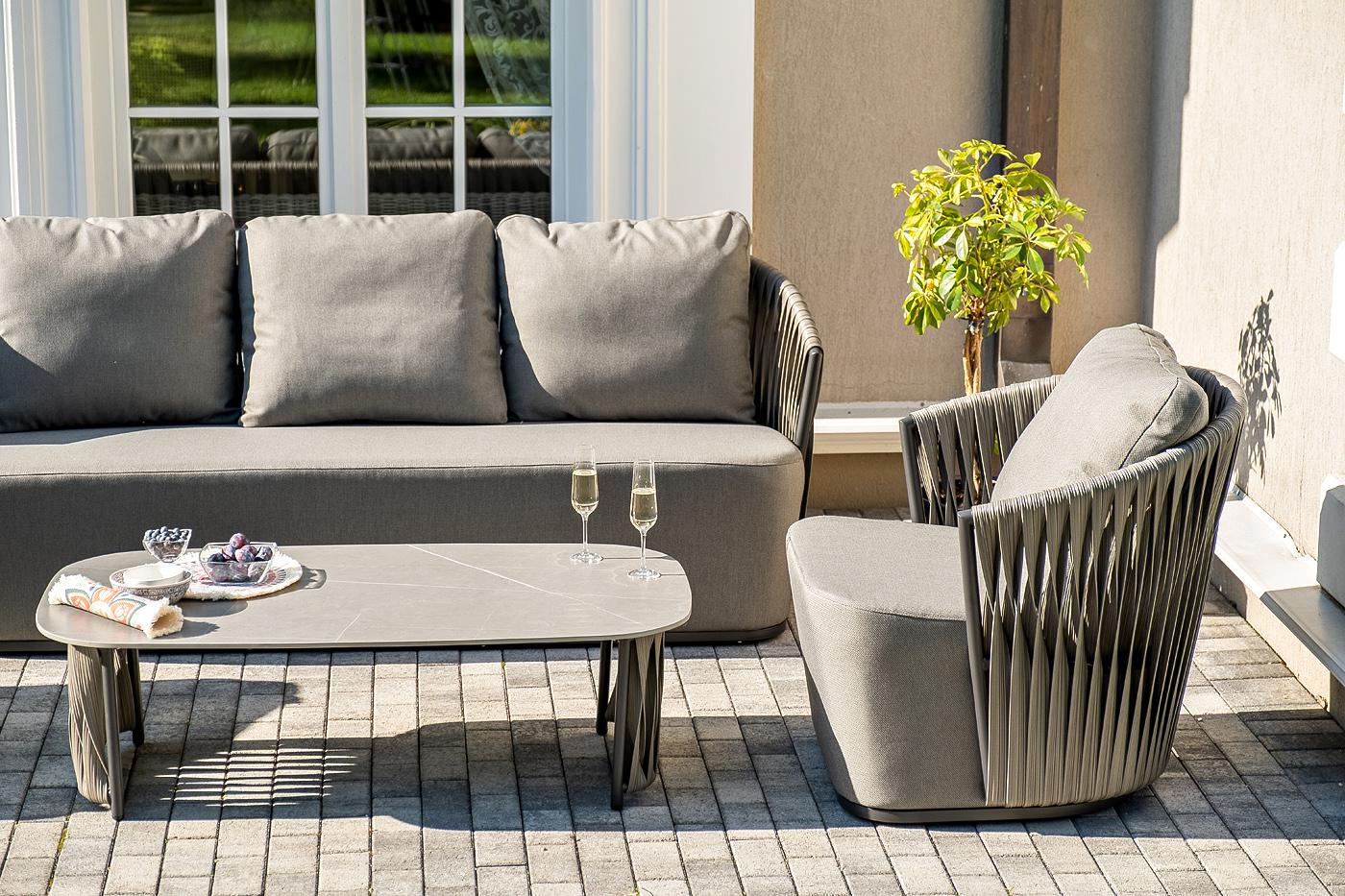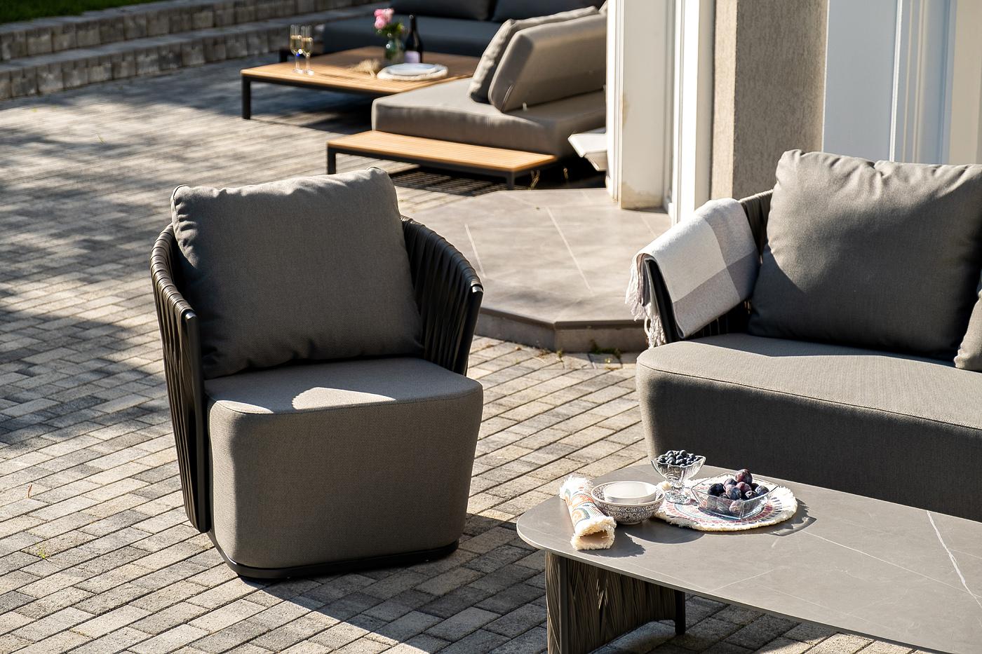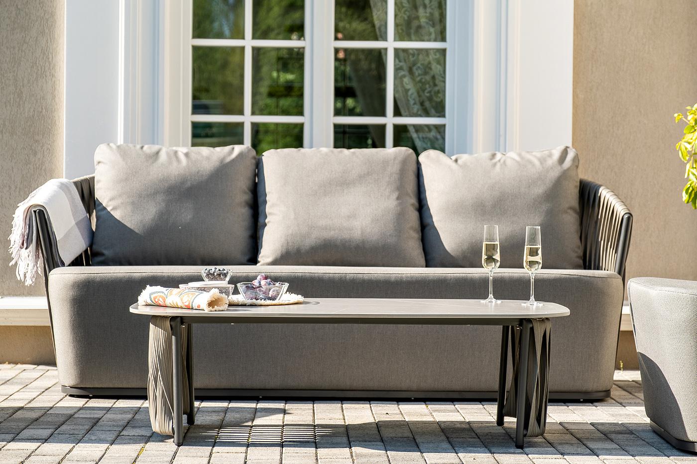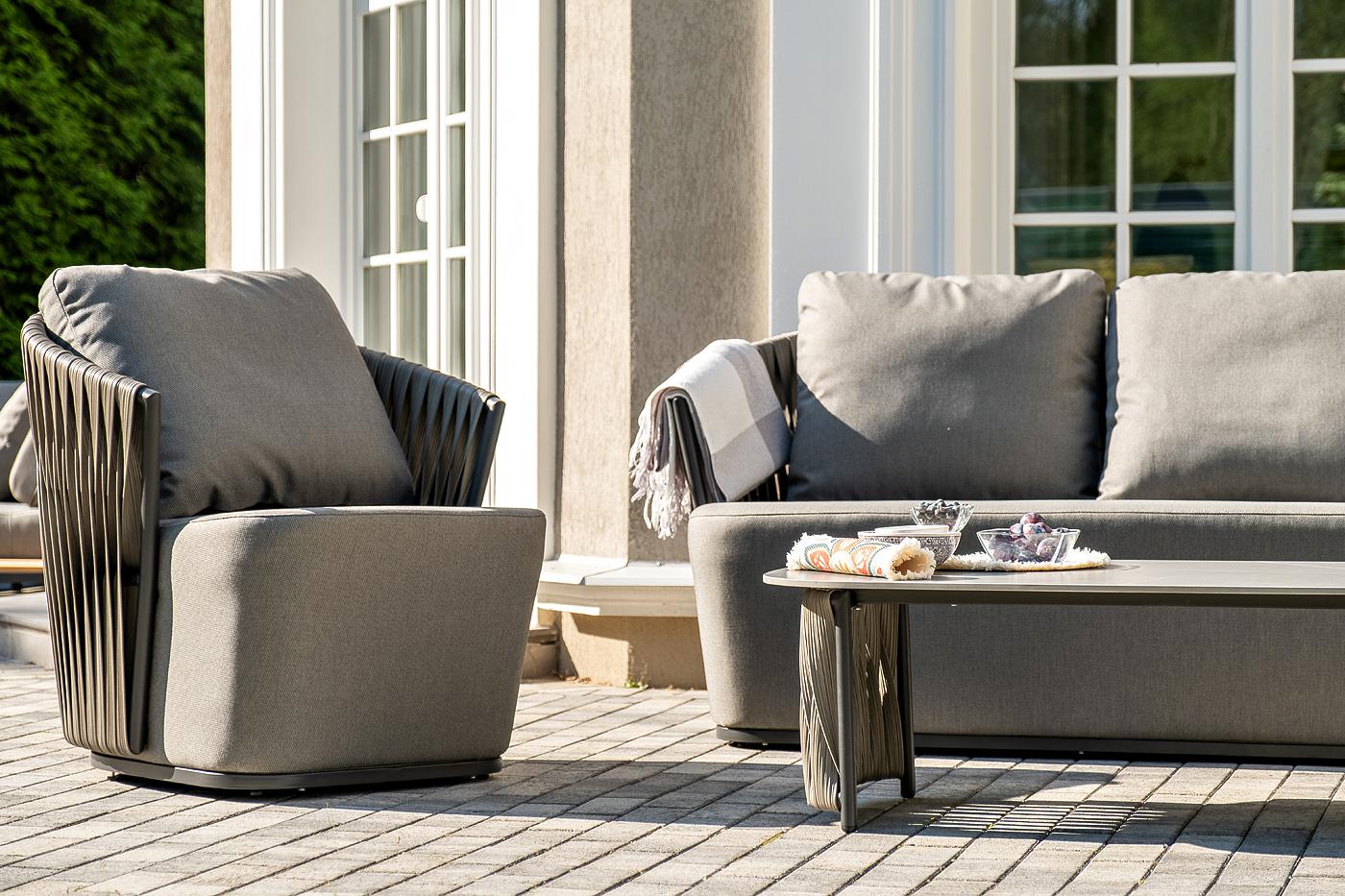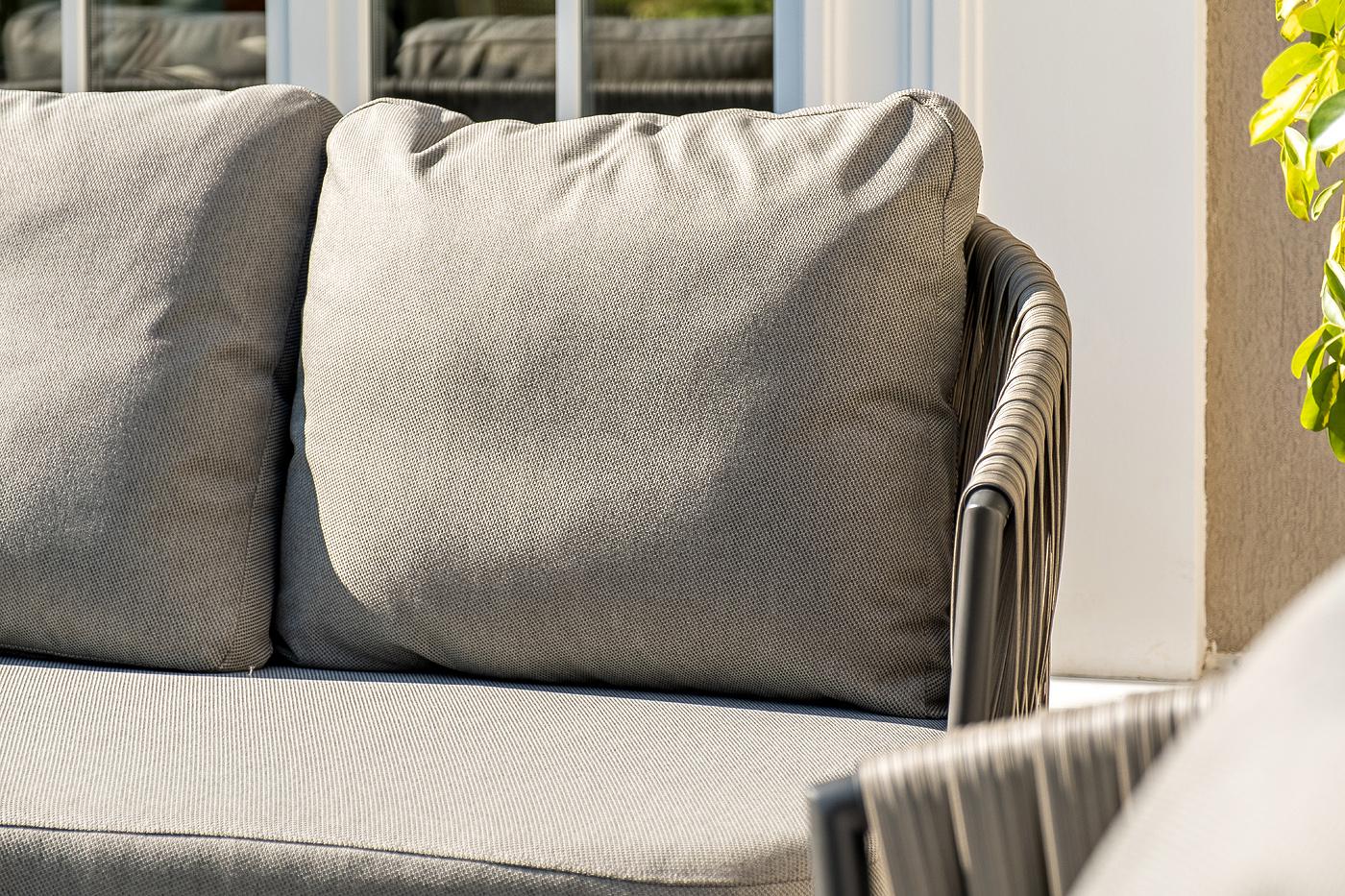 Вместительная лаунж-зона «Флоренция» состоит из: - трехместного дивана – 2210×870×815 мм. - двух кресел – 850×870×815 мм. - журнального столика – 1300×770×430 мм. Из алюминия сделан устойчивый каркас мебели. Ее поверхность дополнена искусственным ротангом, из которого сделано ручное плетение - 50×3 мм, цвет графит. Журнальный столик выполнен из алюминия, окрашенного износостойкой краской графитового цвета. Столешница - овальная, выполнена из искусственного камня графитового цвета. Плете "Флоренция" диван из искусственного ротанга трехместный, цвет графит 1шт. 2 210Х870Х815, "Флоренция" кресло из искусственного ротанга, цвет графит 2шт. 850Х870Х815, "Флоренция" столик журнальный из искусственного ротанга, цвет графит 1шт. 1 300Х770Х430,