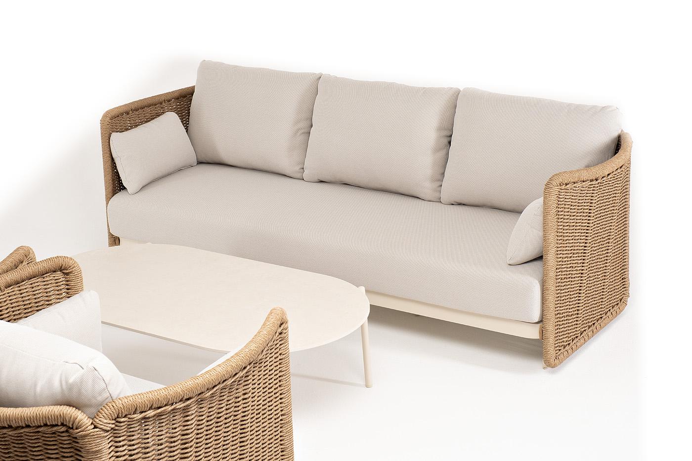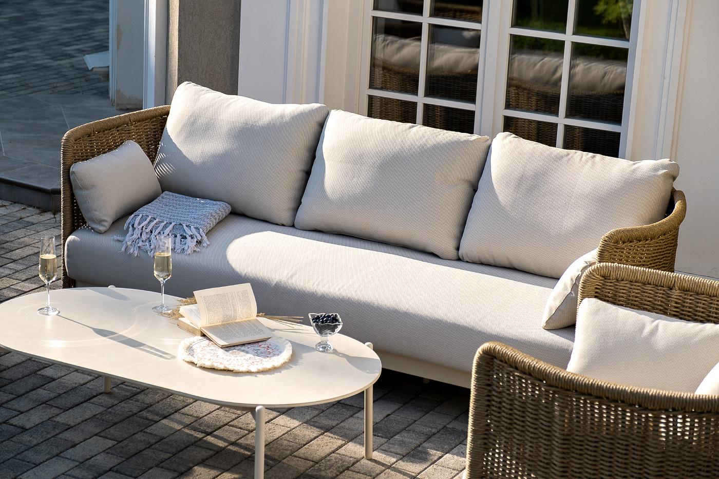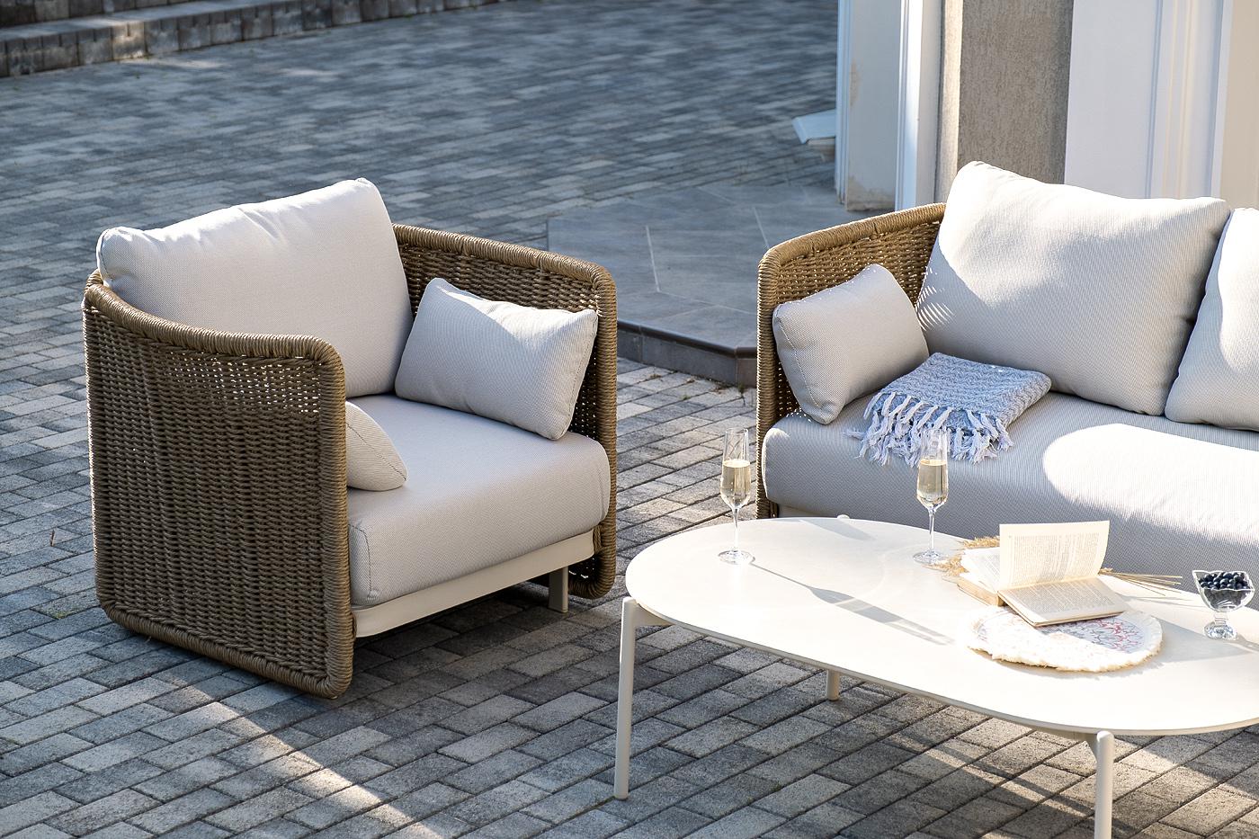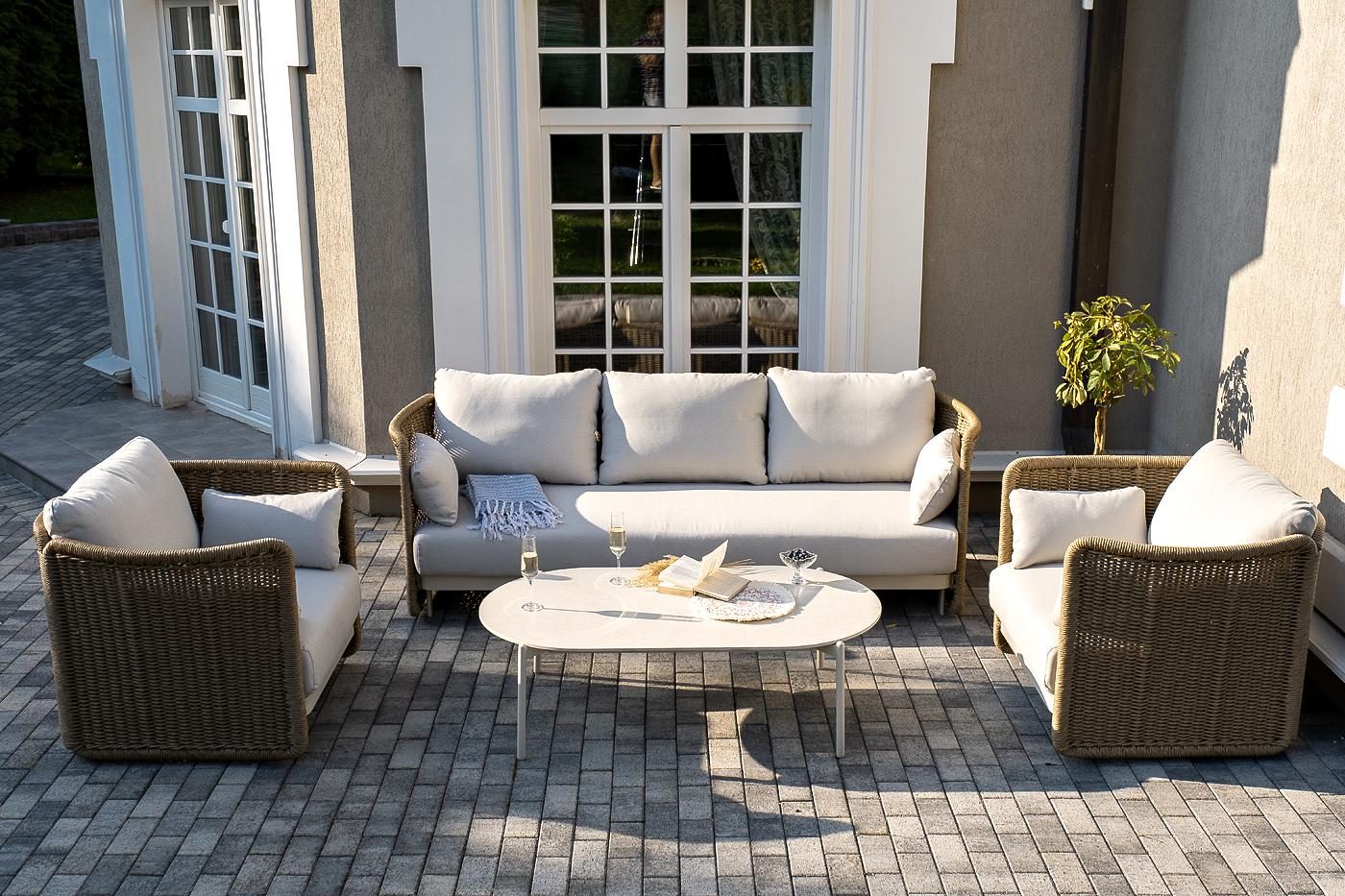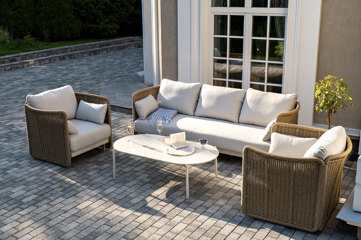 Вместительная лаунж-зона «Аликанте» состоит из: - трехместного дивана – 2300×865×730 мм. - двух кресел – 960×865×730 мм. - журнального столика – 1300×700×380 мм. Модели изготовлены из алюминиевого каркаса, окрашенного порошковой износостойкой краской. Оттенок - "слоновая кость". Искусственный ротанг украшает мебель в качестве круглого ручного плетения - 7 мм. Оно представлено в соломенном цвете. Журнальный столик выполнен из алюминия, окрашенного износостойкой краской, а его оплетка выпо "Аликанте" диван из искусственного ротанга трехместный, цвет соломенный 1шт. 2 300Х865Х730, "Аликанте" кресло из искусственного ротанга, цвет соломенный 2шт. 960Х865Х730, "Аликанте" журнальный стол из искусственного камня овальный, 130х70см, Н38, цвет белый 1шт. 1 300Х700Х380,