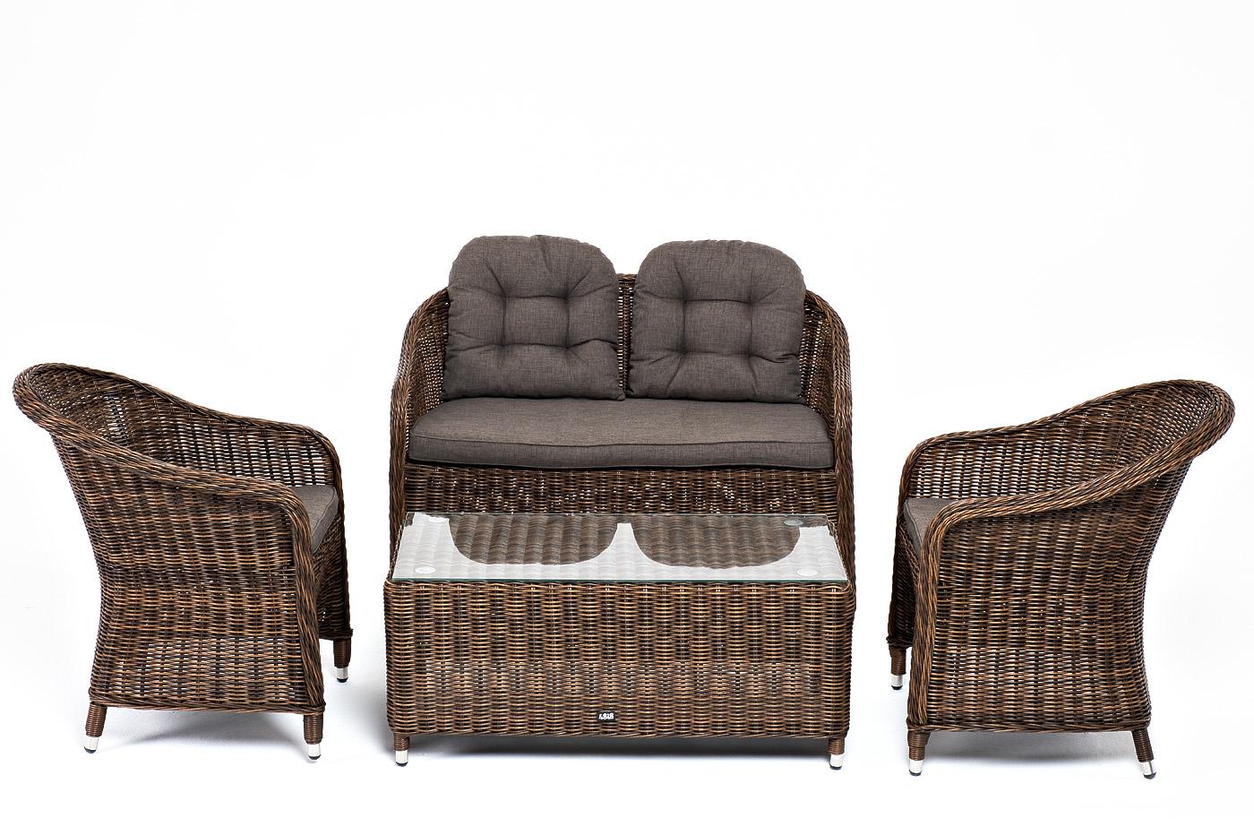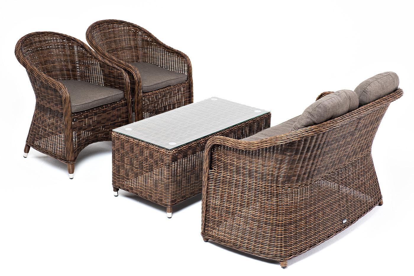 Лаунж зона 4SIS "Равенна" лаунж-зона из искусственного ротанга, цвет коричневый арт. RS2C2T-4-SET brown