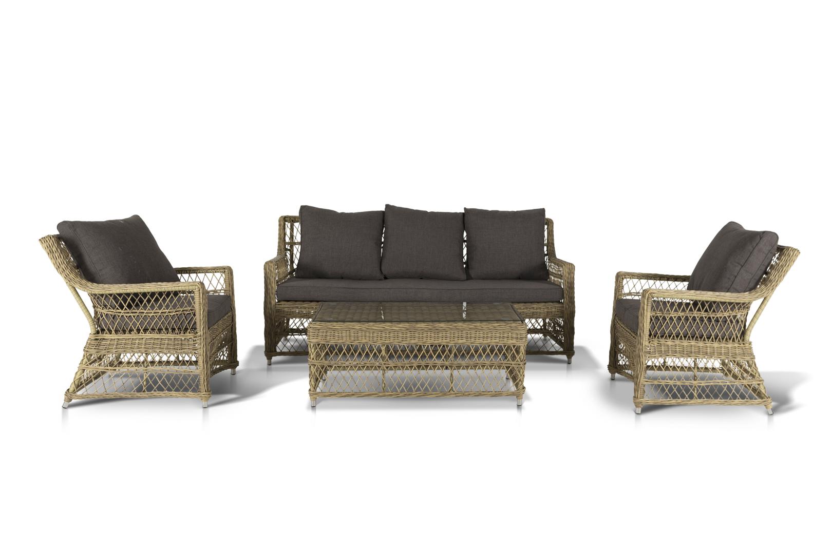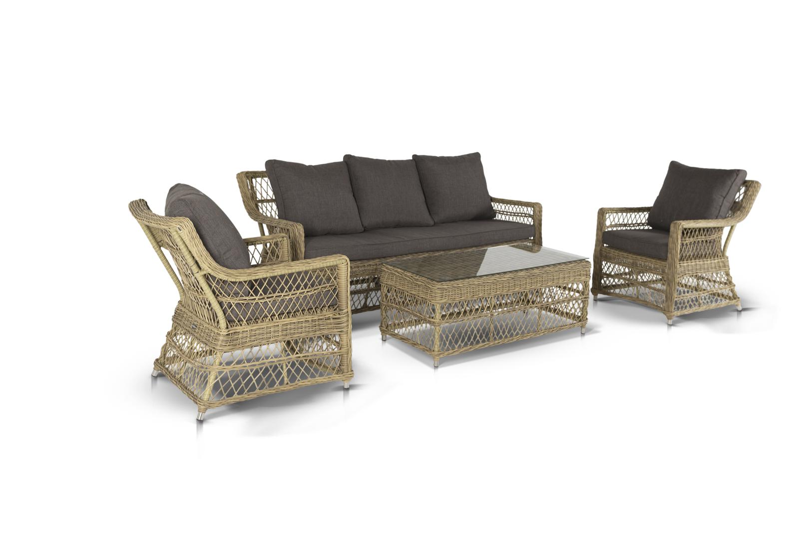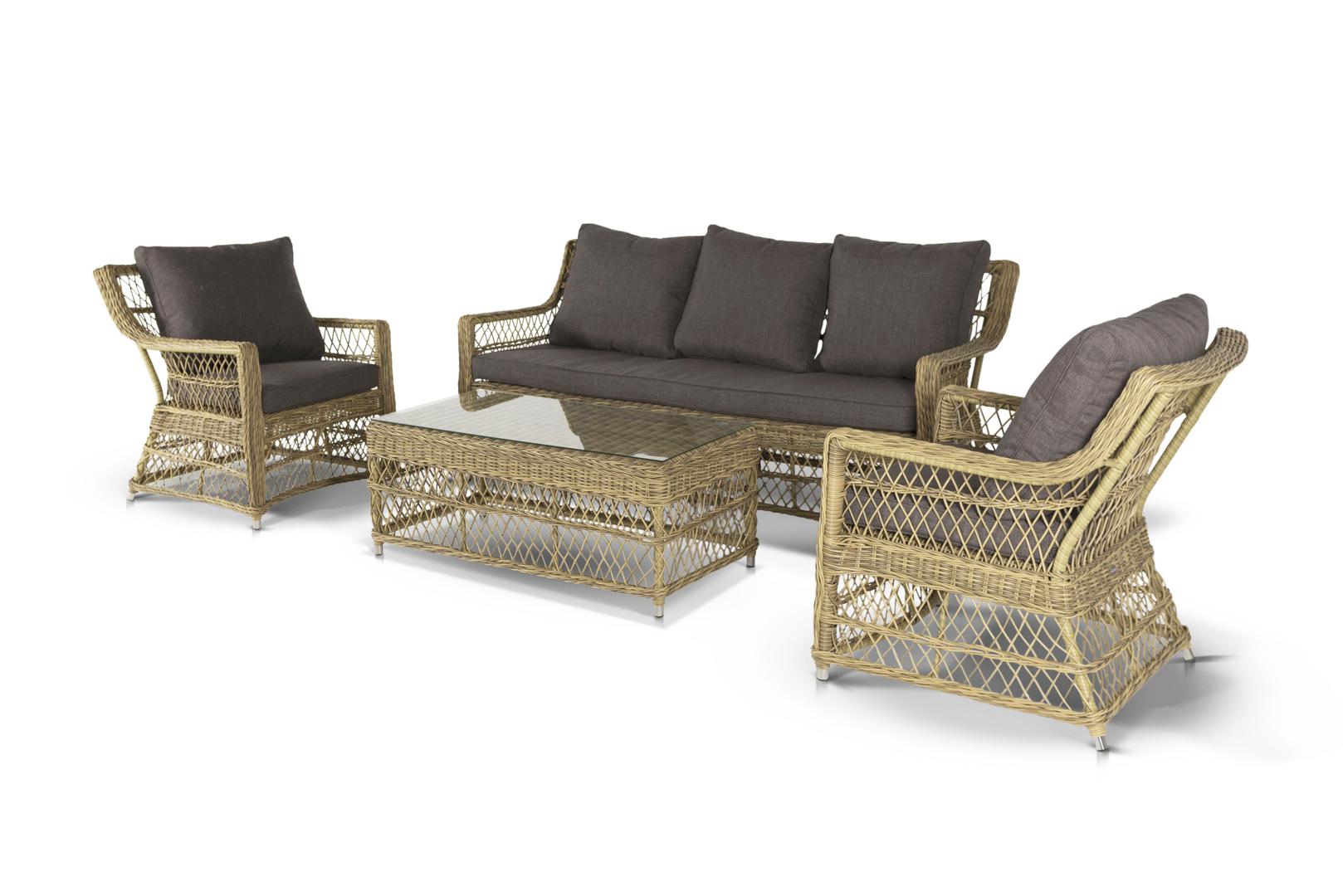 Лаунж зона 4SIS "Гранд Латте" лаунж-зона из искусственного ротанга, цвет соломенный арт. GLS3C2T-4-SET