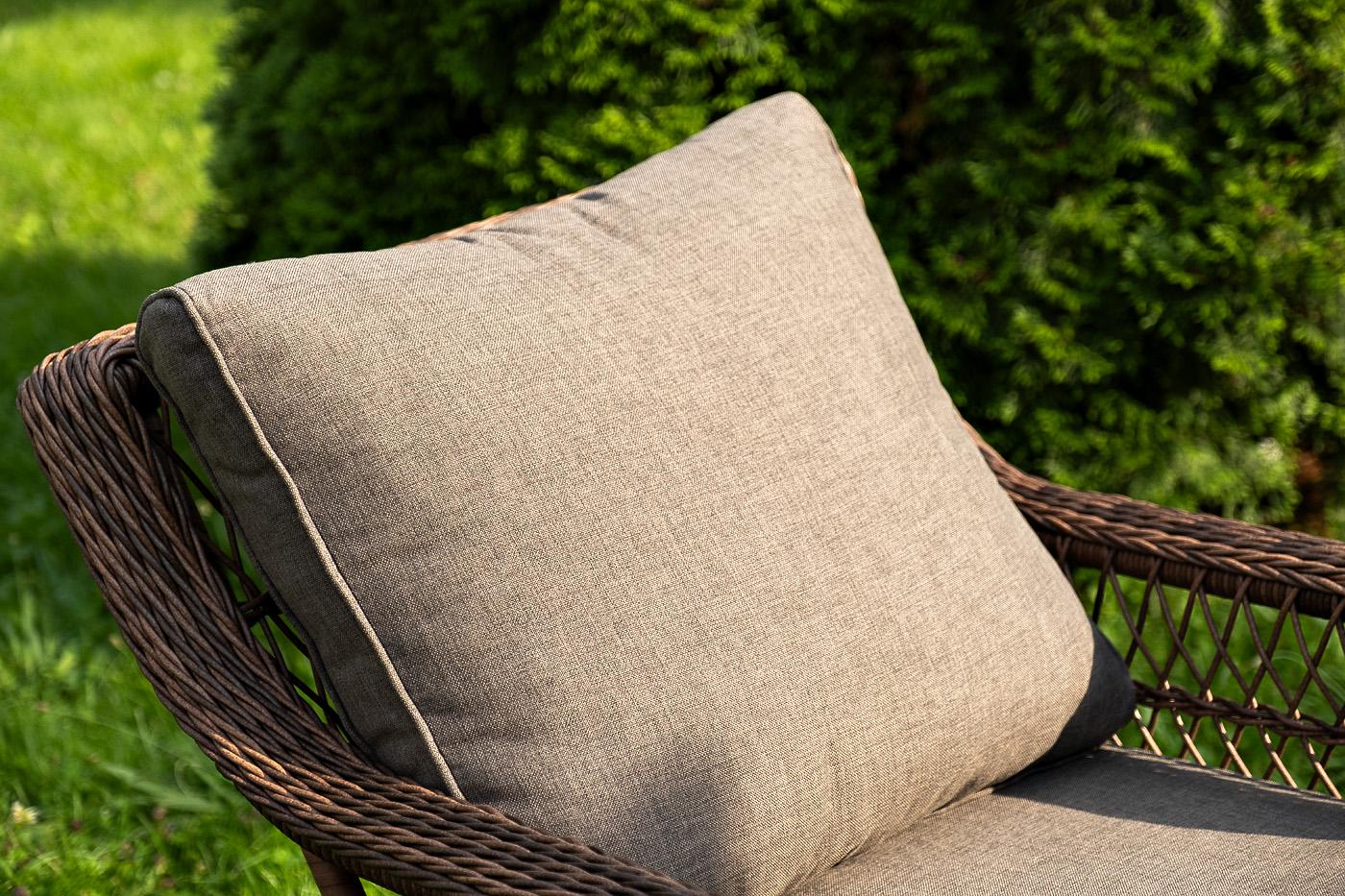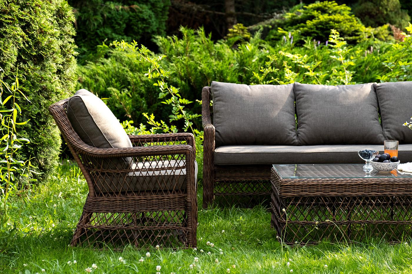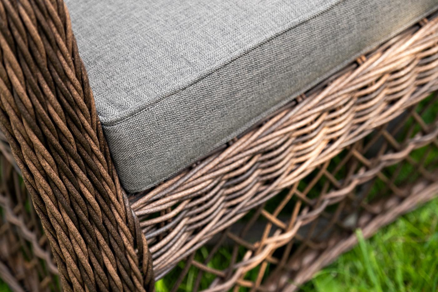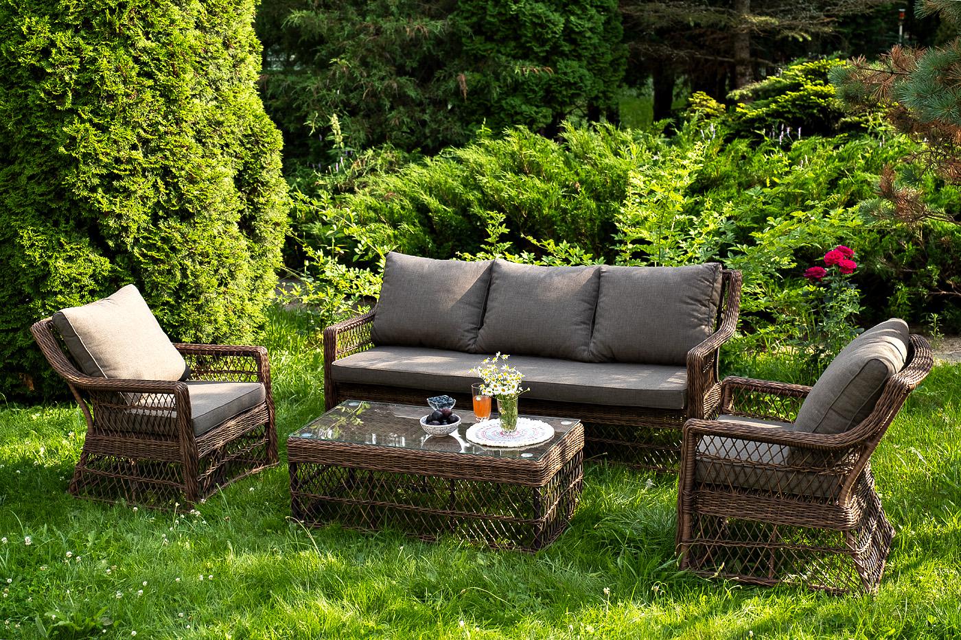 Лаунж-зона «Гранд Латте» включает в себя все необходимое для полноценного отдыха и рассчитана на одновременное размещение пяти персон. Плетеный комплект состоит из: - трехместного дивана, размер – 1875×830×850 мм. - двух кресел, размер – 720×830×850 мм. - журнального столика, размер – 1120×570×450 мм. Уличная мебель имеет алюминиевый каркас, ручное плетение, сделанное из коричневого искусственного ротанга. Предусмотрены мягкие подушки из полиэстера серого цвета с плотностью 300гр/м2. "Гранд Латте" диван трехместный из искусственного ротанга, цвет коричневый 1шт. 1 875Х830Х850, "Гранд Латте" кресло из искусственного ротанга, цвет коричневый 2шт. 720Х830Х850, "Гранд Латте" стол журнальный из искусственного ротанга, цвет коричневый 1шт. 1 120Х570Х450,