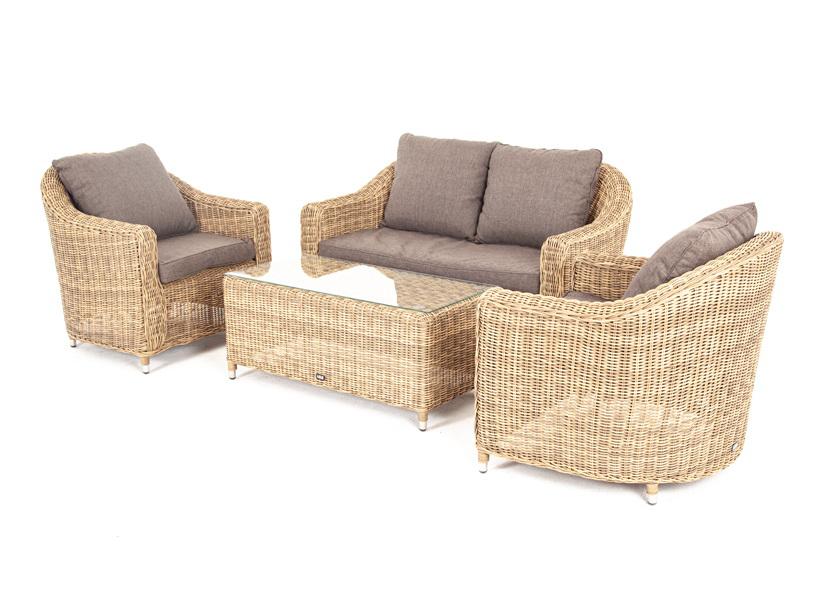 Лаунж зона 4SIS "Кон Панна" лаунж-зона из искусственного ротанга, цвет соломенный арт. KPS2C2TJ-4-SET