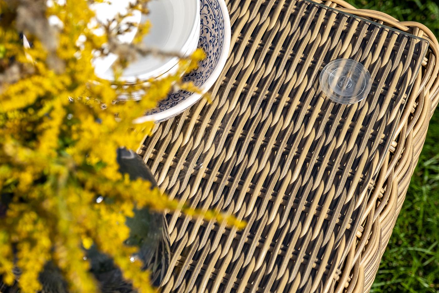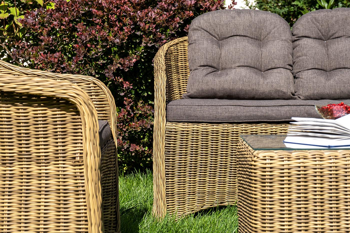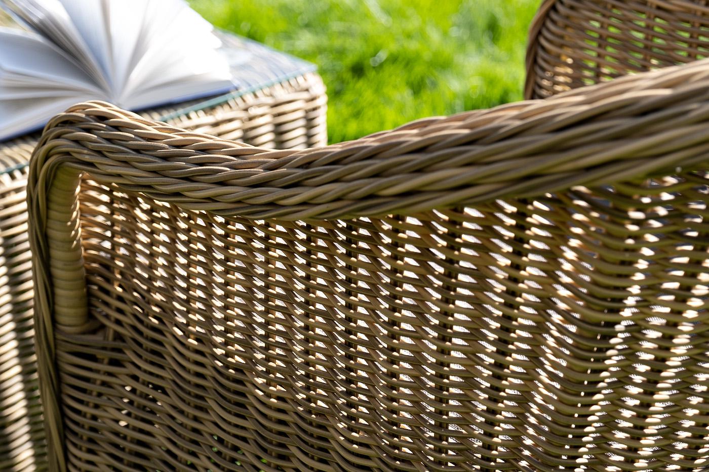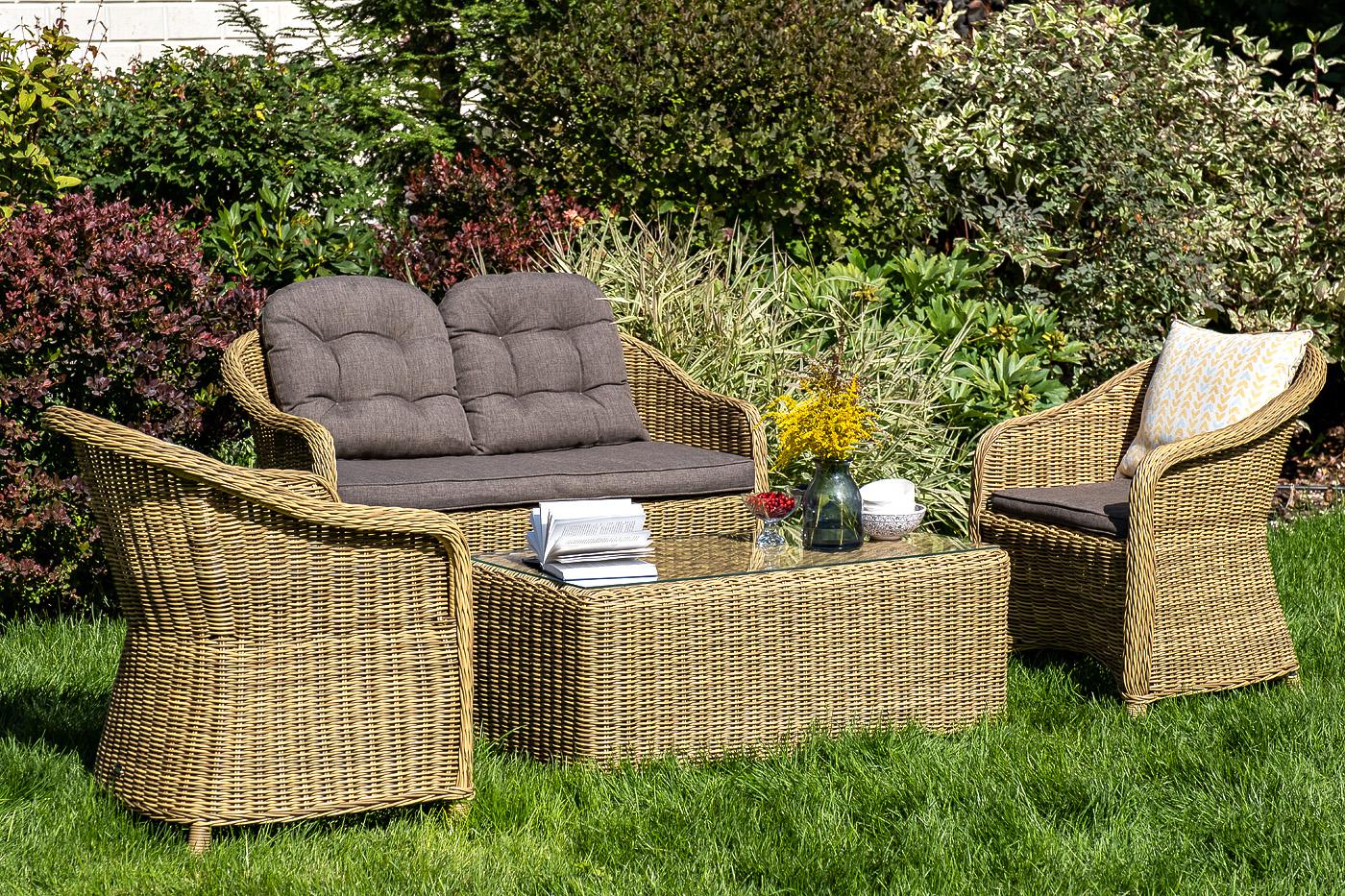 Комплект для лаунж-зоны «Равенна» рассчитан на 4 персоны. В состав водят: - двухместный диван - 1180×680×810 мм. - 2 кресла - 570×680×810 мм. - журнальный столик - 1000×500×420 мм. Комплект выполнен из круглого искусственного ротанга соломенного цвета. Каркас - из легкого и прочного алюминия. Подушки со съёмными чехлами - из 100% полиэстера, плотностью 300гр/м2 с влагоотталкивающей пропиткой. "Равенна" диван двухместный плетенный из ротанга, цвет соломенный 1шт. 1 180Х680Х810, "Равенна" плетеное кресло из искусственного ротанга, цвет соломенный 2шт. 570Х680Х810, "Кон Панна" столик журнальный из искусственного ротанга, цвет соломенный 1шт. 1 000Х500Х420,