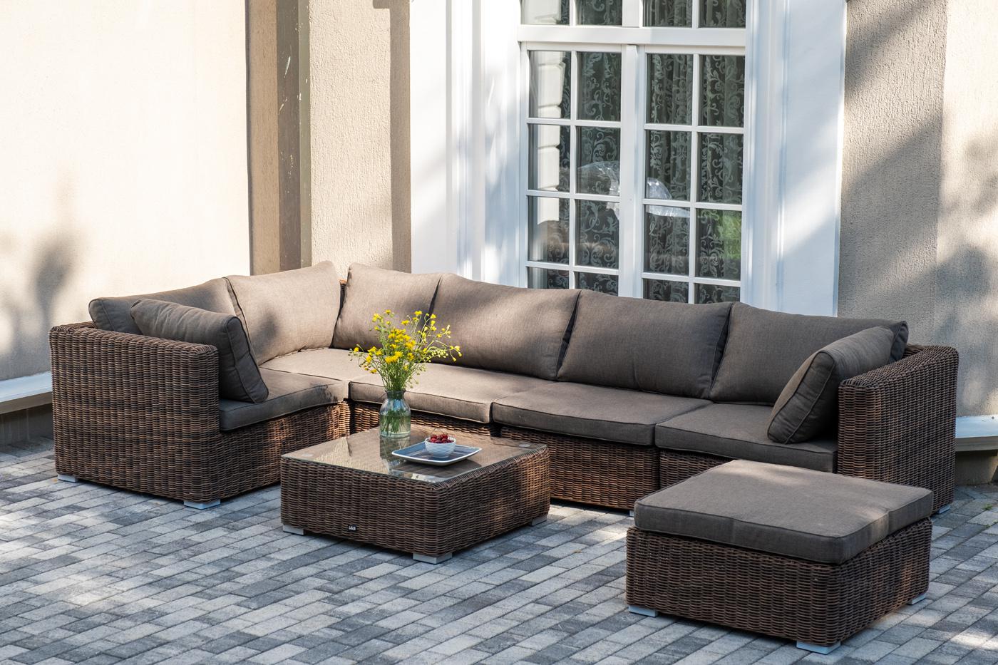 Лаунж зона 4SIS "Лунго" трансформирующаяся лаунж-зона из искусственного ротанга, цвет коричневый арт. LS5O1T1-7-SET brown