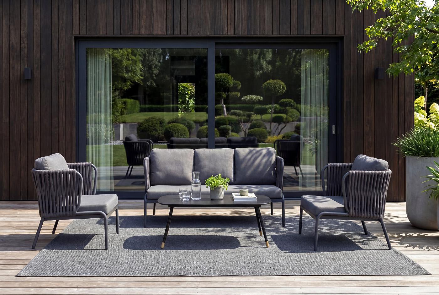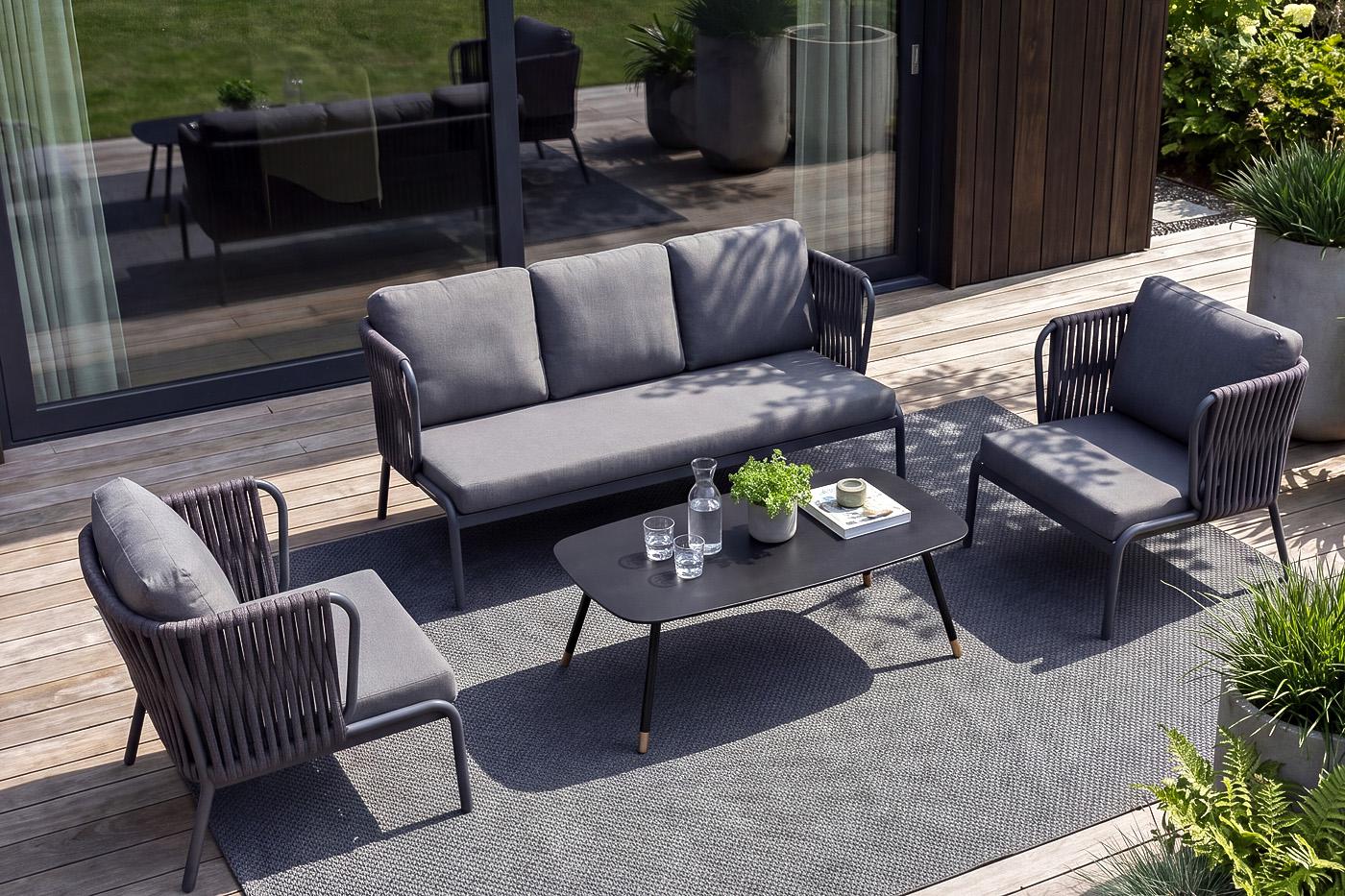 Лаунж зона 4SIS "Ронда" лаунж-зона 5-местная плетеная из роупа (веревки), каркас алюминиевый темно-серый, роуп серый 40 мм tex арт. RONS3C2TJ-4-SET