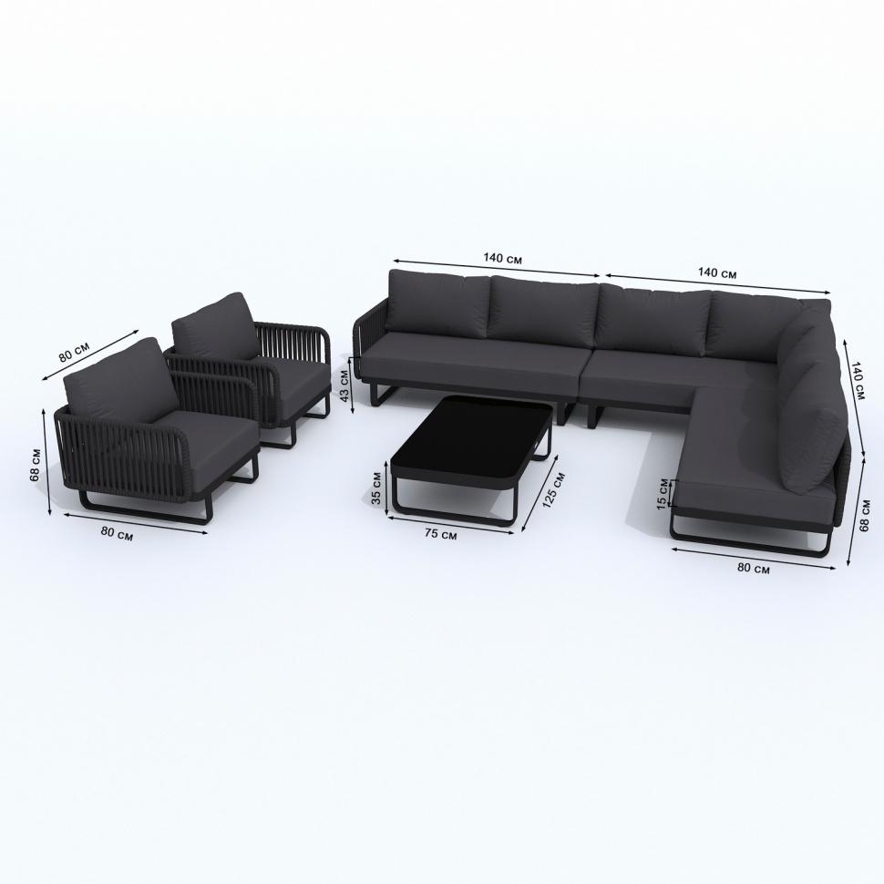 Материалы: всесезонный алюминий, искусственный камень Цвет: каркас карбон (темно-серый) / столешница темно-серый искусственный камень с рисунком "под камень" кофейный столик 125 * 75 * 36 см 35 кг 1 шт