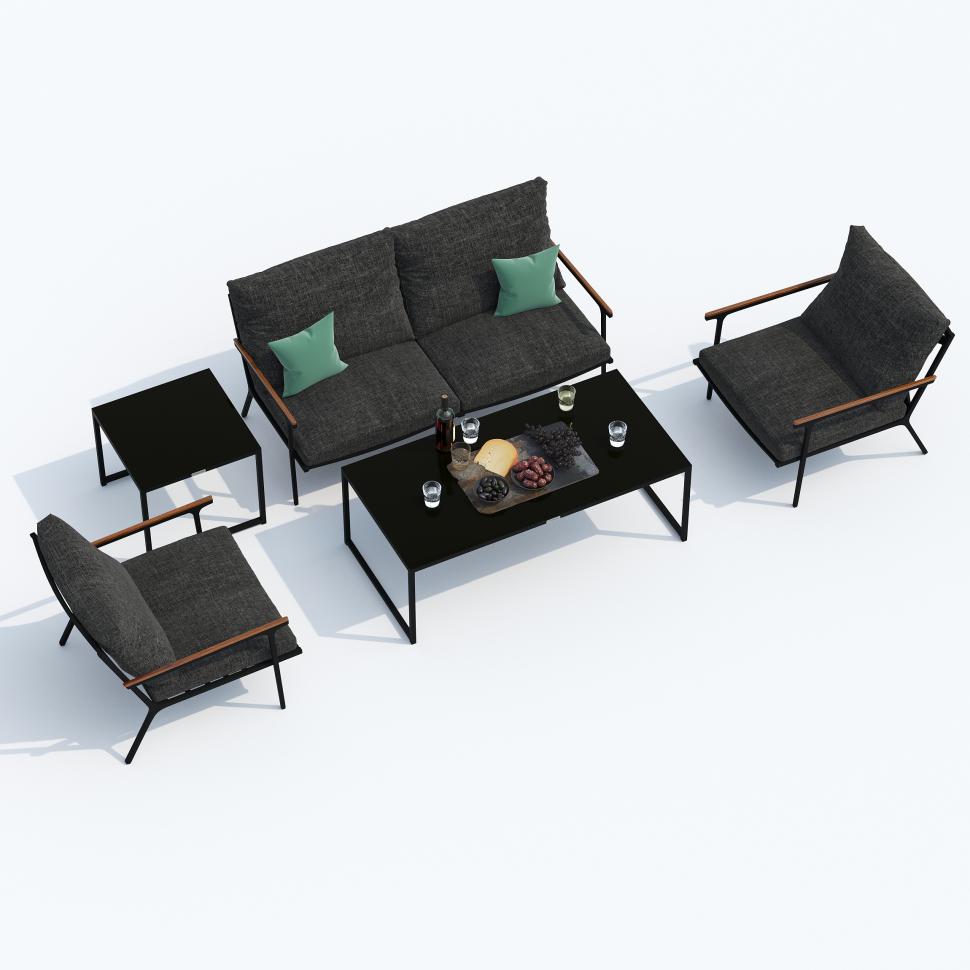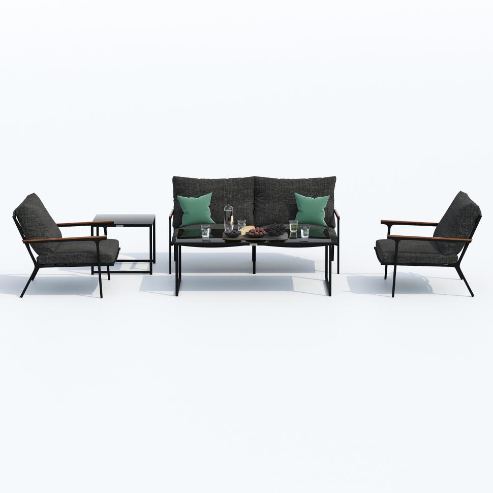 Материалы: всесезонный алюминий с порошковым напылением, специальная ткань для улицы, закаленное стекло, тик Цвет: каркас темно-серый карбон / подушки маренго / столешница черная глянцевая Комплектация и габариты: диван двухместный 140 * 86 * 86 вес 19 кг 1 шт кресло 70 * 86 * 86 вес 10 кг 2 шт кофейный столик 120 * 60 * 42 вес 11 кг 1 шт журнальный столик 50 * 50 * 42 вес 5 кг 1 шт Мягкий двухместный диван, большие кресла и два журнальных столика со столешницей из чёрного глянцевого стекла - создать поистине уютное пространство для отдыха легко. Минимализм и сдержанная цветовая гамма, которую можно дополнить яркими акцентами в виде различных предметов декора. Чехлы цвета маренго идеально сочетаются с темно-серым каркасом. Они не выгорят на солнце и выдержат любые капризы погоды. Благодаря вшитой молнии их легко снять и почистить, если на них есть видимые загрязнения. ФЕСТА - садовая мебель, способная приятно удивить и доставить максимум комфорта. Отдохнуть от городской суеты и побыть наедине с собой и своими мыслями. С лаунж зоной премиум класса можно провести время исключительно с удовольствием. Всё благодаря высококачественным материалам и качественной сборке. Всесезонный алюминий обладает антикоррозийными свойствами - он невосприимчив к повышенной влажности и регулярным осадкам. Создайте идеальную зону релакса, не выходя за пределы загородного участка!