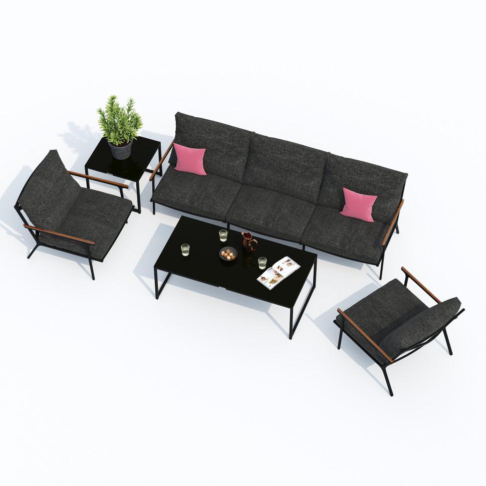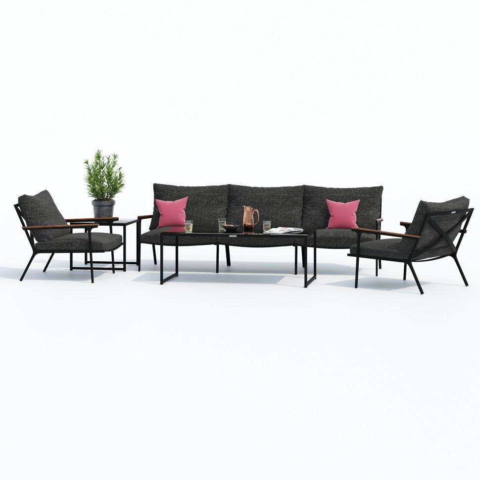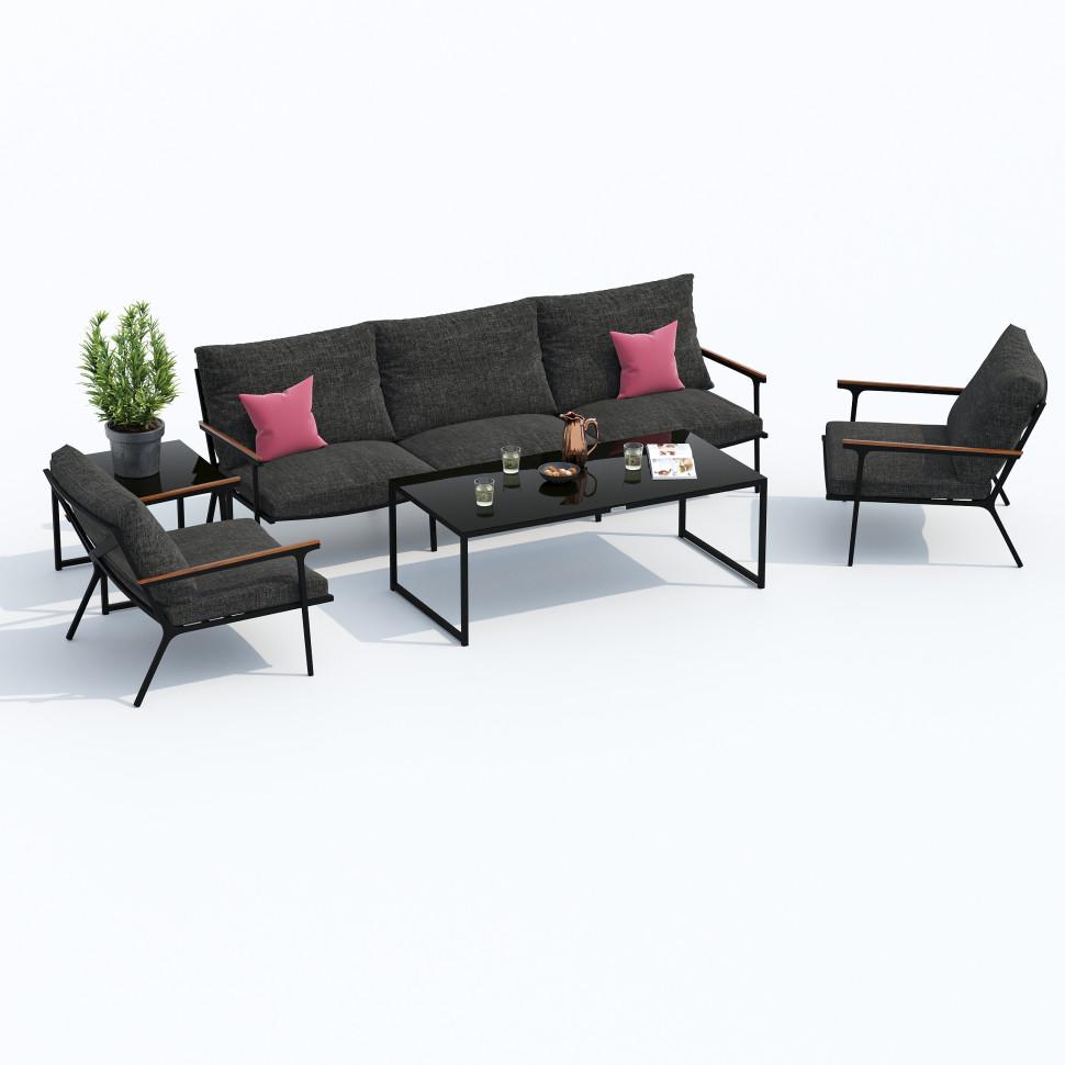 Материалы: всесезонный алюминий с порошковым напылением, специальная ткань для улицы, закаленное стекло, тик Цвет: каркас темно-серый карбон / подушки маренго / столешница черная глянцевая Комплектация и габариты: диван трехместный 208 * 86 * 86 вес 24 кг 1 шт кресло 70 * 86 * 86 вес 10 кг 2 шт кофейный столик 120 * 60 * 42 вес 11 кг 1 шт журнальный столик 50 * 50 * 42 вес 5 кг 1 шт Мягкий трёхместный диван, большие кресла и два журнальных столика со столешницей из чёрного глянцевого стекла - создать поистине уютное пространство для отдыха легко. Минимализм и сдержанная цветовая гамма, которую можно дополнить яркими акцентами в виде различных предметов декора. Чехлы цвета маренго идеально сочетаются с темно-серым каркасом. Они не выгорят на солнце и выдержат любые капризы погоды. Благодаря вшитой молнии их легко снять и почистить, если на них есть видимые загрязнения. ФЕСТА - садовая мебель, способная приятно удивить и доставить максимум комфорта. Отдохнуть от городской суеты и побыть наедине с собой и своими мыслями. С лаунж зоной премиум класса можно провести время исключительно с удовольствием. Всё благодаря высококачественным материалам и качественной сборке. Всесезонный алюминий обладает антикоррозийными свойствами - он невосприимчив к повышенной влажности и регулярным осадкам. Создайте идеальную зону релакса, не выходя за пределы загородного участка!