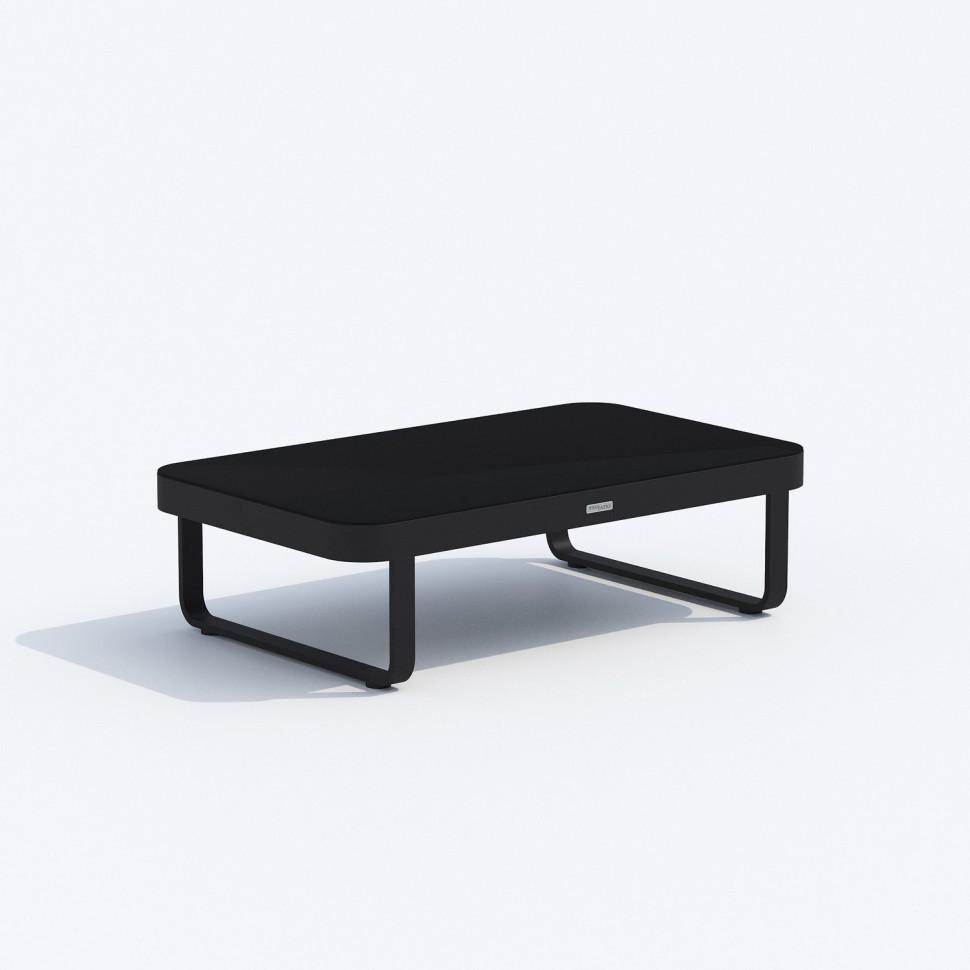 Материалы: всесезонный алюминий, закаленное стекло Цвет: каркас карбон (темно-серый) / черное глянцевое стекло кофейный столик 125 * 75 * 35 см 19 кг 1 шт