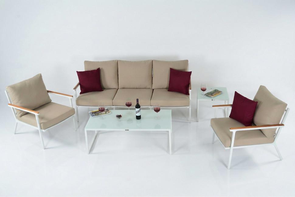 Материалы: всесезонный алюминий с порошковым напылением, специальная ткань для улицы, закаленное стекло, тик Цвет: каркас белый / подушки бежевые / столешница белая глянцевая Комплектация и габариты: диван трехместный 208 * 86 * 86 вес 24 кг 1 шт кресло 70 * 86 * 86 вес 10 кг 2 шт кофейный столик 120 * 60 * 42 вес 11 кг 1 шт журнальный столик 50 * 50 * 42 вес 5 кг 1 шт Мягкий трёхместный диван, большие кресла и два журнальных столика со столешницей из белого глянцевого стекла - создать поистине уютное пространство для отдыха легко. Минимализм и сдержанная цветовая гамма, которую можно дополнить яркими акцентами в виде различных предметов декора. Чехлы бежевого цвета идеально сочетаются с белым каркасом. Они не выгорят на солнце и выдержат любые капризы погоды. Благодаря вшитой молнии их легко снять и почистить, если на них есть видимые загрязнения. ФЕСТА - садовая мебель, способная приятно удивить и доставить максимум комфорта. Отдохнуть от городской суеты и побыть наедине с собой и своими мыслями. С лаунж зоной премиум класса можно провести время исключительно с удовольствием. Всё благодаря высококачественным материалам и качественной сборке. Всесезонный алюминий обладает антикоррозийными свойствами - он невосприимчив к повышенной влажности и регулярным осадкам. Создайте идеальную зону релакса, не выходя за пределы загородного участка!