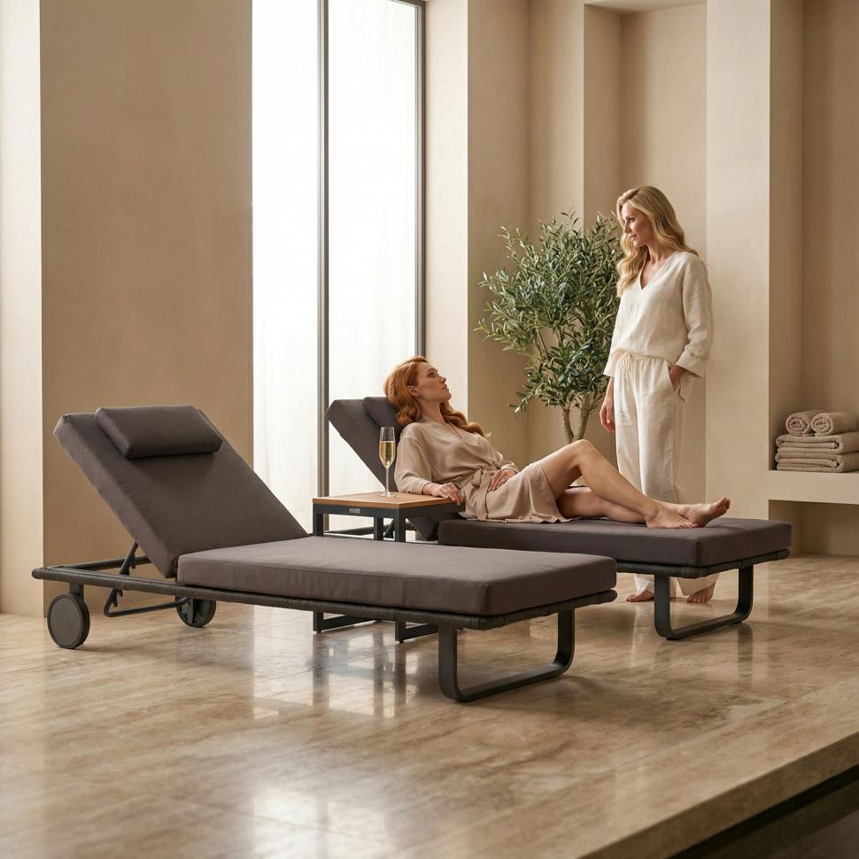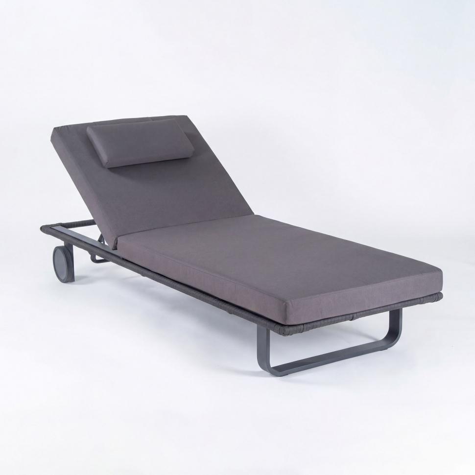 Мебель IDEAL PATIO Шезлонг КОСТА С на колесах, каркас карбон, матрас антрацит (с подушкой) арт. CST.3015001