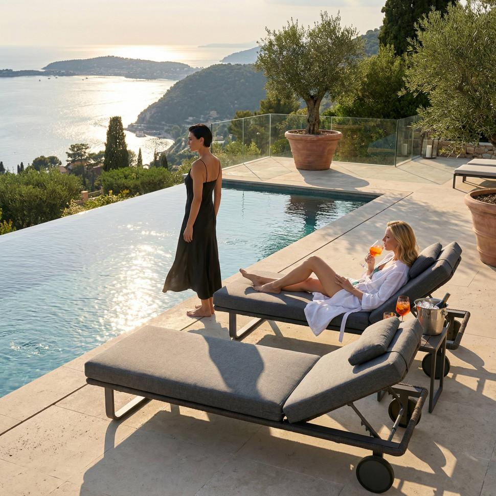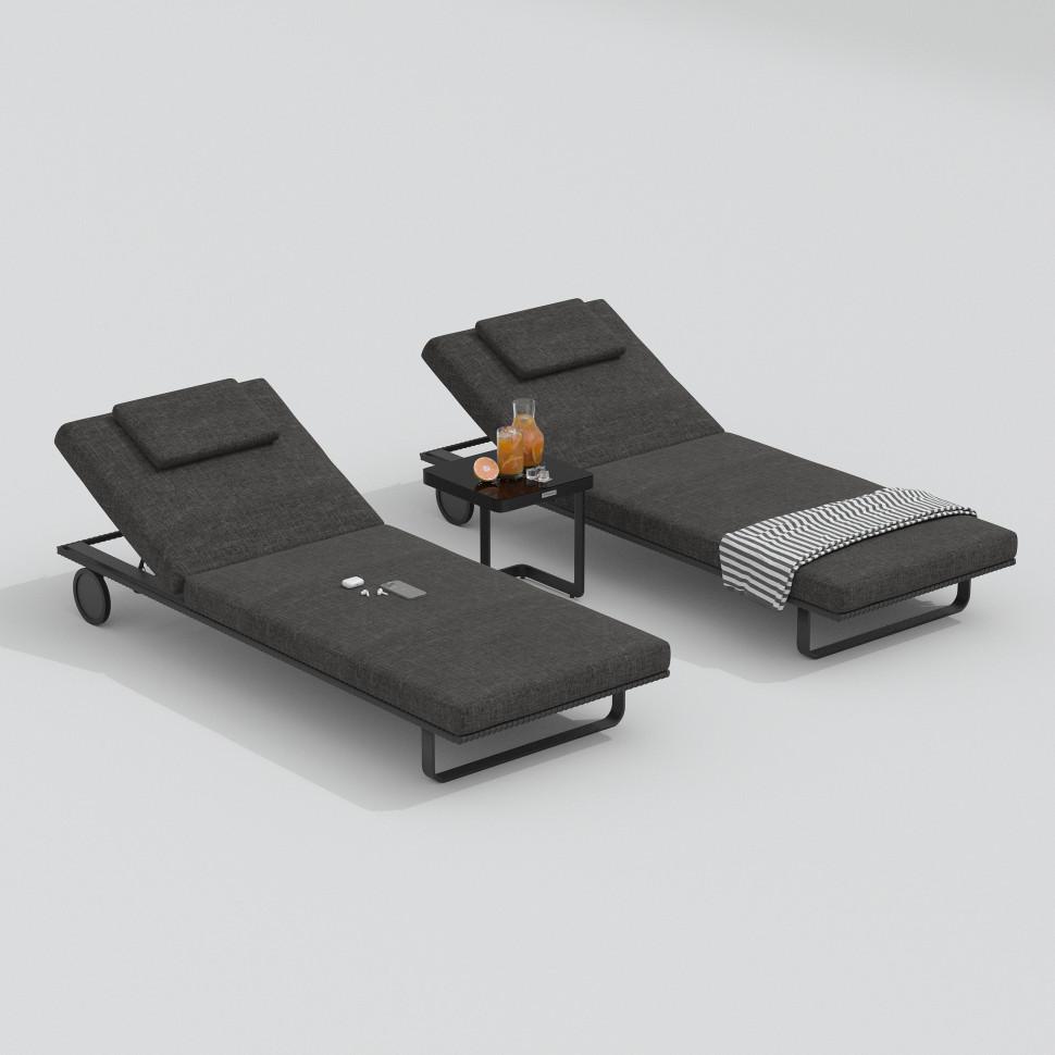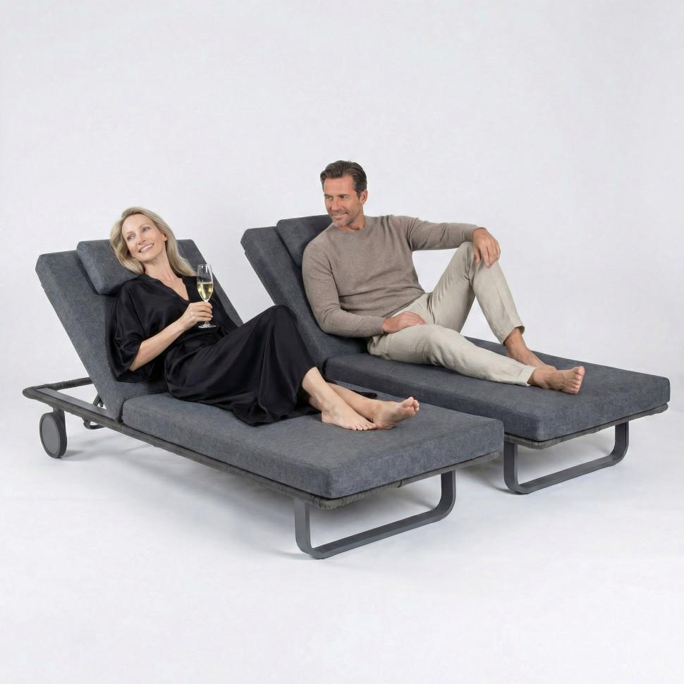 Мебель IDEAL PATIO Шезлонг КОСТА С на колесах, каркас карбон, матрас маренго (с подушкой) арт. CST.3017001