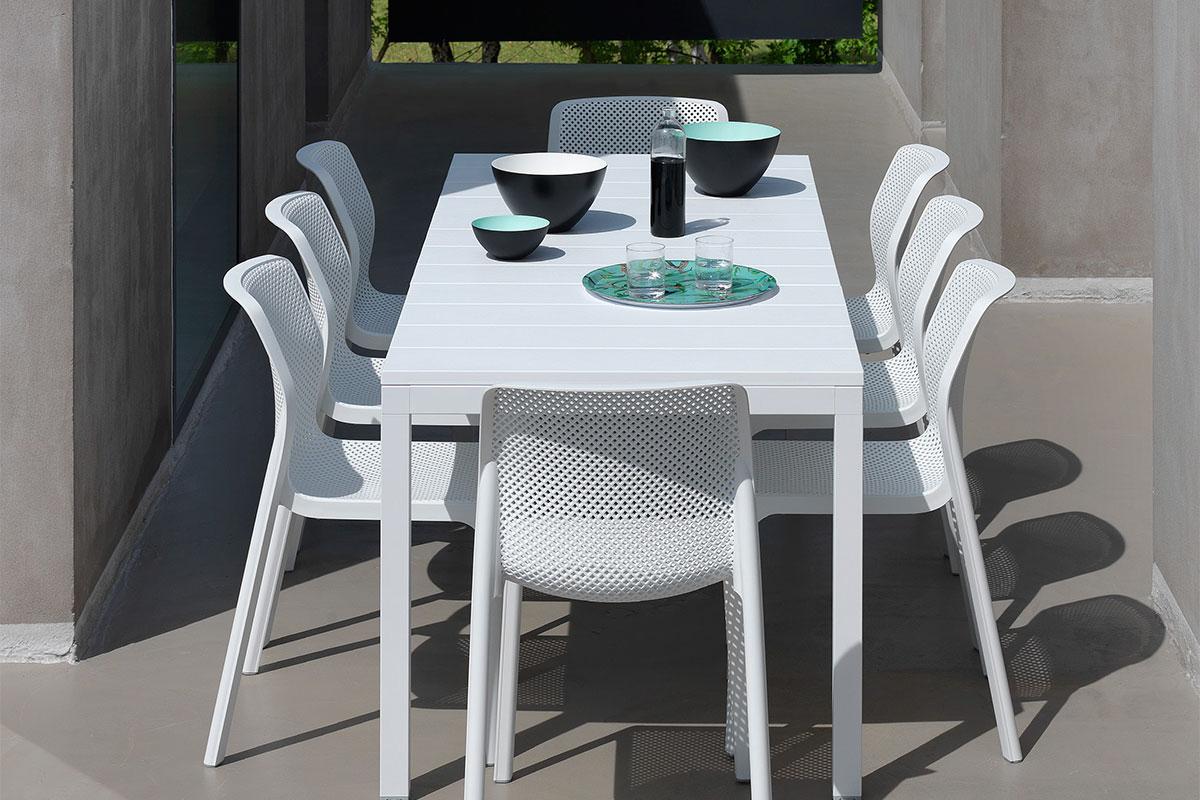 Очень низкий коэффициент теплопроводности материала позволяет продукции долго оставаться на солнце без поглощения тепла. Для того чтобы восстановить прежнее состояние мебели после использования на открытом воздухе, достаточно протереть ее губкой с водой и нейтральным средством, не используя абразивные чистящие средства, растворители и хлорсодержащие вещества. Материал пластиковой мебели Nardi экологически чистый.