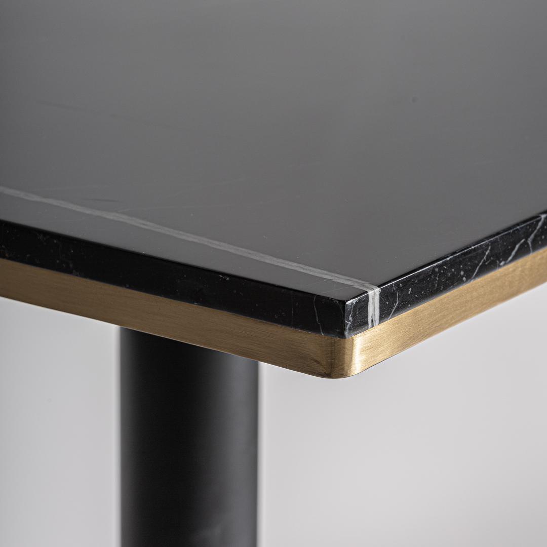 Барный стол. Изготовлен из нержавеющей стали в сочетании с железом и синтетическим мрамором. Ширина: 65 см, Глубина: 65 см, Высота: 109 см