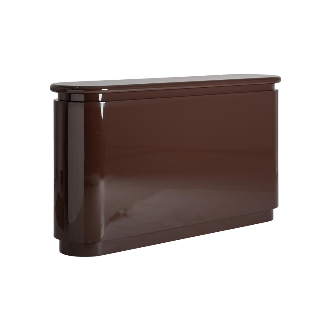 Барная стойка, изготовленная из МДФ коричневого цвета в сочетании с фанерой. Ширина: 200 см, Глубина: 45 см, Высота: 105 см
