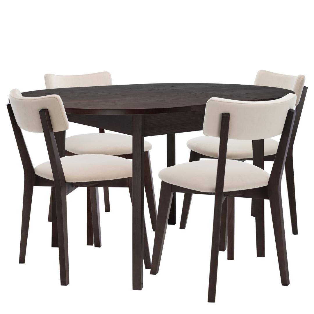 Набор выполнен в современном стиле. Каркас - массив бука. Изогнутая спинка и мягкое сидение, придают комфорт и чувство расслабления. Непременный элемент для обустройства столовой зоны.