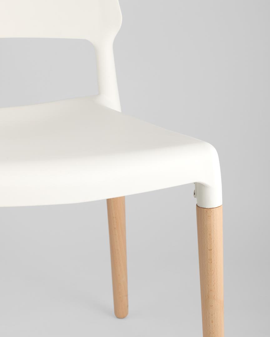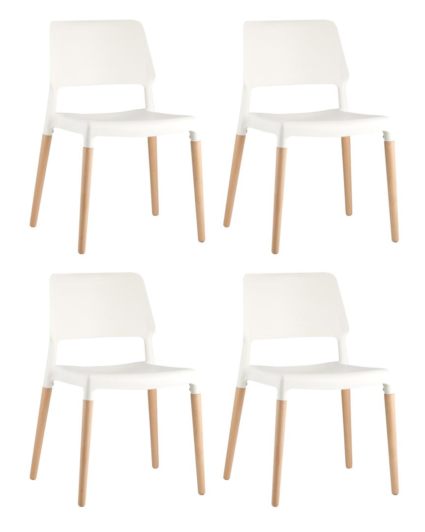 Комплект из четырех стульев BISTRO белый пластик ножки из массива бука