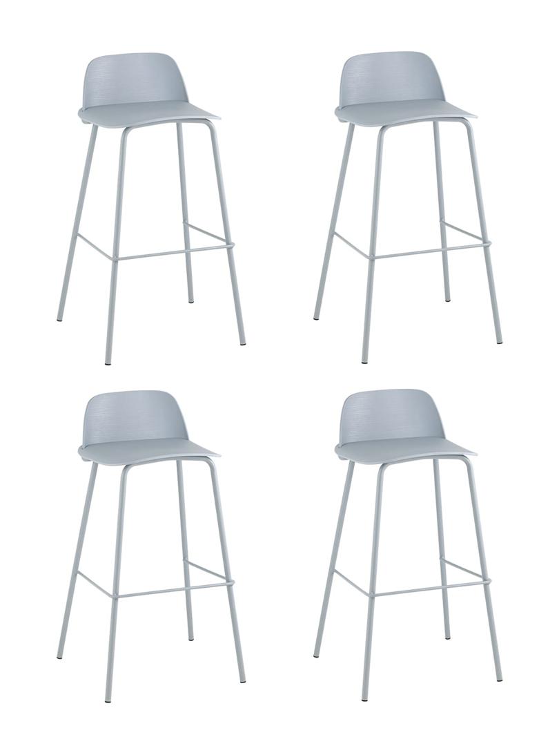 Комплект из четырех стульев барных Mist пластиковое сиденье, серо-голубой, ножки металл