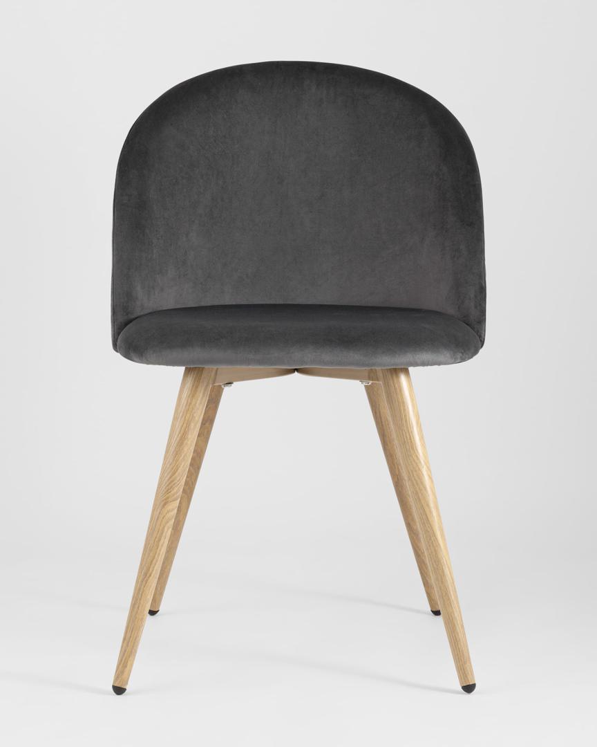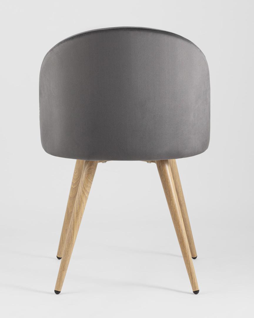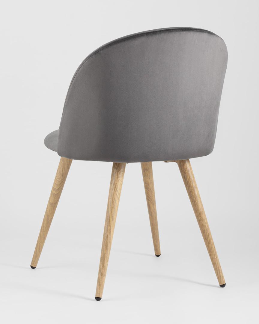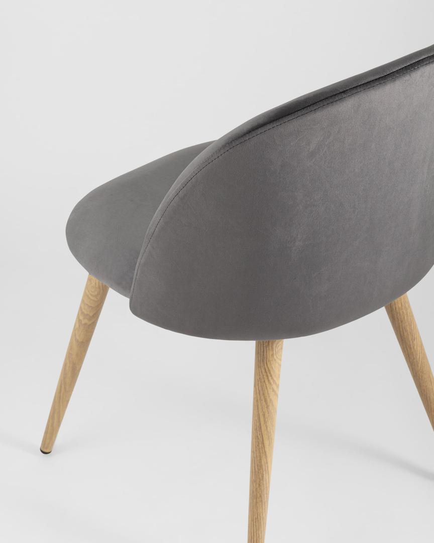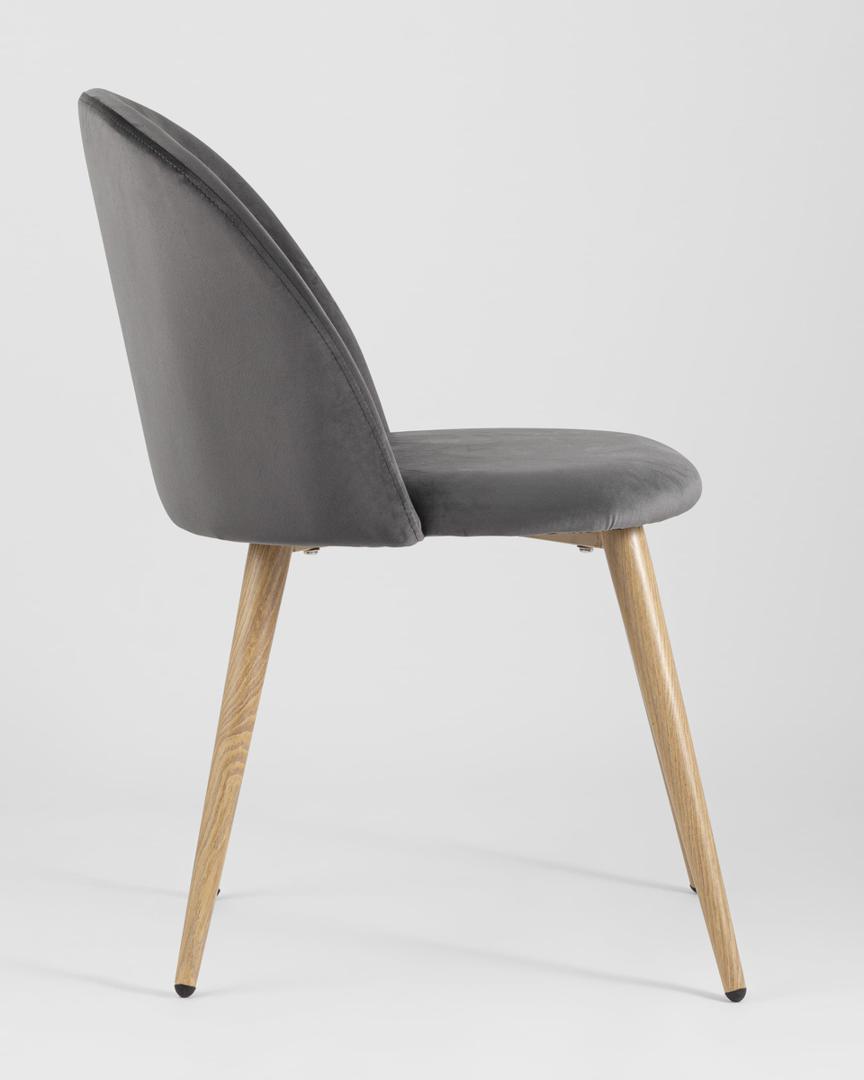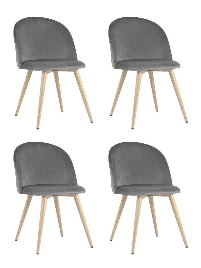 Комплект из четырех стульев Лион серый, сиденье и спинка из серого велюра, каркас из оцинкованного металла с принтом под натуральное дерево