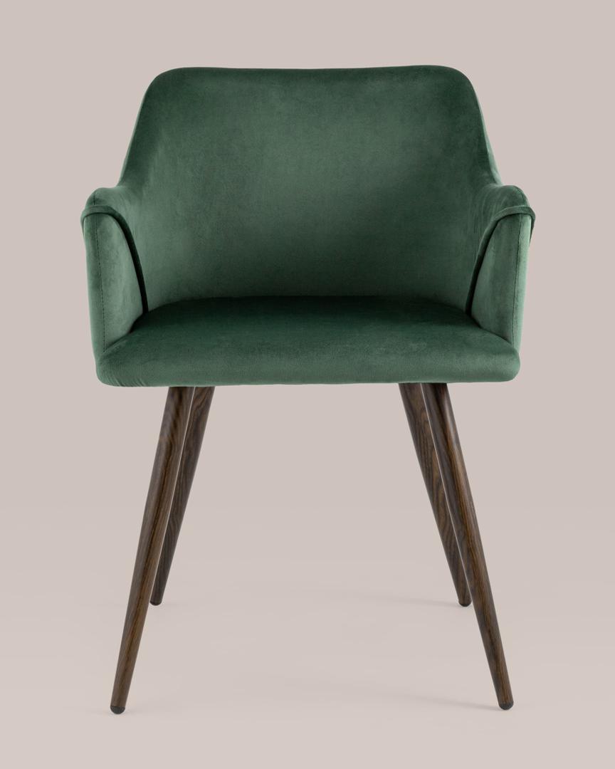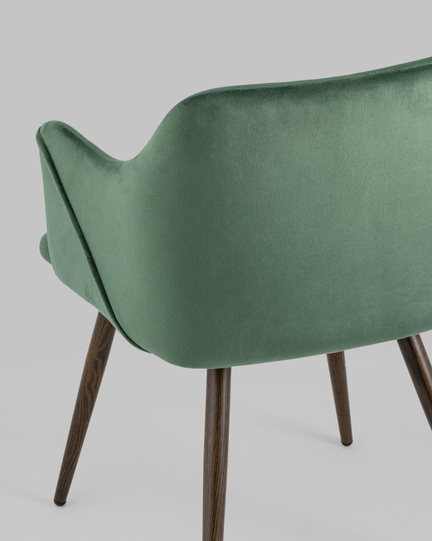 Комплект из двух стульев Монарх зеленый, широкая эргономичная спинка, удобные подлокотники, обивка плотная ткань, стальные ножки с принтом под дерево 2 шт
