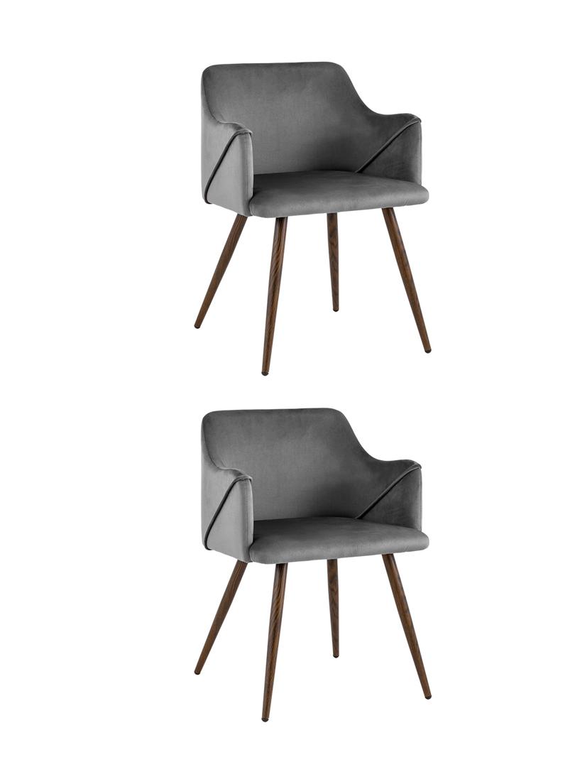 Комплект из двух стульев Монарх серый, широкая эргономичная спинка, удобные подлокотники, обивка плотная ткань, стальные ножки с принтом под дерево 2 шт