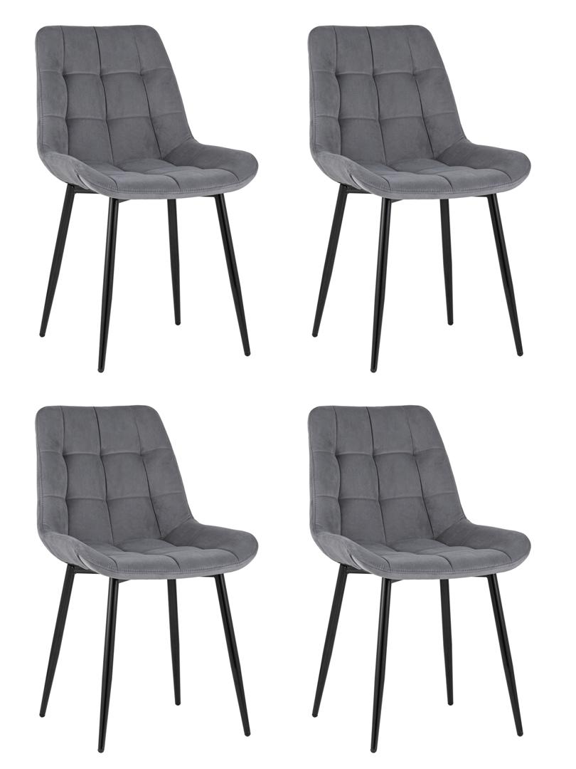 Комплект из четырех стульев Флекс велюр серый ножки из металла черные