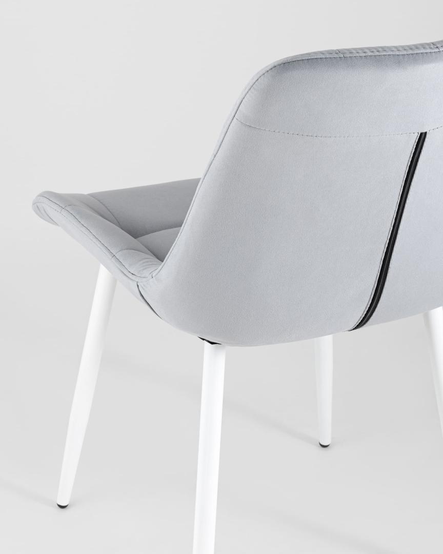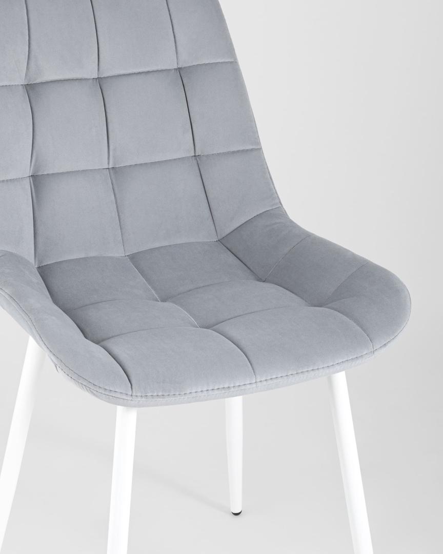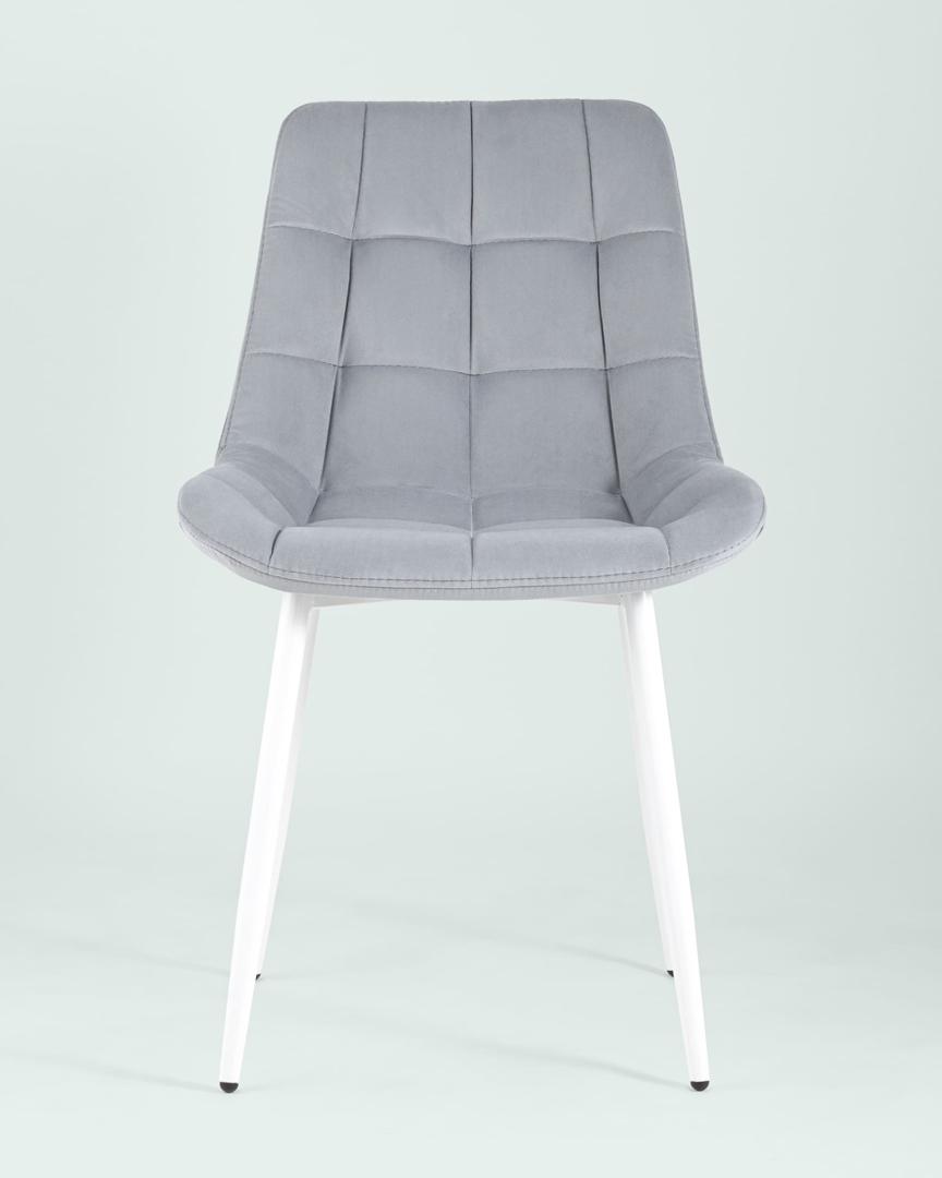 Комплект из четырех стульев Флекс велюр светло-серый белые ножки из металла