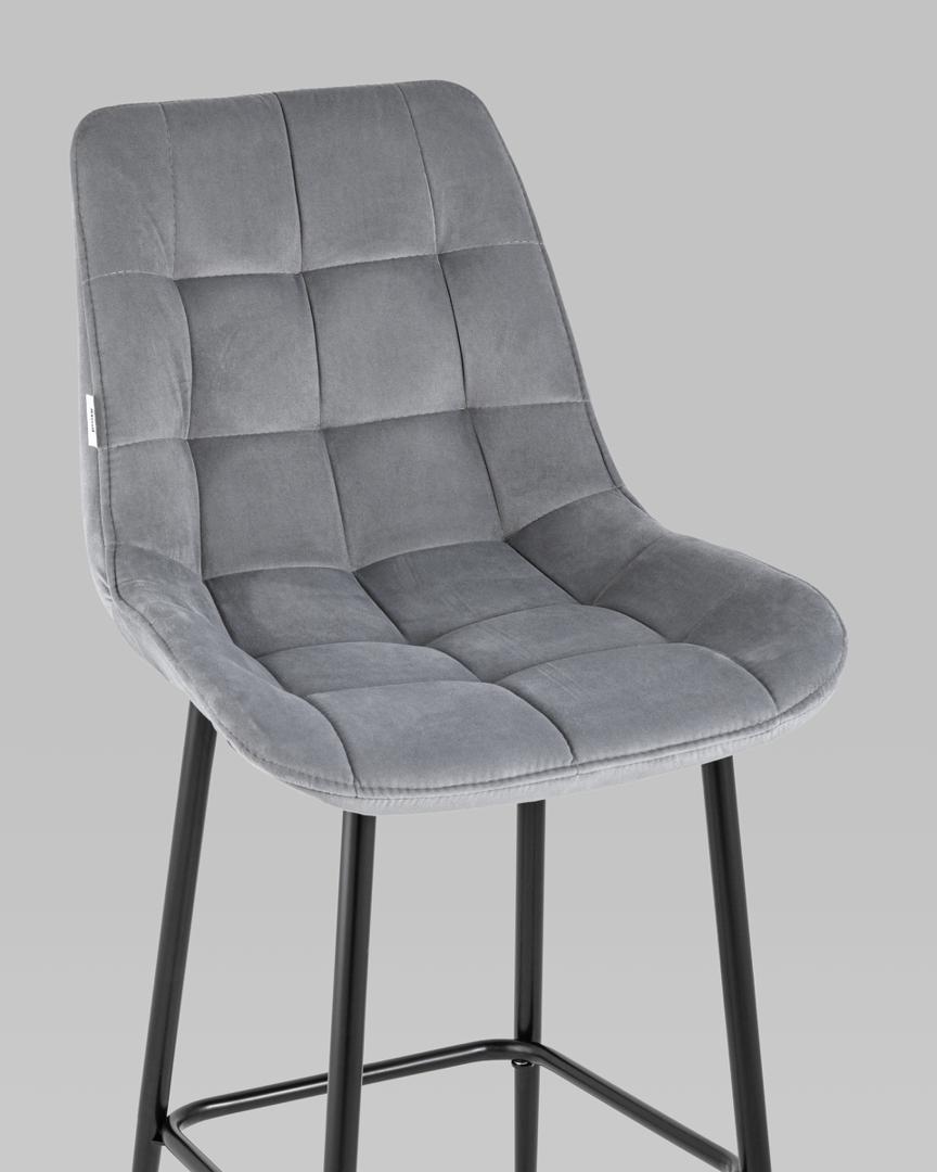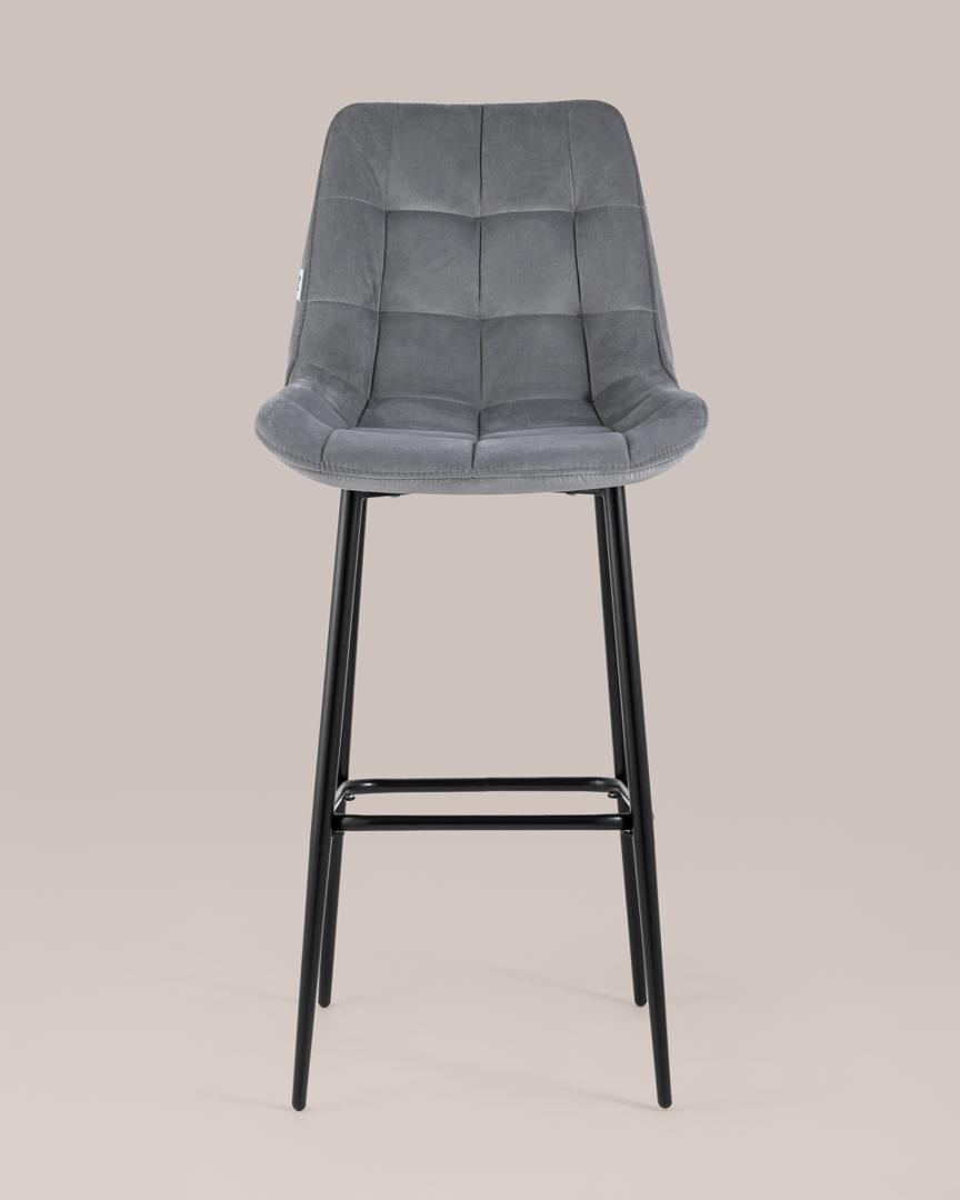 Комплект из двух барных стульев Флекс обивка велюр серый ножки металл черные 2 шт