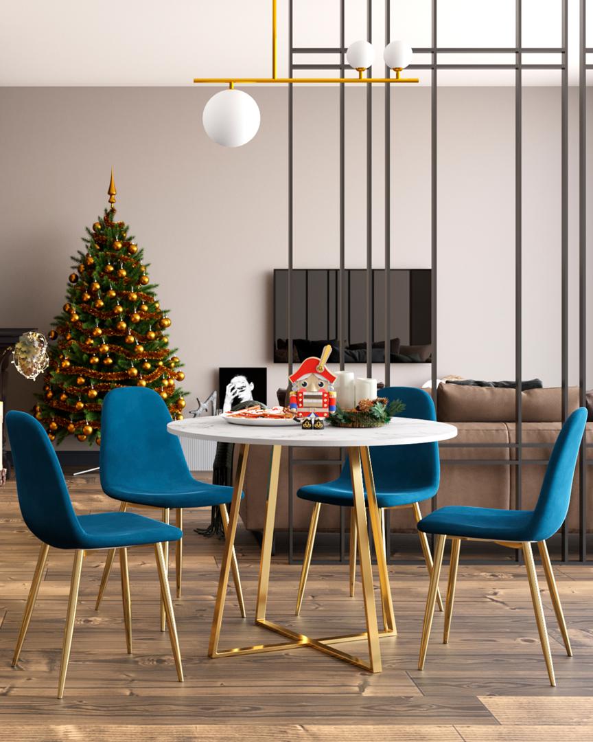 Комплект Stool Group Стул Валенсия SN велюр темно-синий золотые ножки 4 шт. арт. УТ000040700