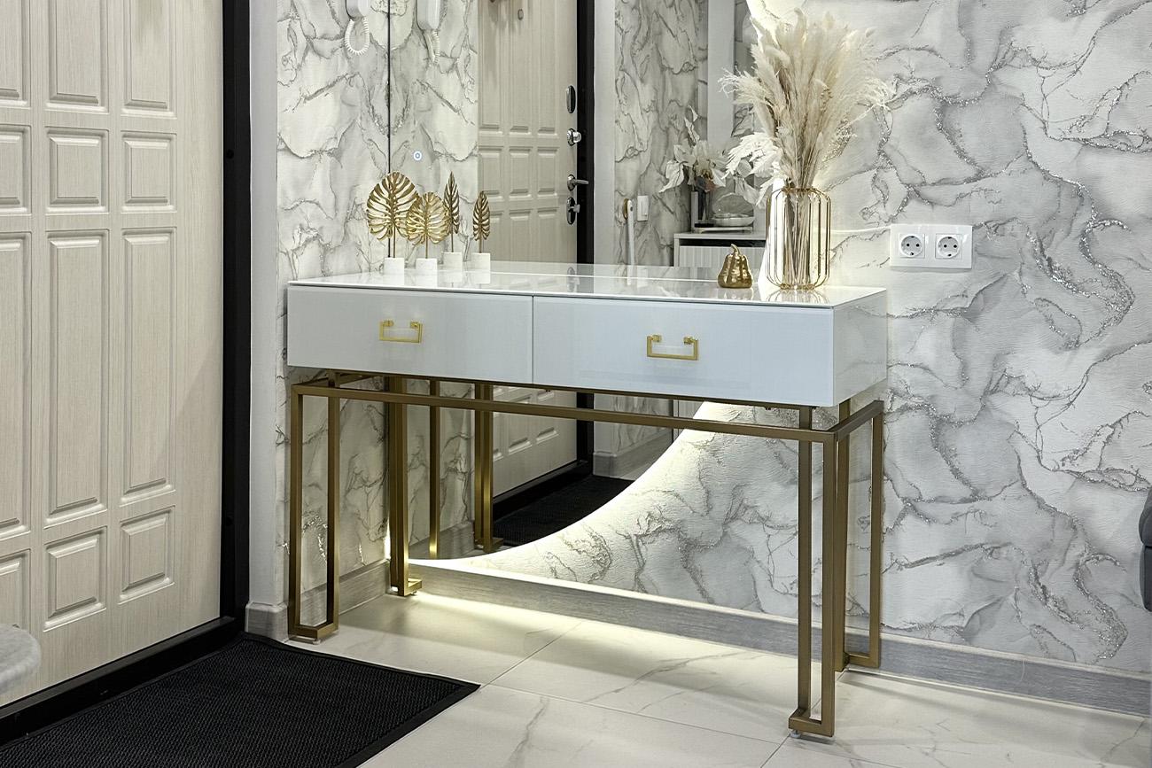 Представленная консоль с ящиками – элегантный и удобный предмет интерьера. Эта вещь, помимо предельной эстетичности, еще и весьма функциональная. Наличие ящичков позволяет использовать предмет для хранения бытовых мелочей. Это поможет организовать простра...