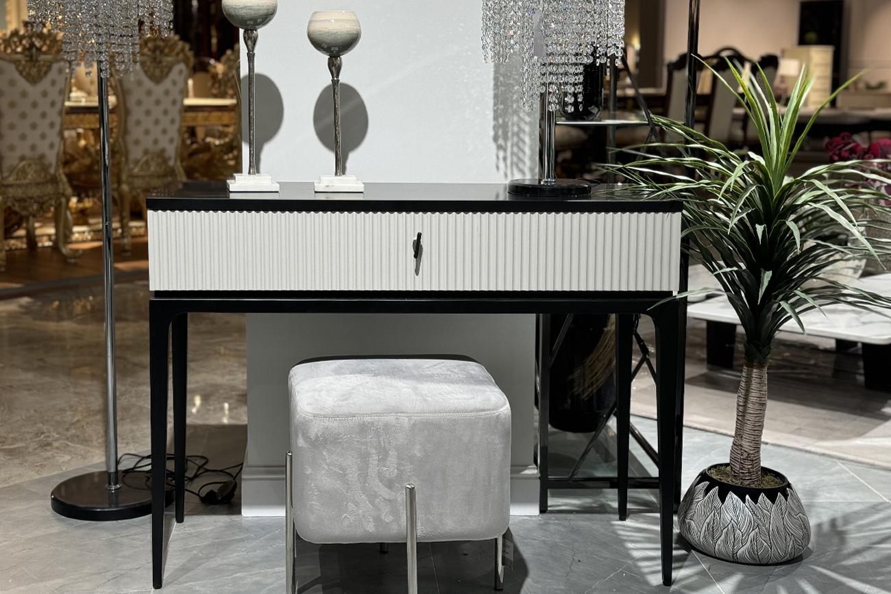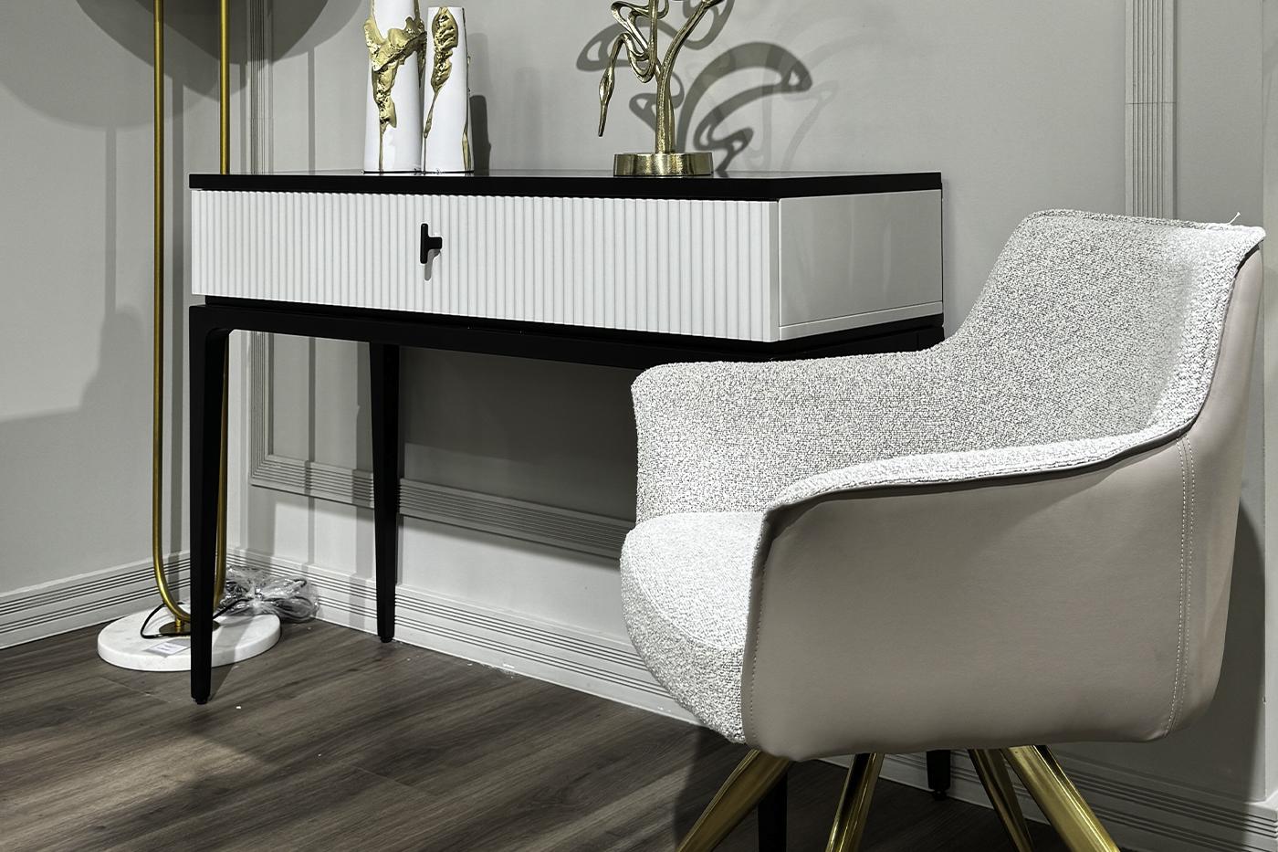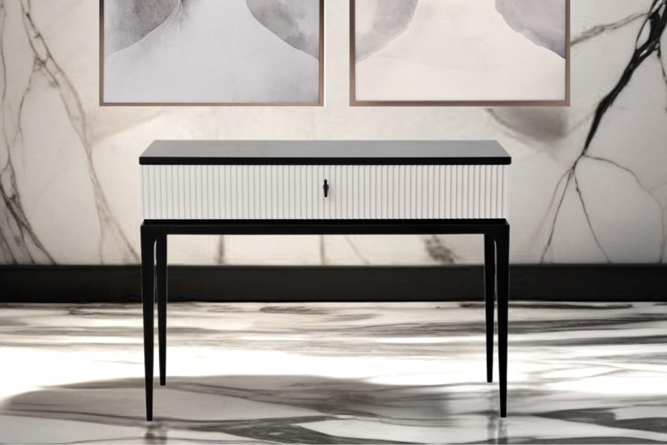 Дизайнерская консоль ESTE в современной стилистике отличается лаконичным дизайном и высокой функциональностью. Сочетание черного каркаса и светло-серой фактурной отделки ящика выглядит стильно и презентабельно. Изящная консоль в гостиной станет эффектным ...