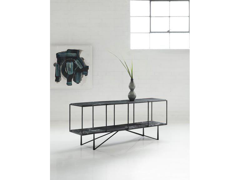 Очень стильная консоль из металла и мрамора. Основание консоли полностью изготовлено из кованого металла, столешница же являет из себя сплошной кусок мрамора. Сдержанные цвета, простота линий, строгость дизайна придутся по вкусу тем, кто предпочитает минимализм, но не скуку.